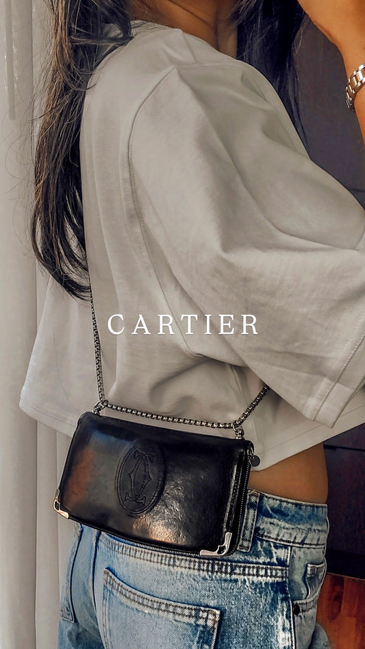 Authentic Vintage Cartier Upcycle Black Leather Wallet with Chain
