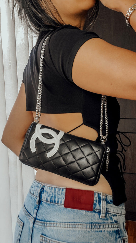 Authentic Vintage Chanel Upcycle Black Lambskin Zip Wallet on Chain