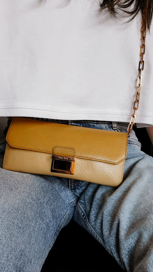 Authentic Miu Miu Long Leather Wallet on Chain