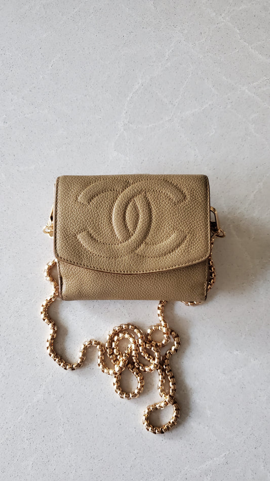 Authentic Vintage Chanel Upcycle Small Tan Caviar Wallet with Chain