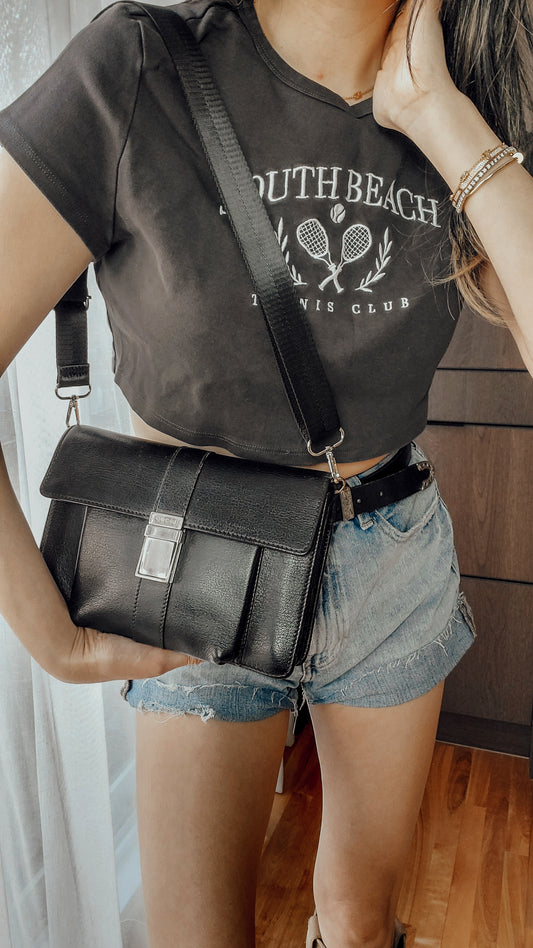 Authentic Gucci Upcycle Black Leather Purse with Strap