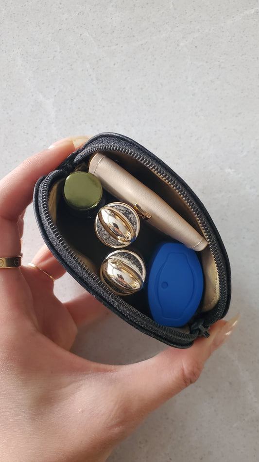 Authentic Chanel Black Caviar Leather Mini Pouch (with added back holding chain)