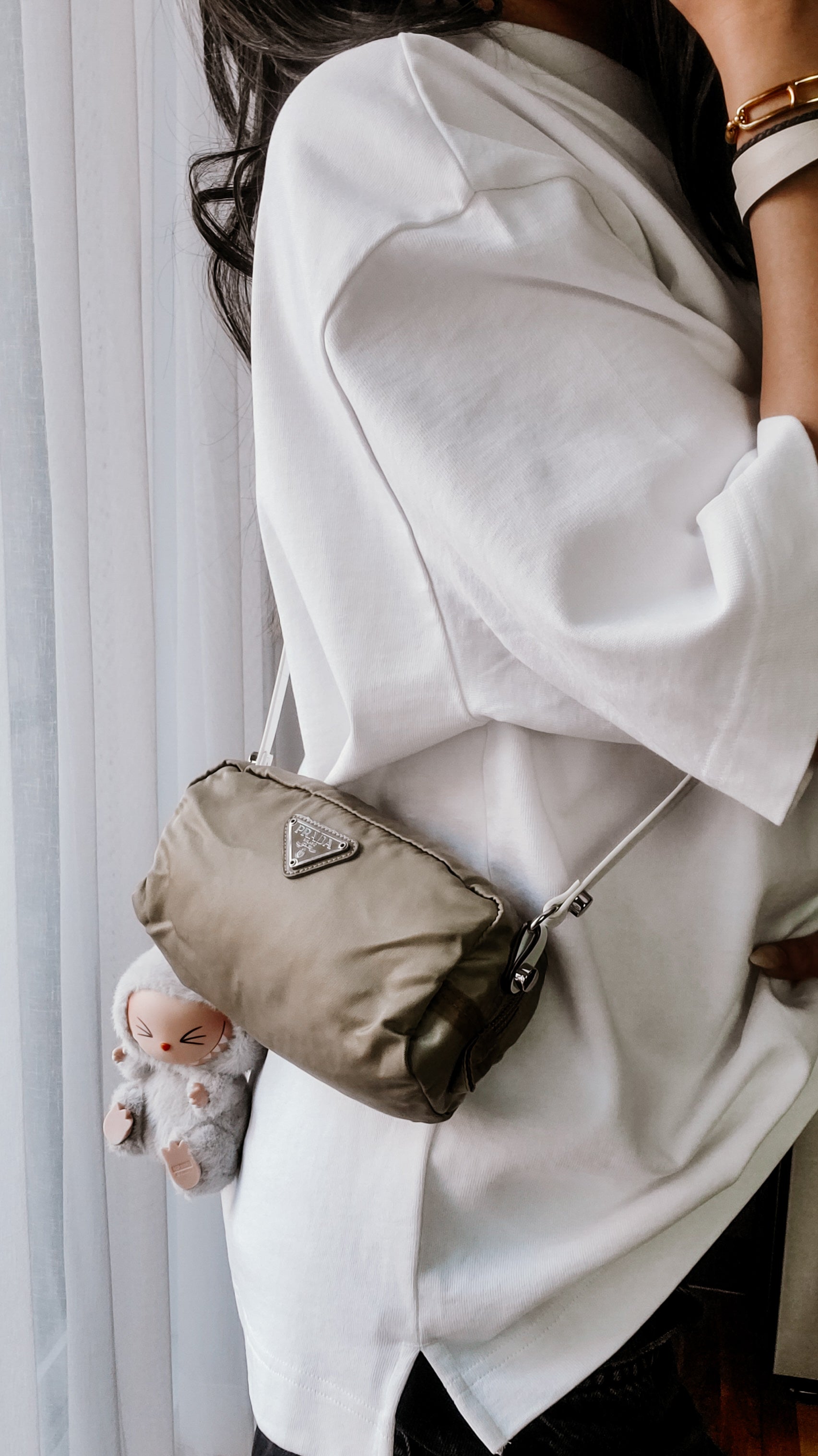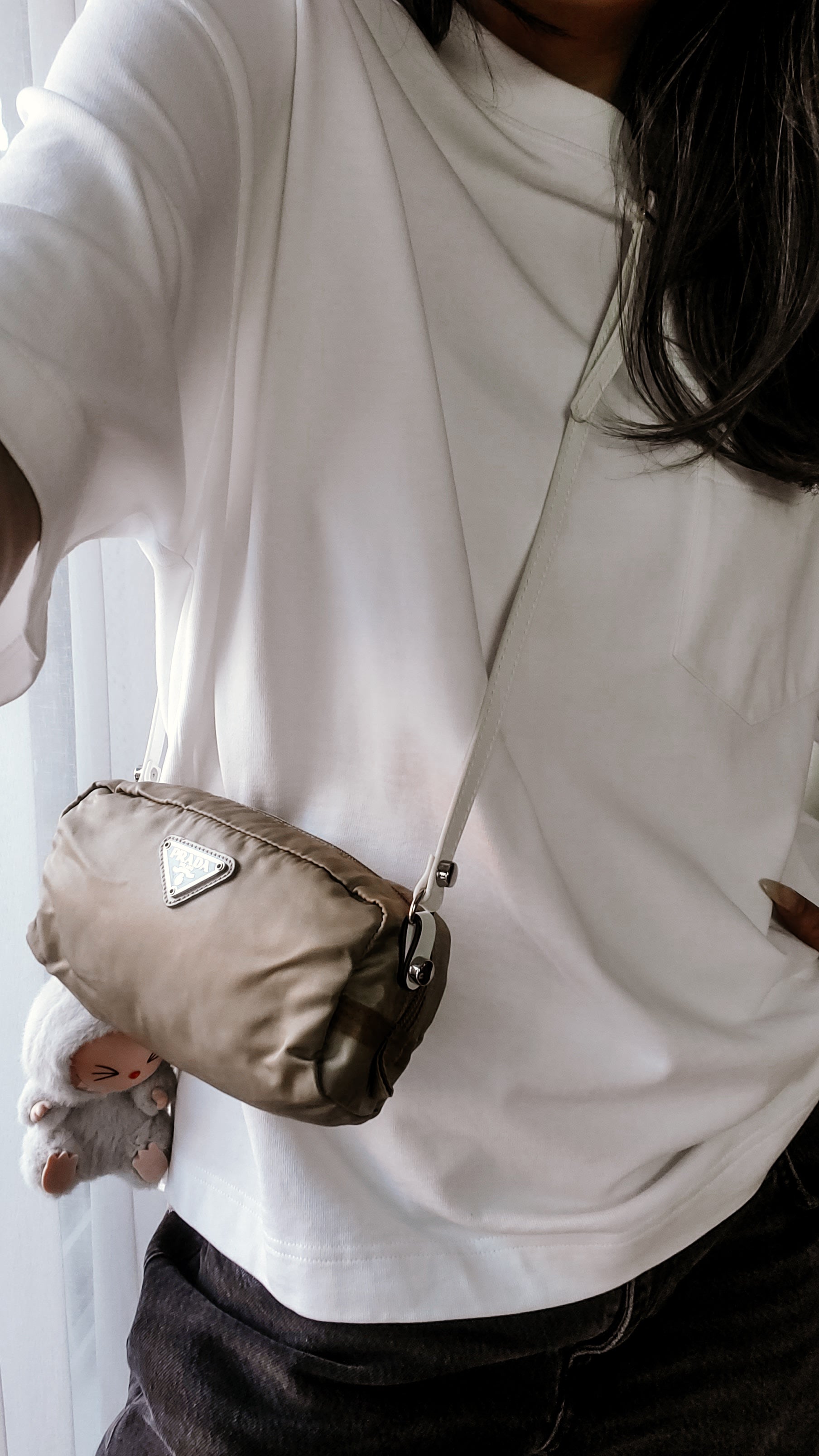 Authentic Prada nylon long pouch reworked into a modern and versatile pouch with strap that can be worn crossbody, or on the shoulder! See photos for styling ideas (does not come with Labubu doll)