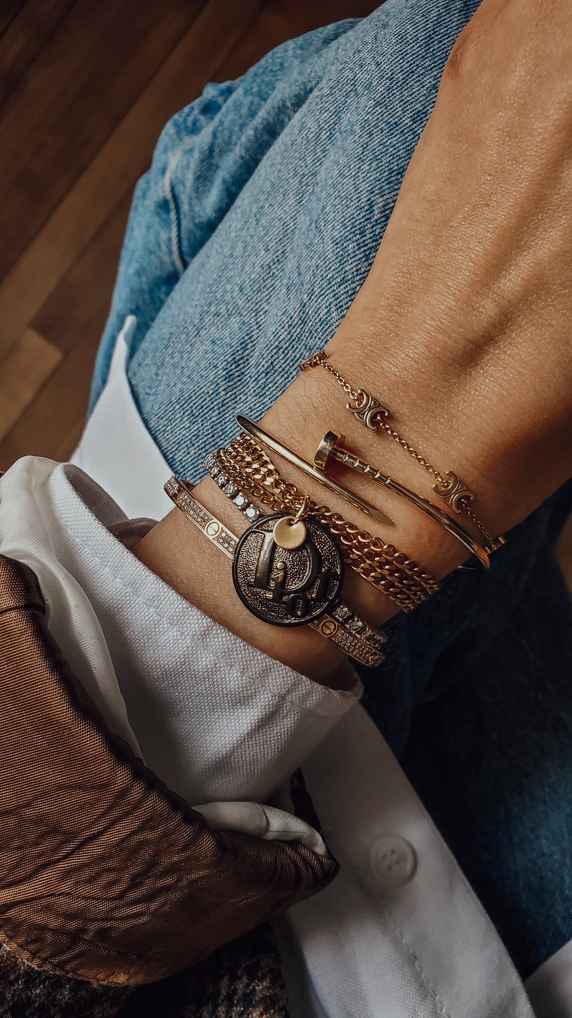 Authentic vintage Christian Dior button redesigned into a chic, timeless layered bracelet piece! See photos for condition