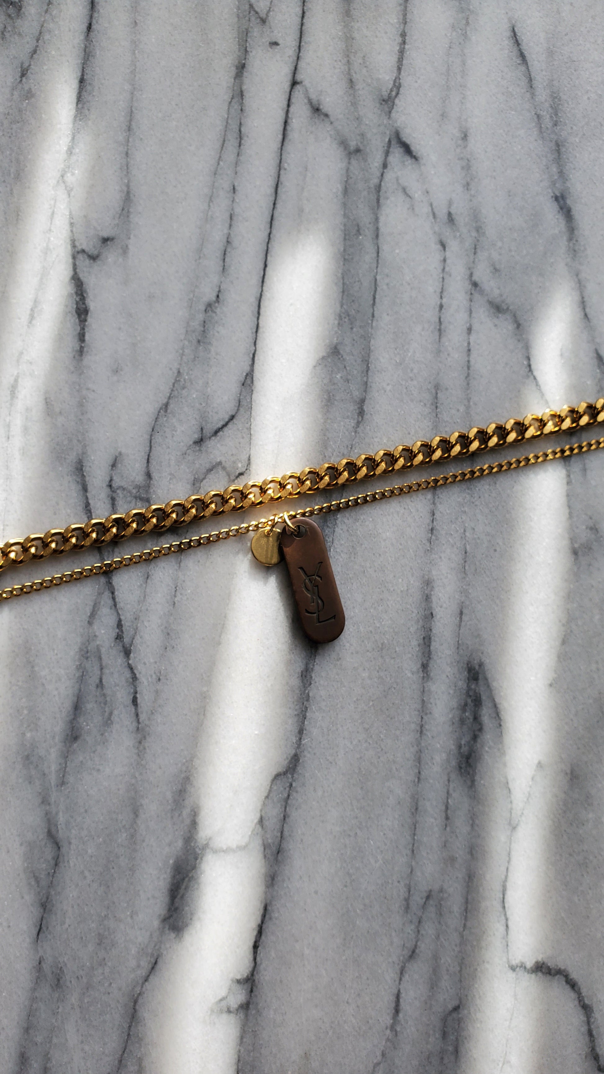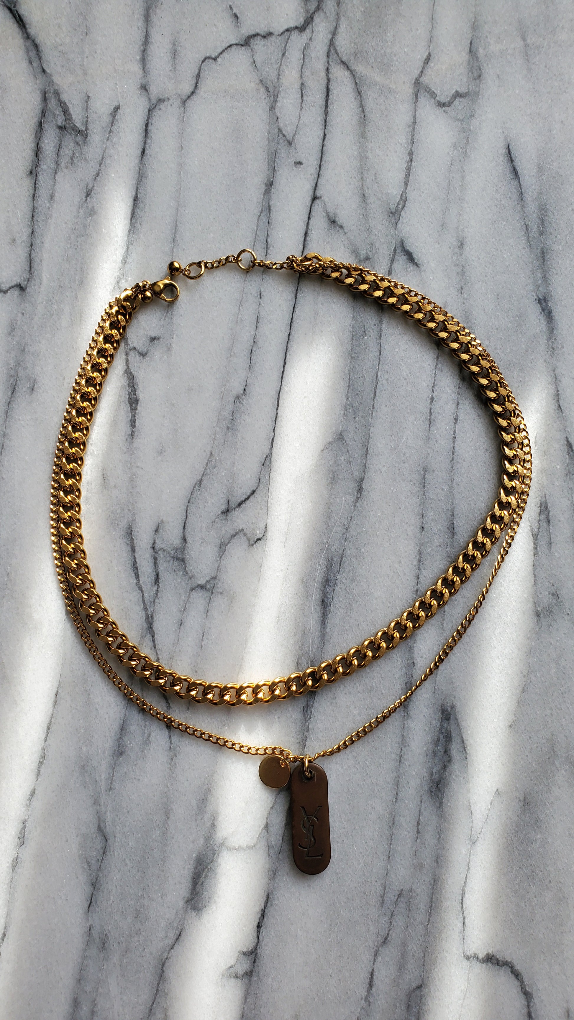 Authentic YSL charm reworked into a fun double layers necklace piece!