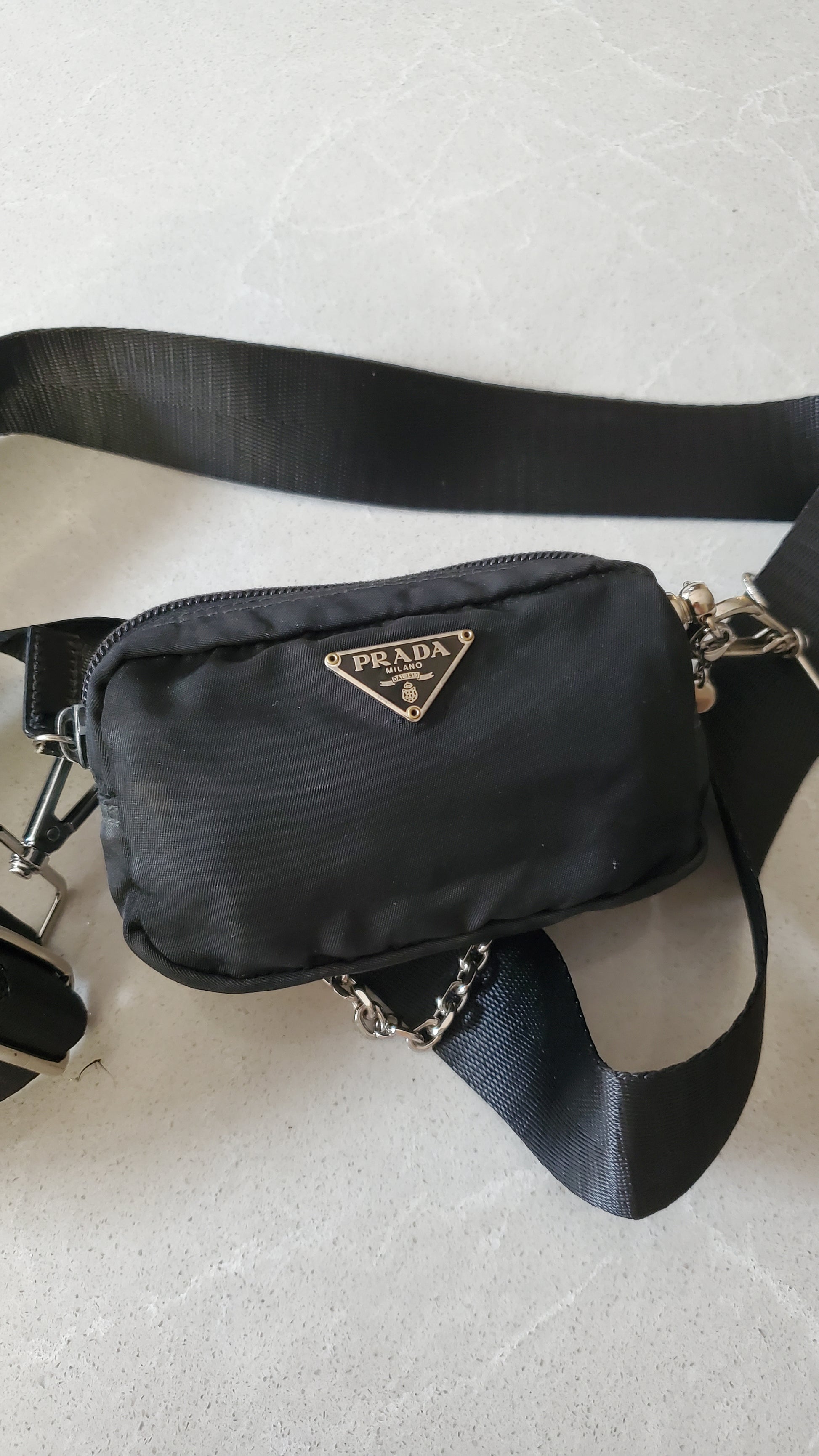 Authentic Prada Upcycle Versatile Black Nylon Mini Pouch on Chain & Strap