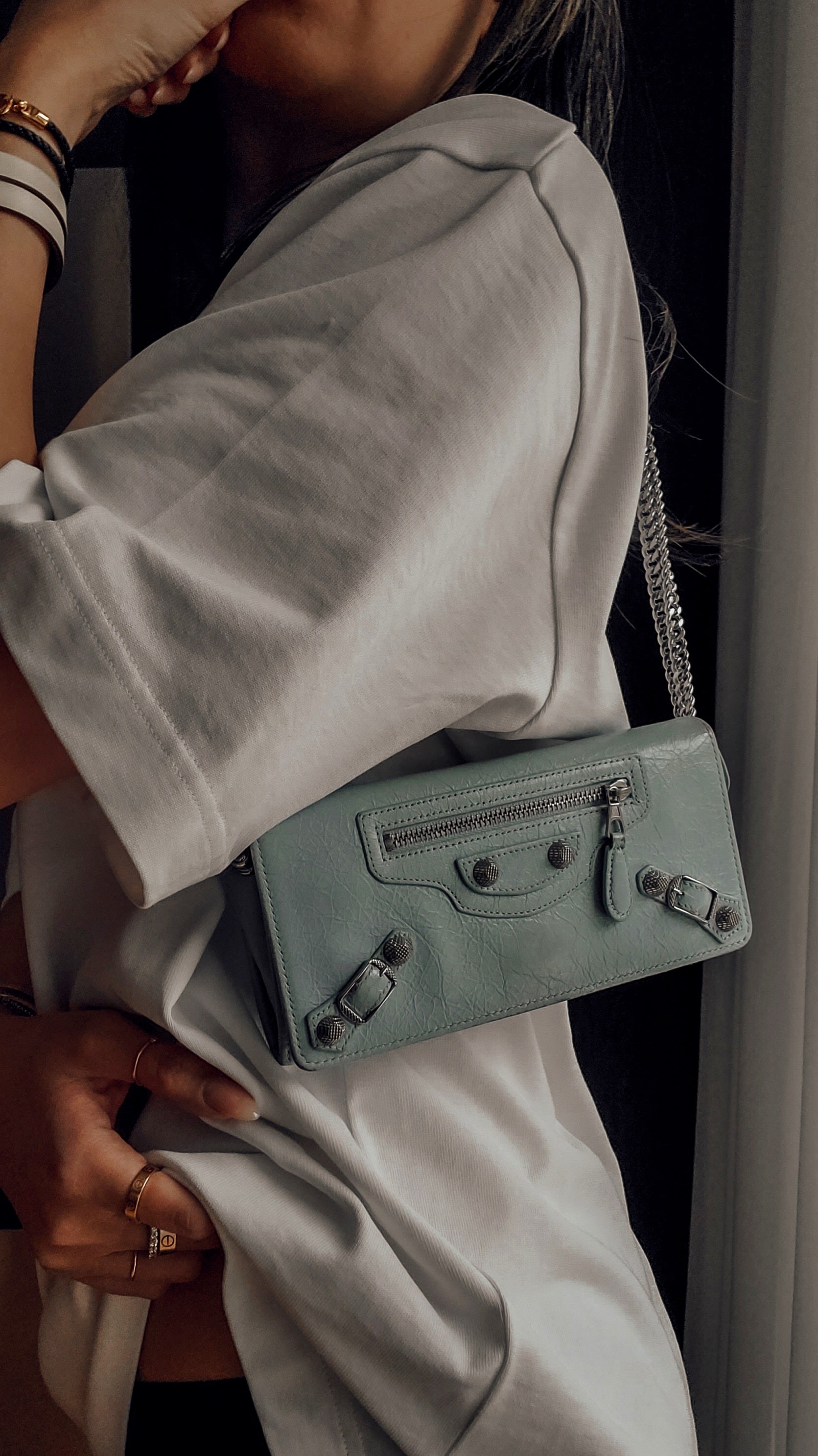 Authentic Balenciaga wallet reworked into a practical and versatile wallet on chain that can be worn crossbody, handle, or on the shoulder! See photos for styling ideas