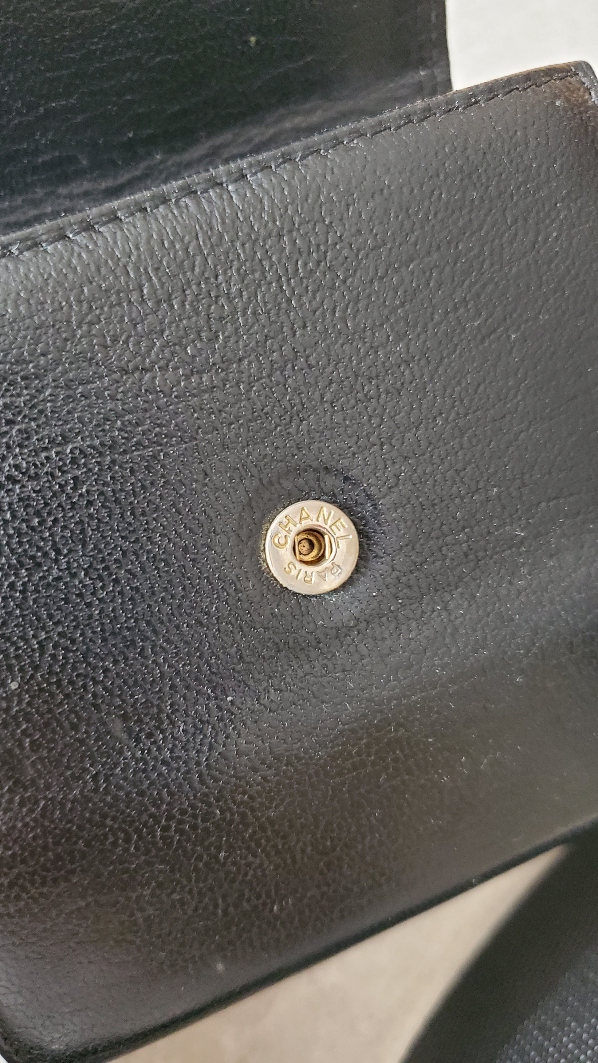 Authentic Chanel Upcycle Black Caviar Compact a Wallet with Strap