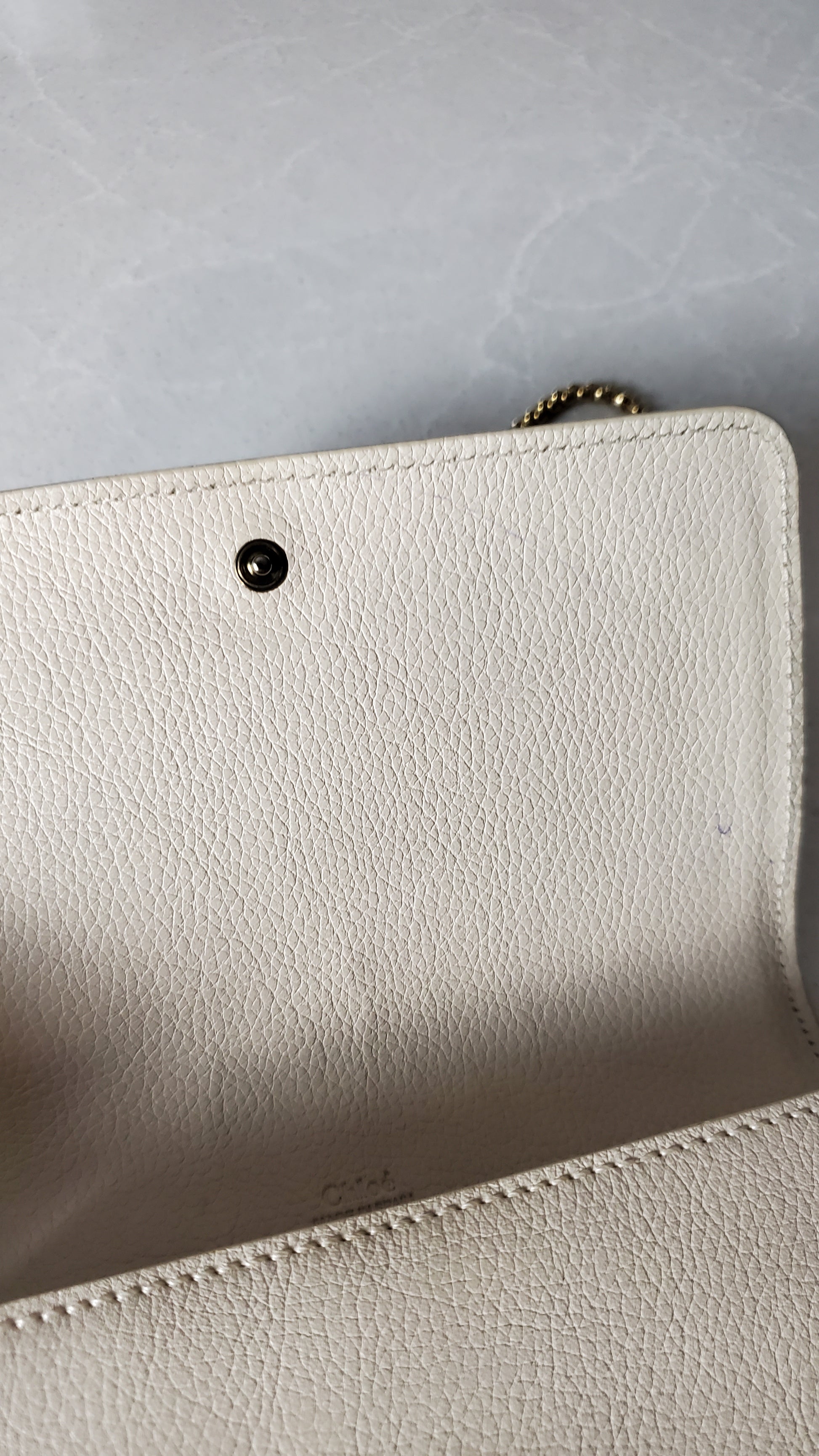 Authentic Chloe Upcycle Cream Leather Wallet with Chain