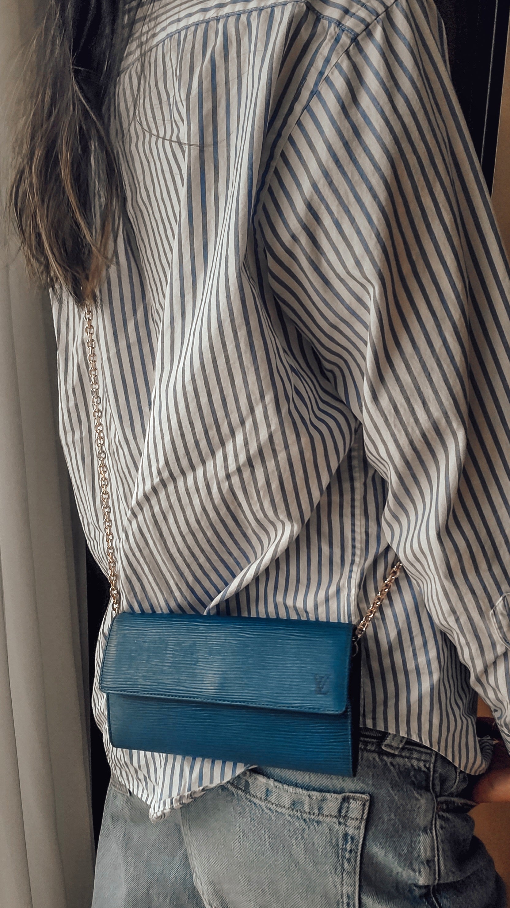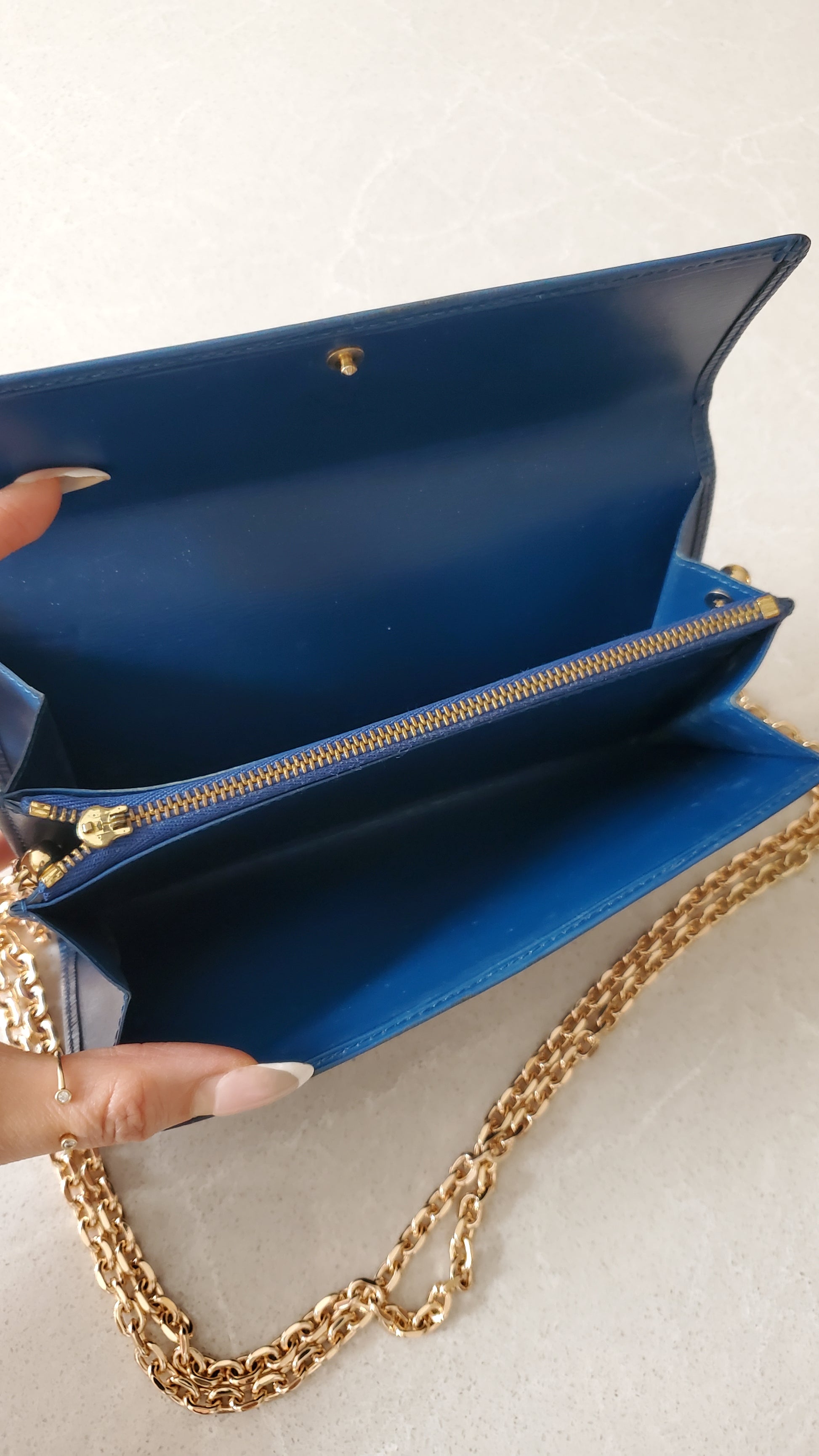 Authentic Louis Vuitton blue epi long wallet reworked into a modern and versatile wallet on chain that can be worn crossbody, shoulder, or handle! See photos for styling ideas