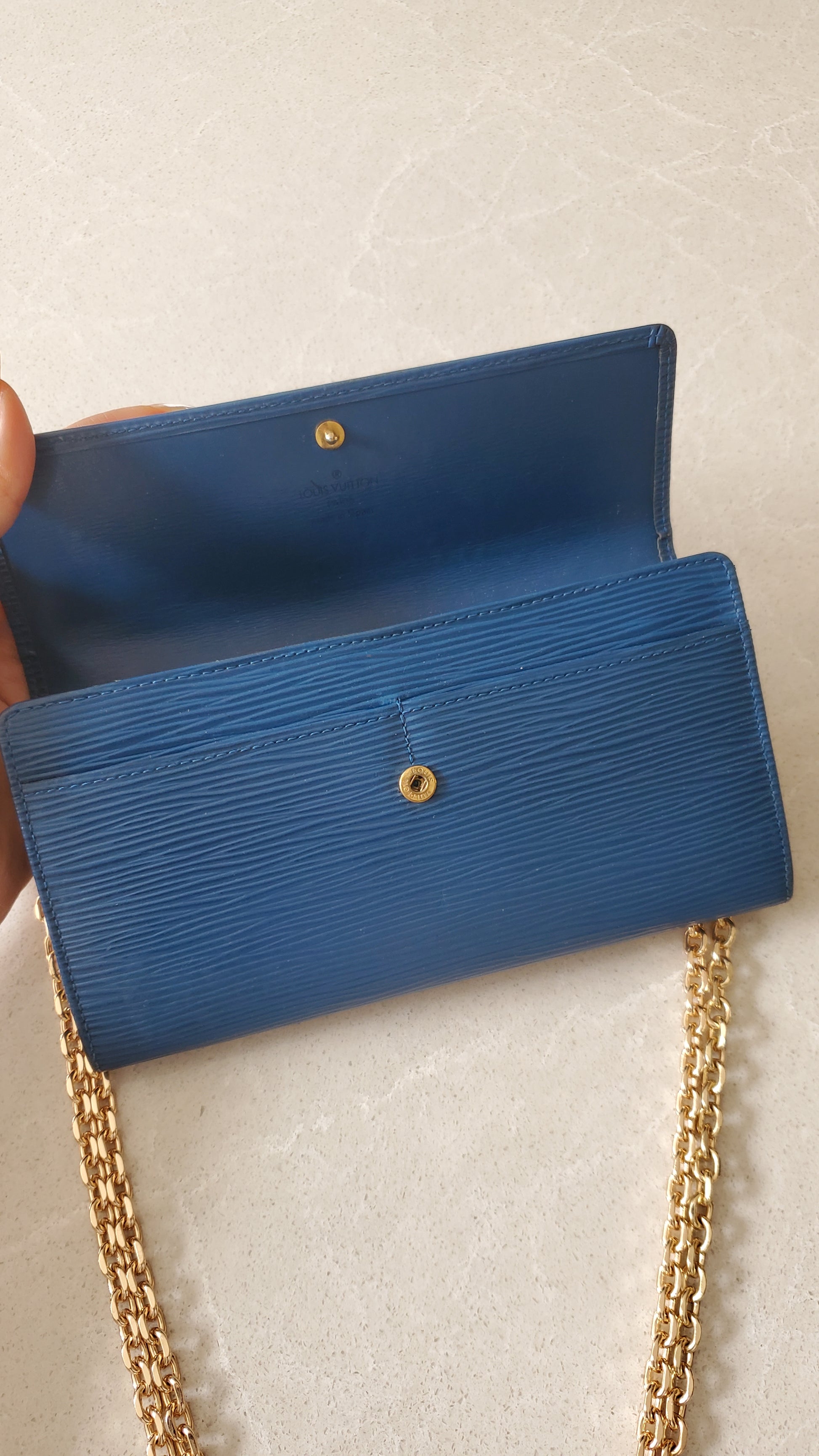 Authentic Louis Vuitton Upcycle Blue Epi Long Wallet on Chain