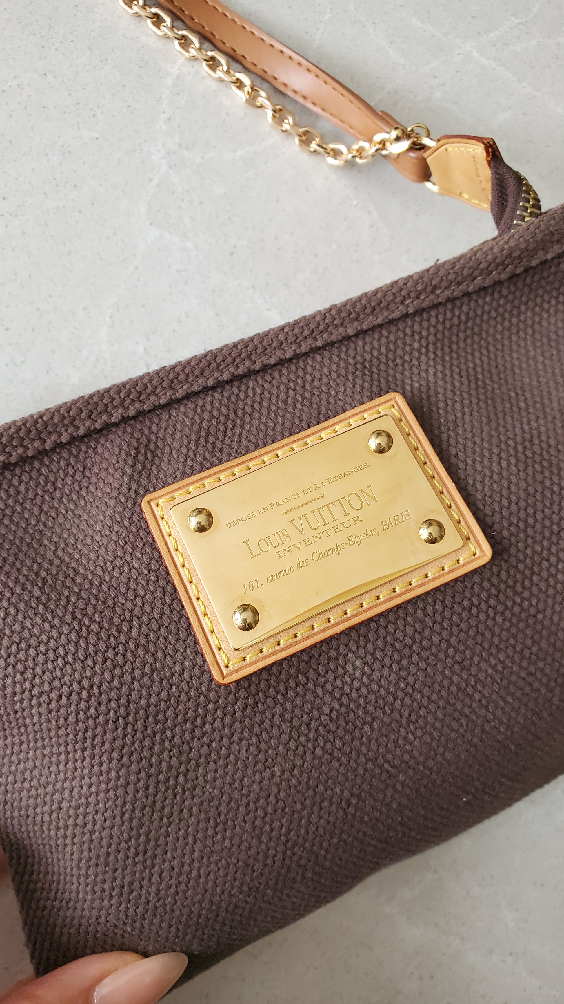 Authentic Louis Vuitton fabric purse reworked with handmade adjustable shoulder strap/ chain! See photos for styling ideas