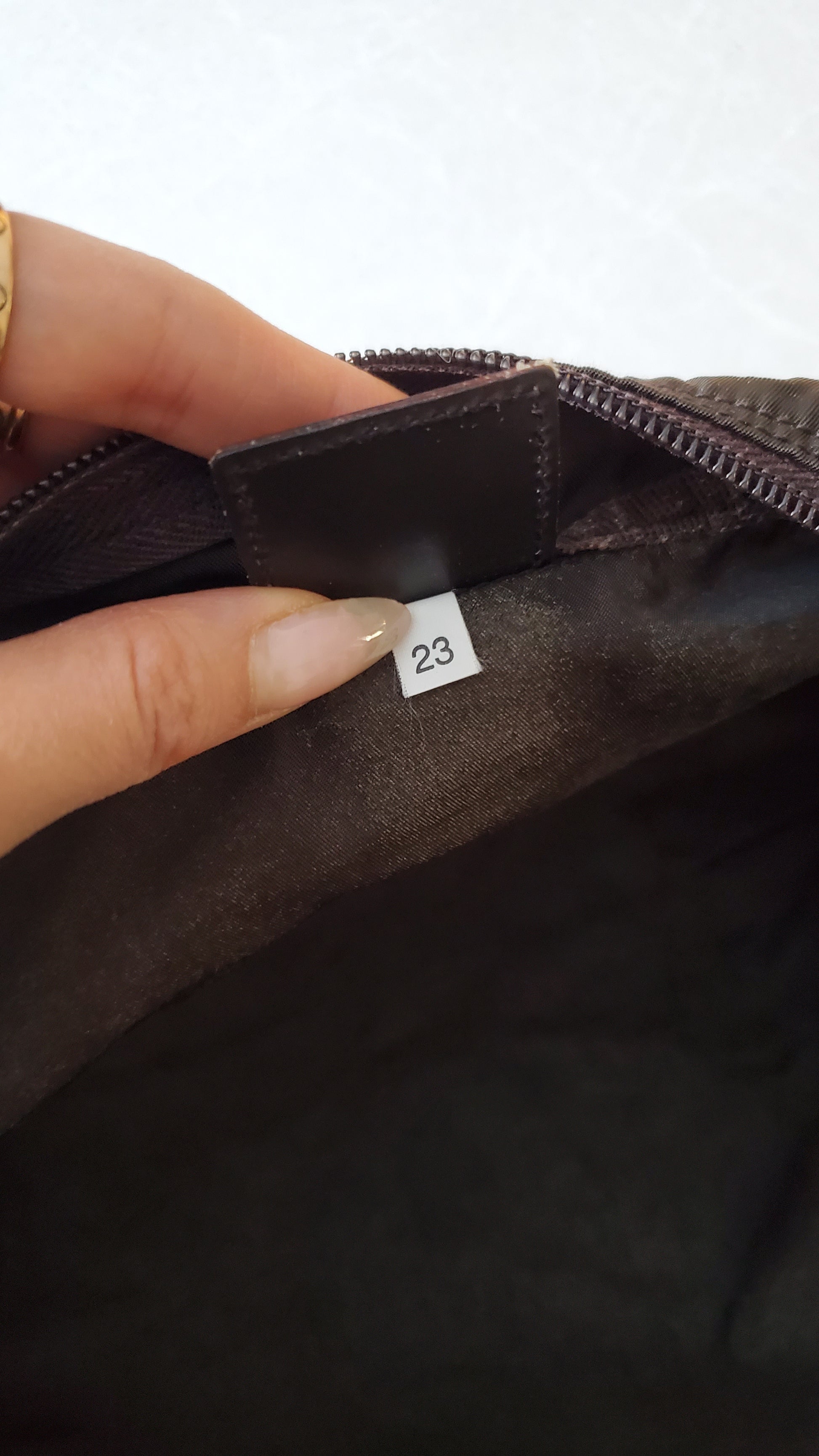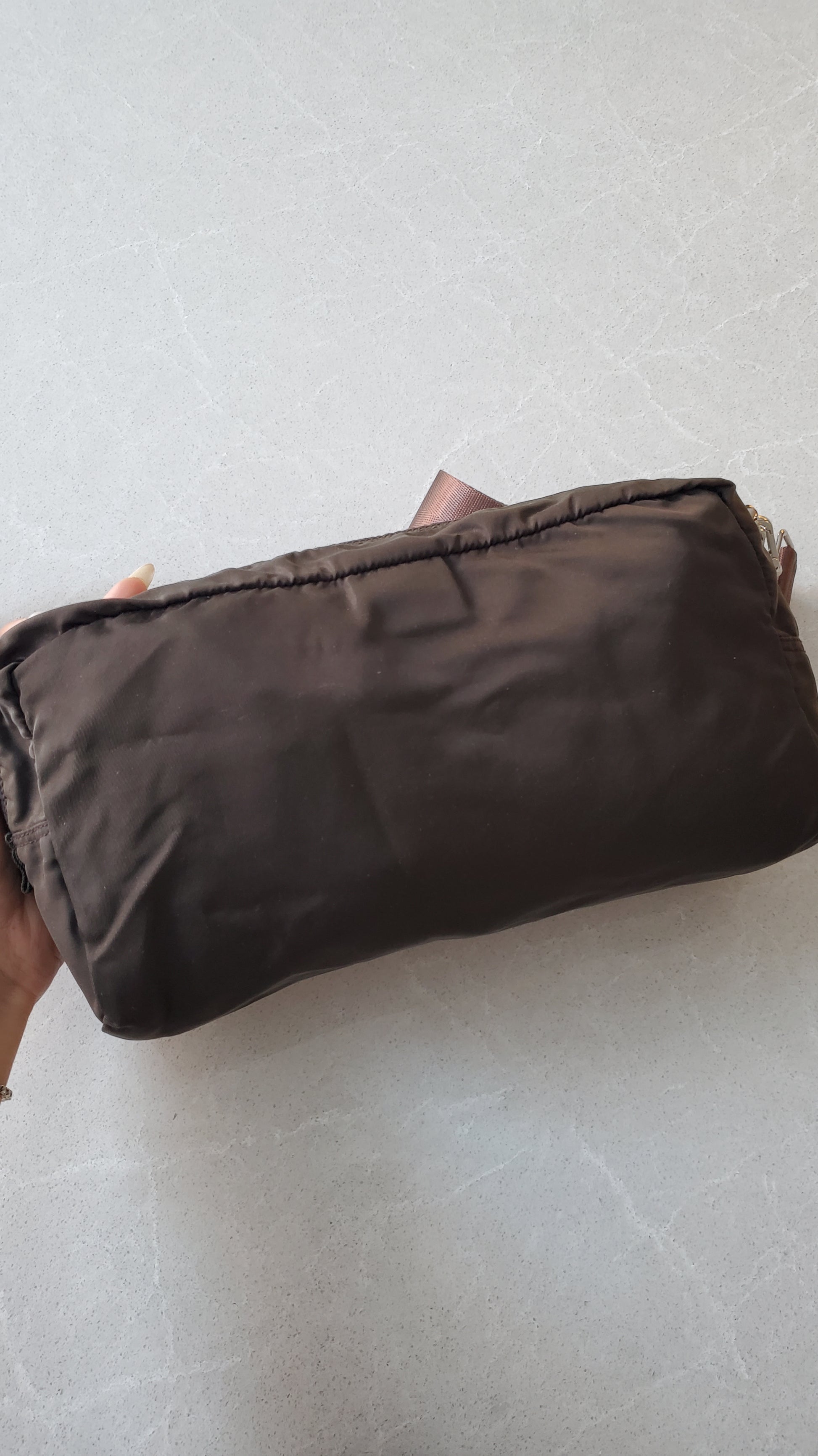 Authentic Prada (Dark Green/ Brown) Upcycle Large Nylon Pouch with Chain & Strap