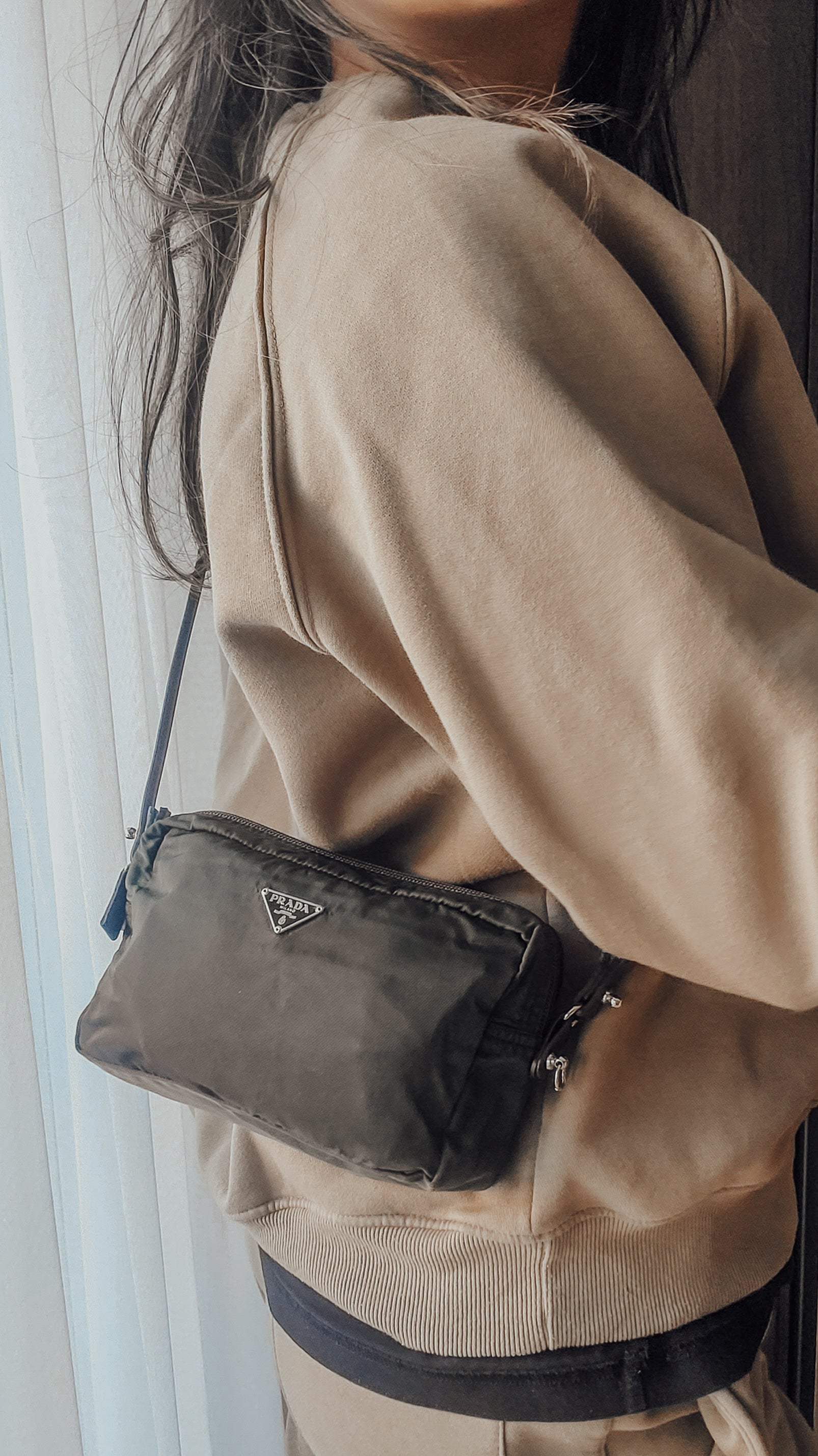 Authentic Prada green nylon pouch reworked into a modern and versatile pouch with strap that can be worn crossbody, or on the shoulder! See photos for styling ideas