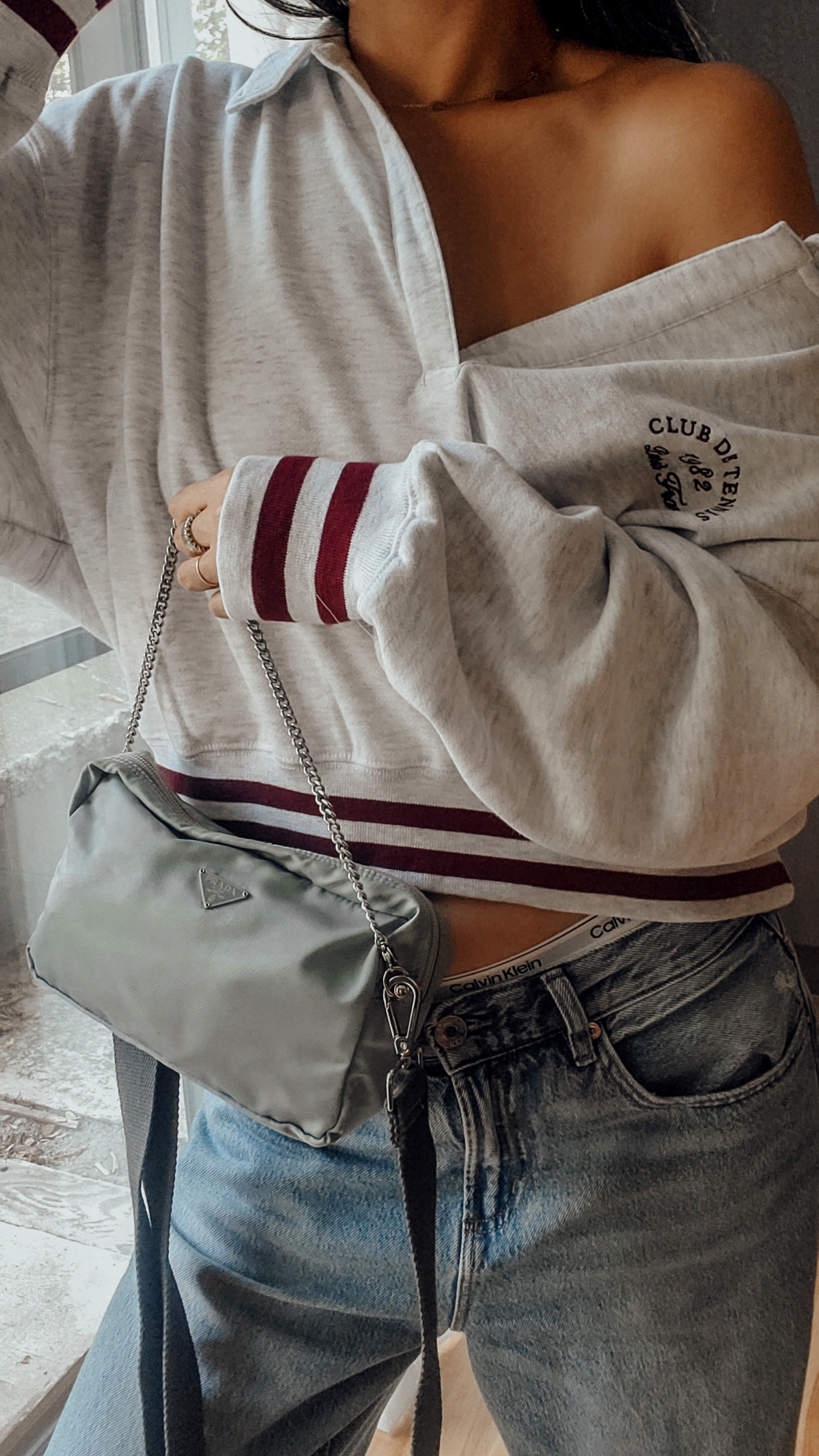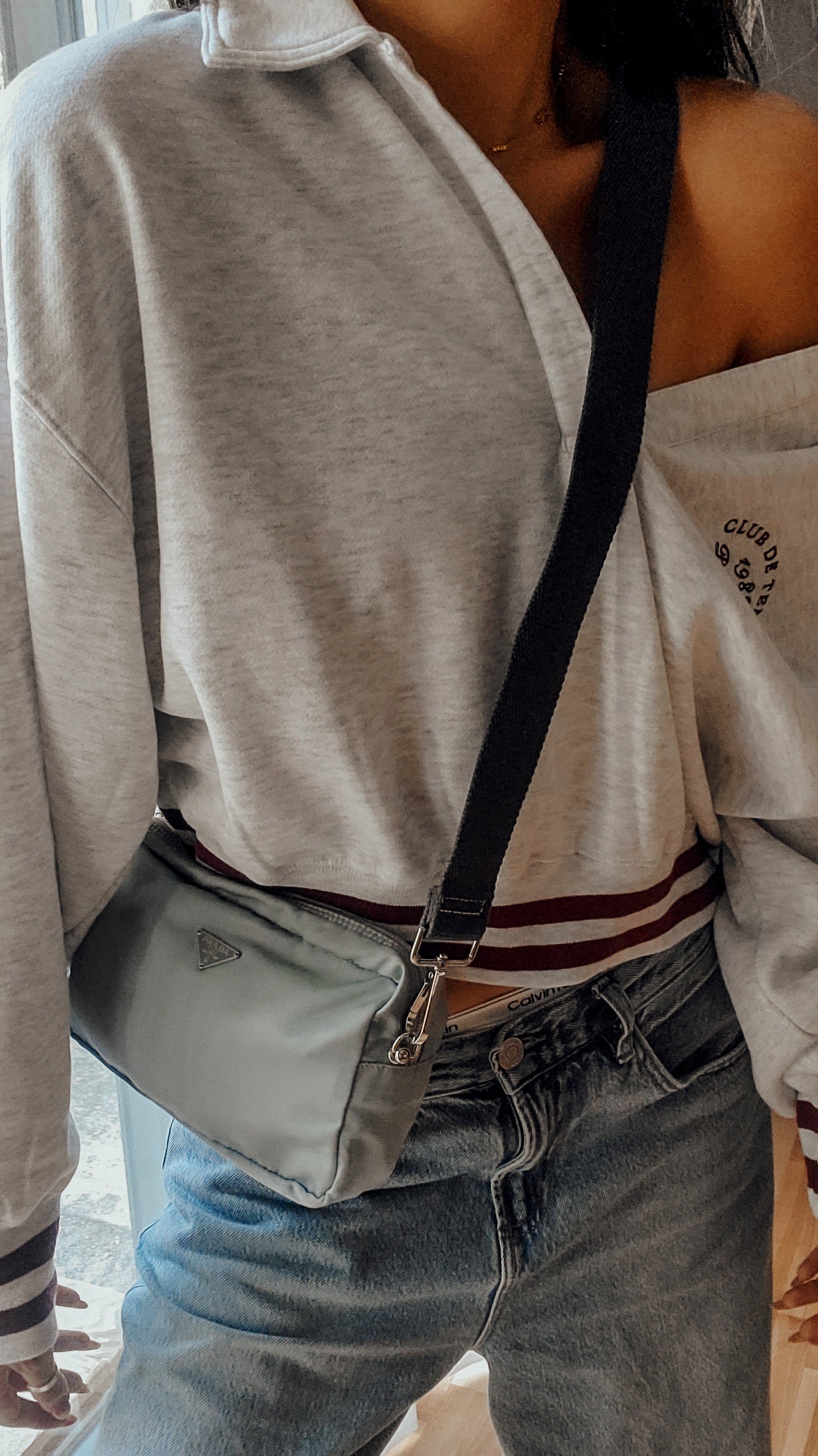 Authentic Prada blue nylon pouch reworked into a modern and versatile pouch on chain and strap that can be worn crossbody, shoulder, or handle! See photos for styling ideas