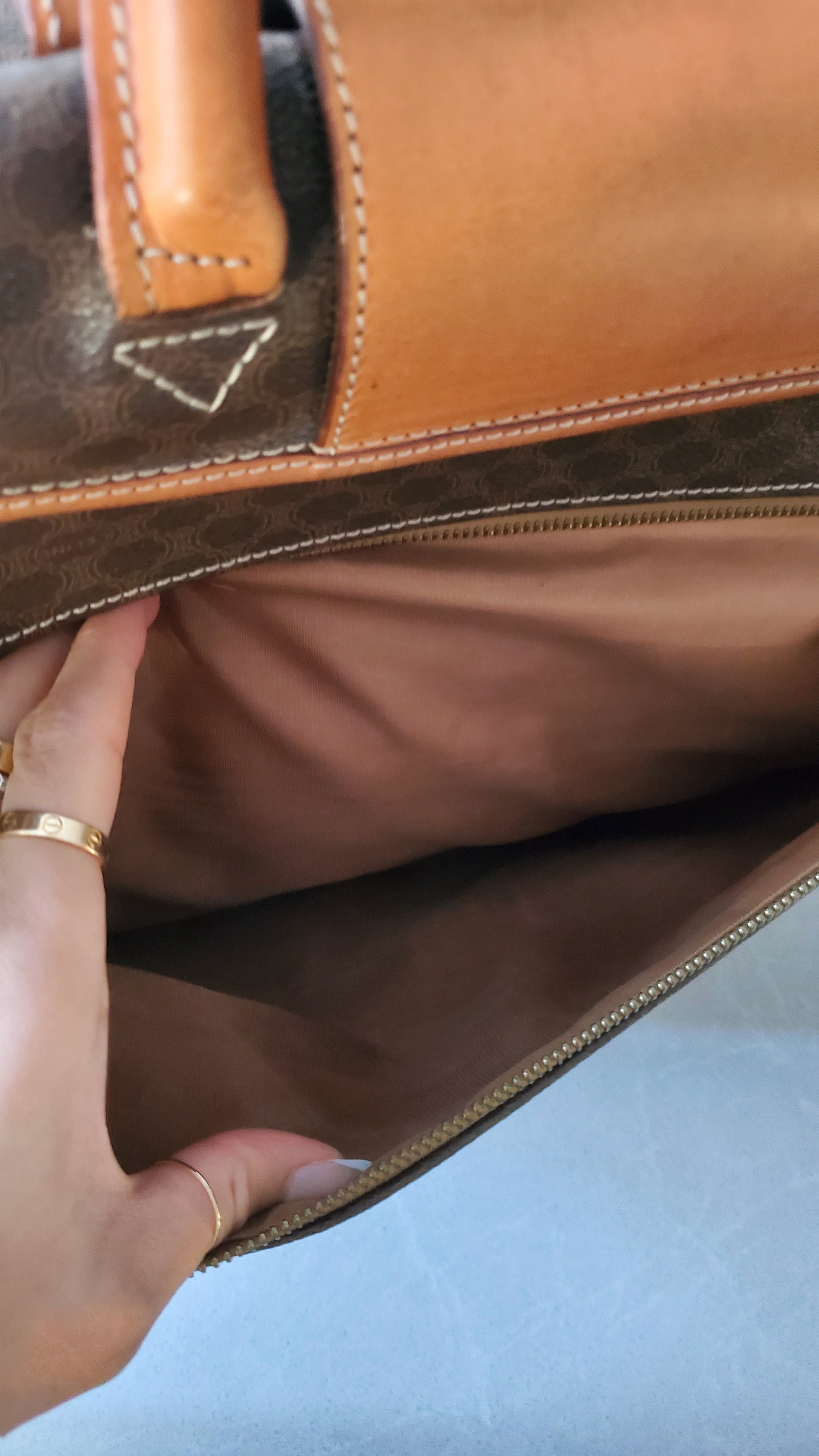 Authentic vintage Celine brown xlarge travel luggage, in great vintage condition overall (main compartment, and inner pocket are also clean). Luggage can fit alot of clothes in there!