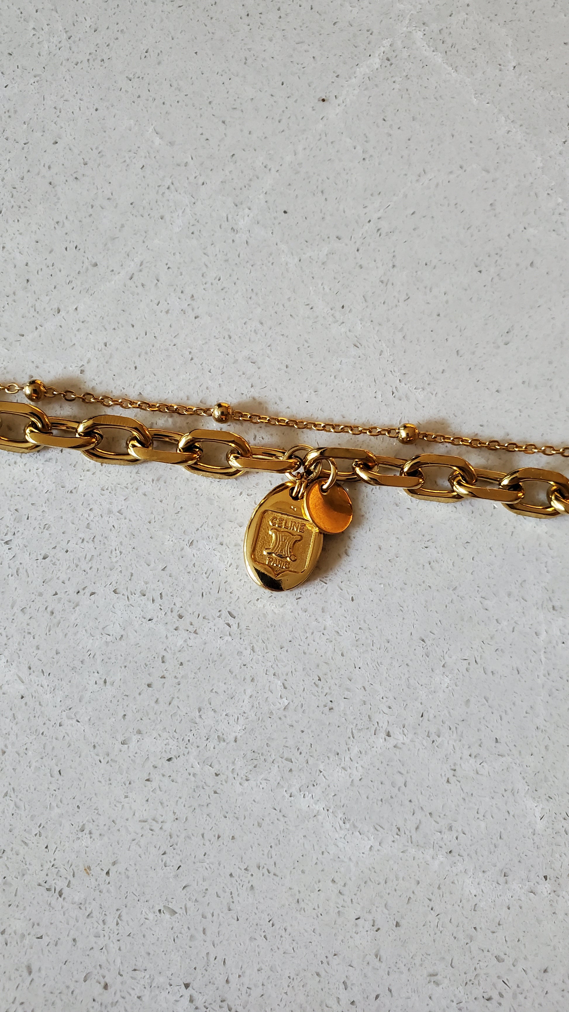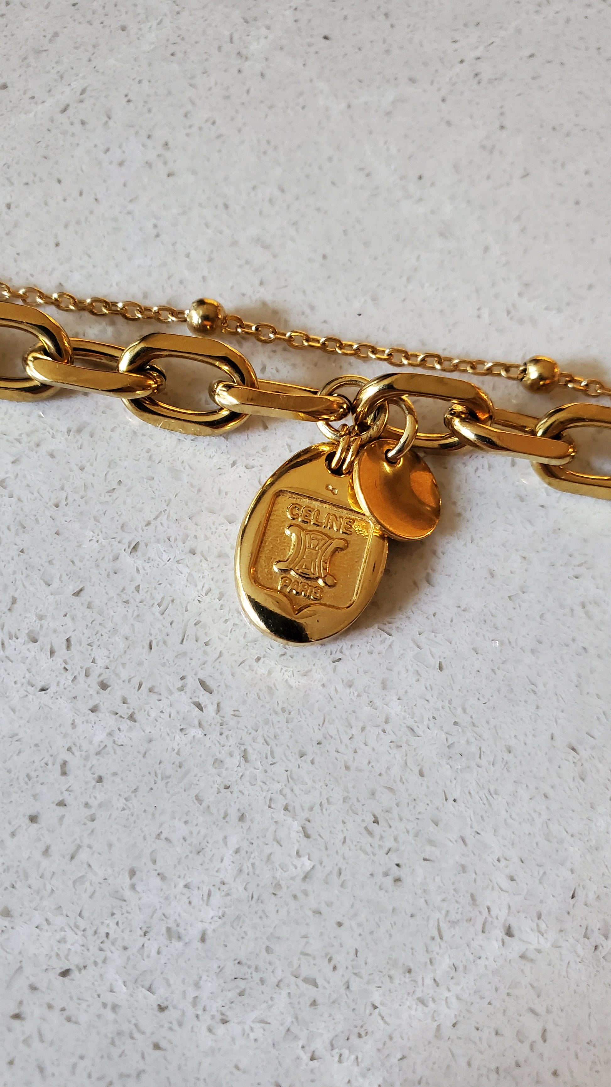 Authentic vintage Celine charm repurposed into a beautiful, timeless double layers beads necklace.