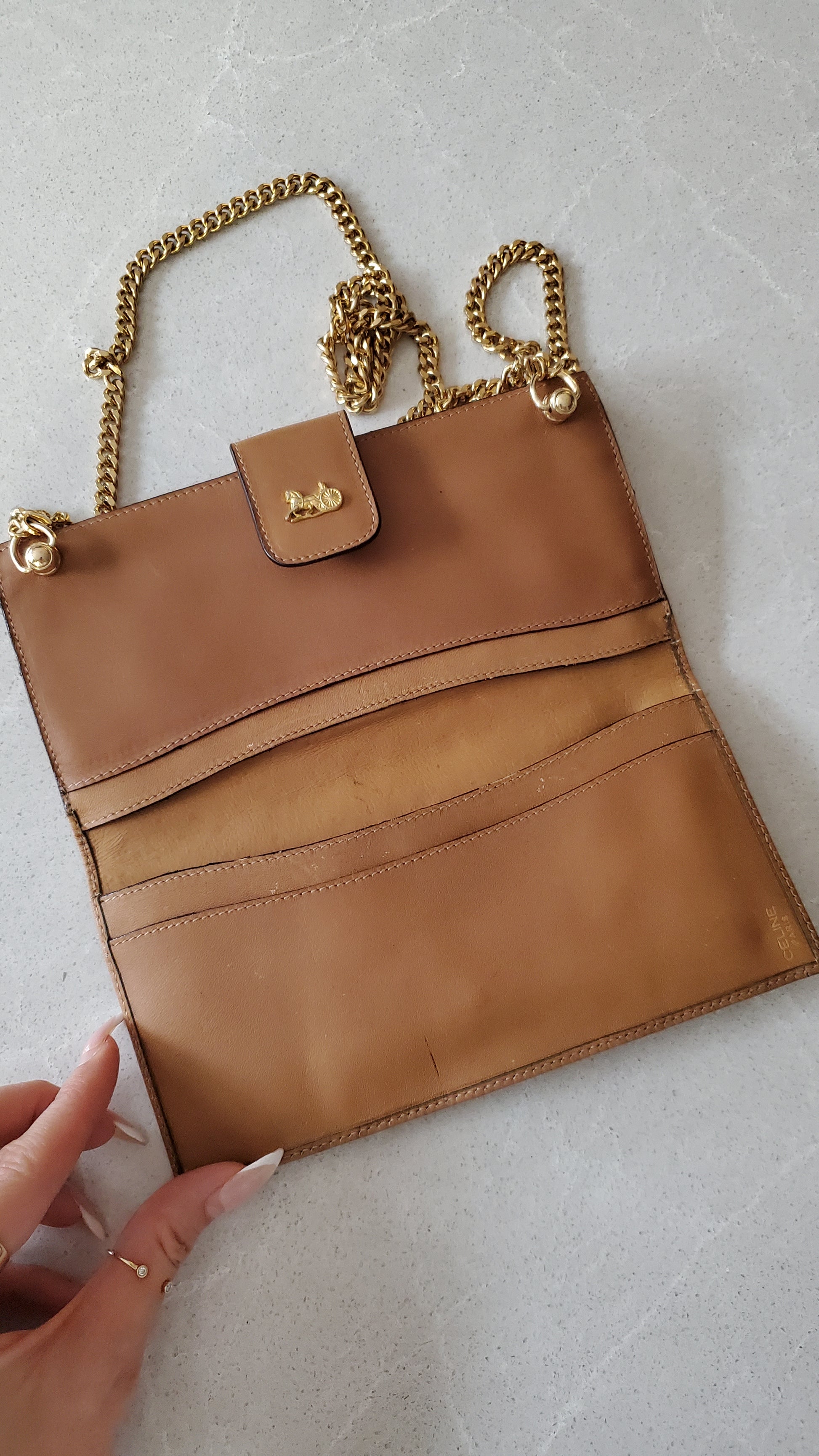 Authentic vintage Céline long wallet reworked into a modern and versatile wallet on strap and chain that can be worn crossbody, shoulder, or handle! See photos for styling ideas