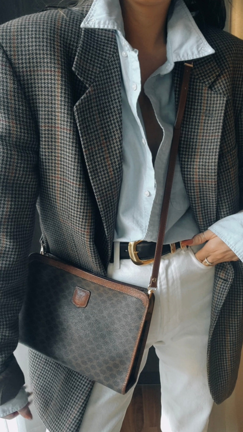 Beautiful authentic vintage Celine purse reworked with a brand new modern strap so you could wear this piece crossbody, or on the shoulder! See photos for styling ideas