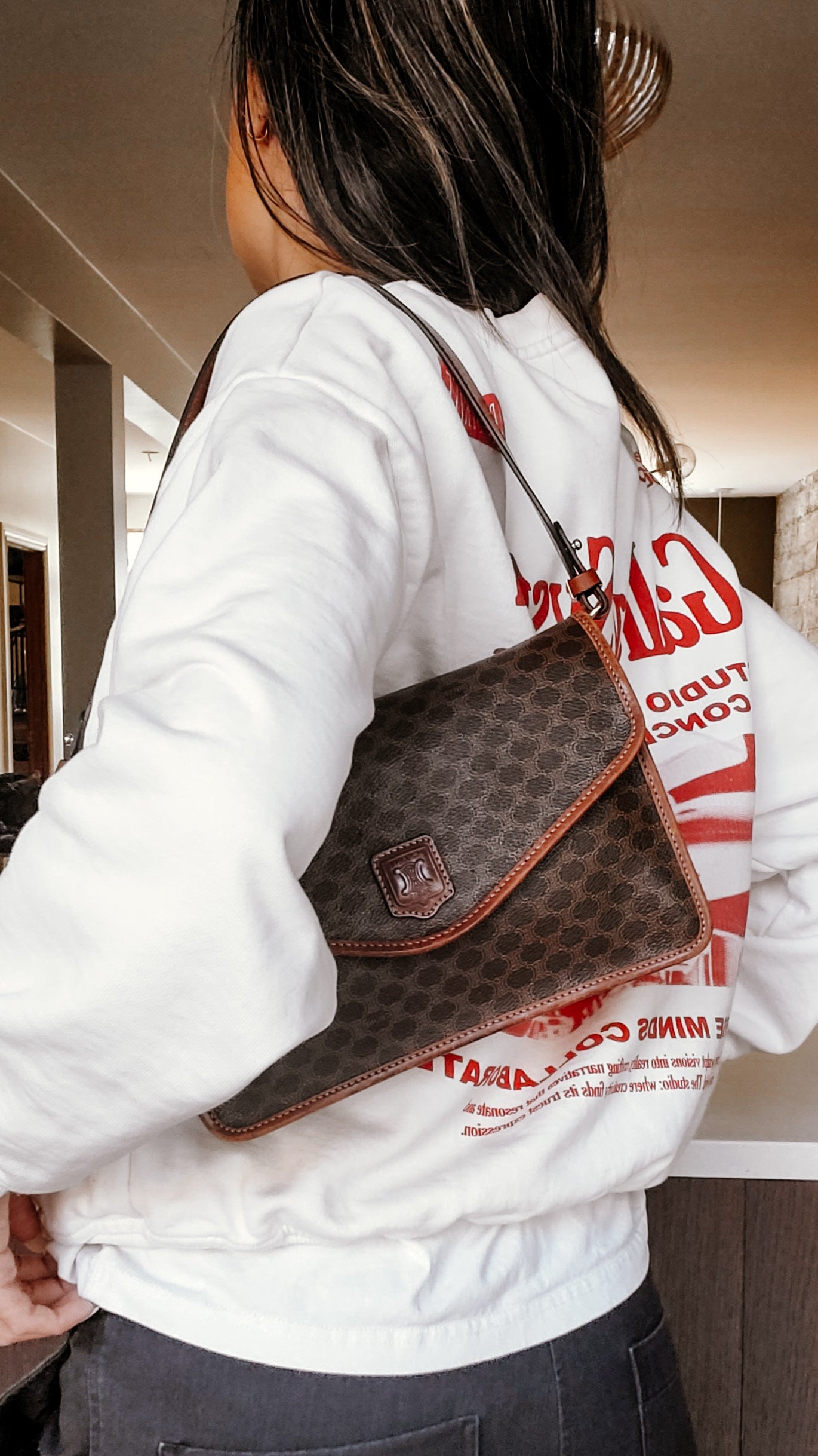 Authentic vintage Celine brown versatile purse with an added removable generic shoulder strap, and the bag's original crossbody strap. Both straps are removable -See photos for styling ideas