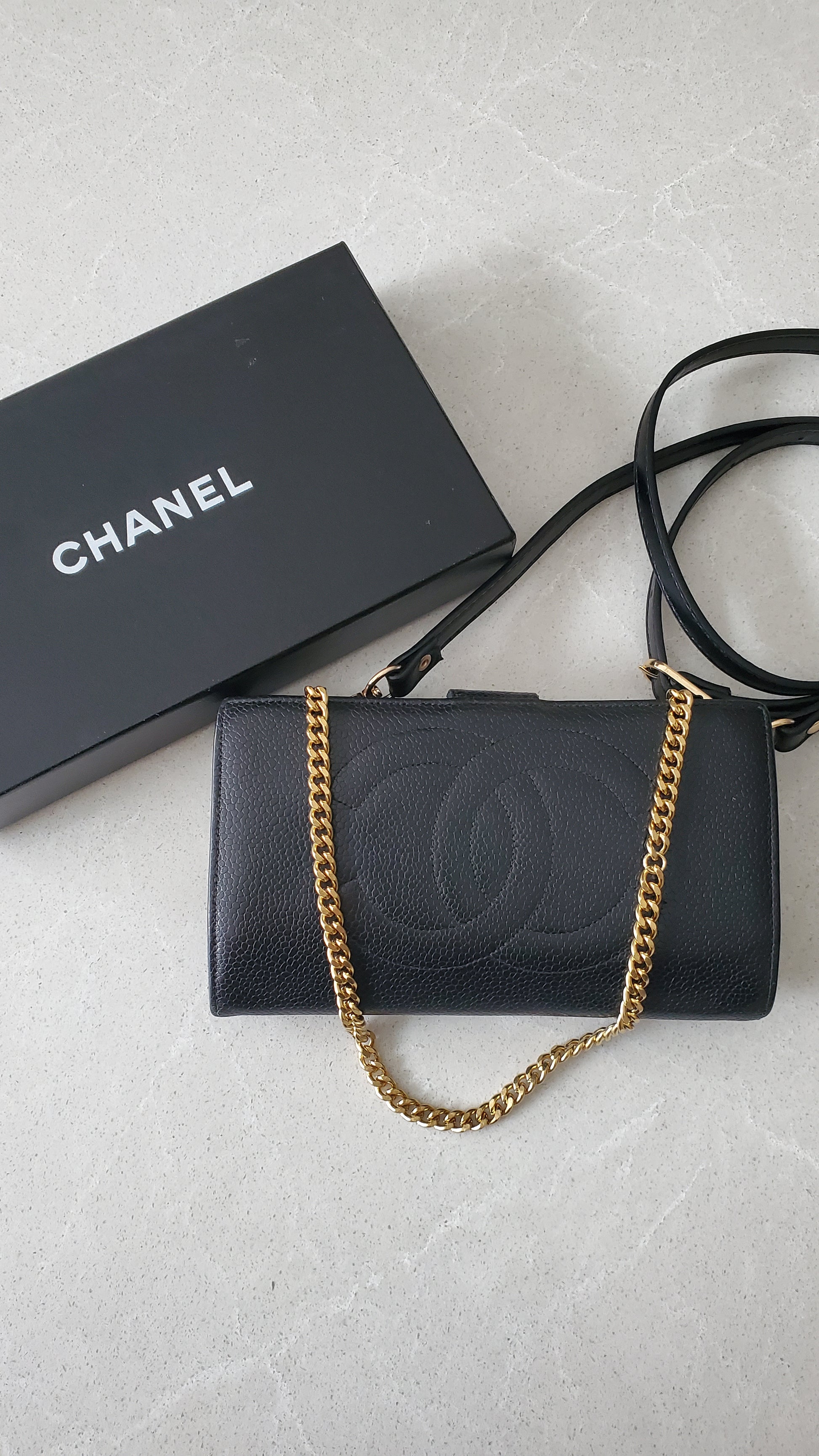 Authentic Vintage Chanel Caviar Upcycle Wallet on Chain & Strap