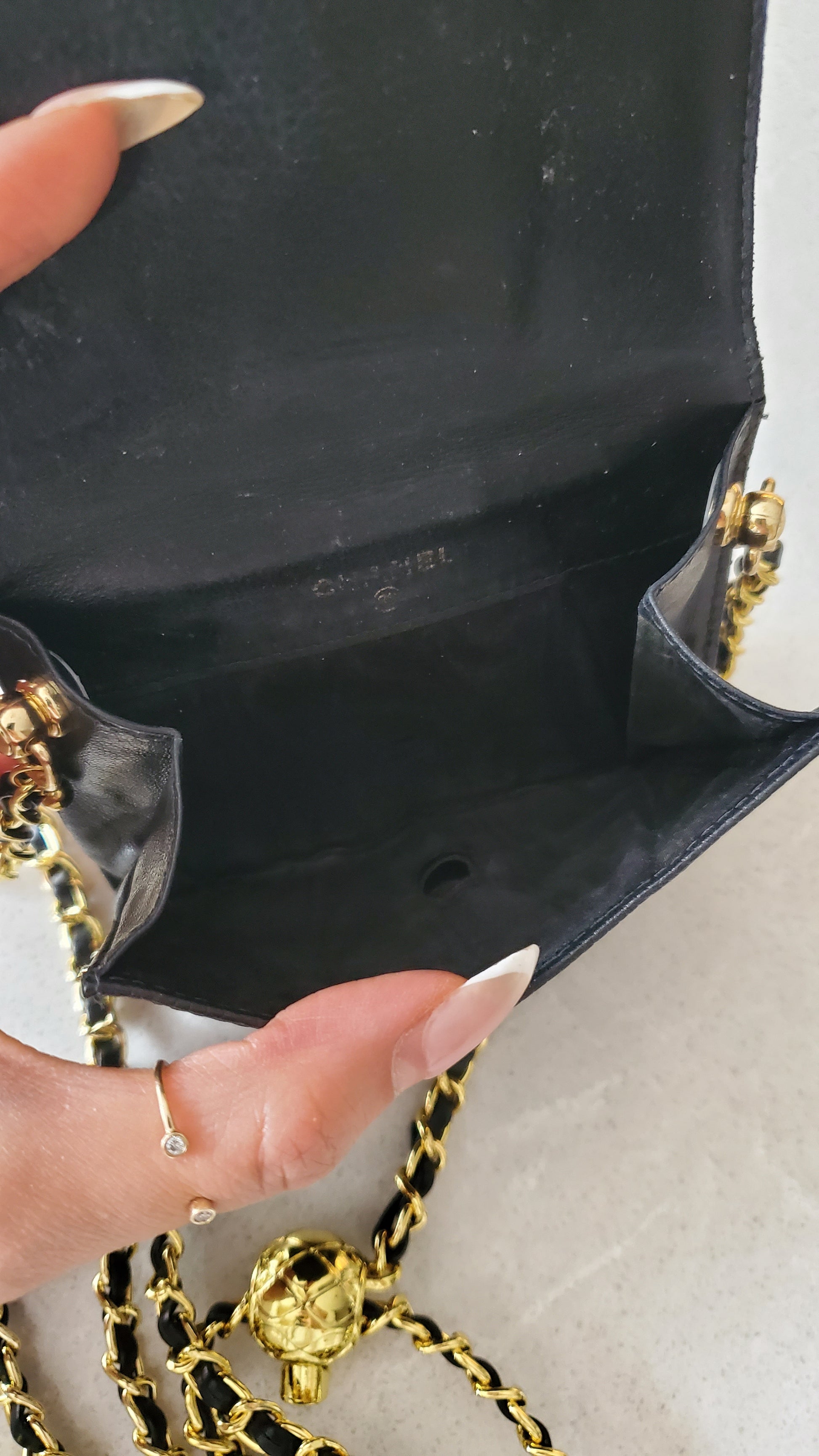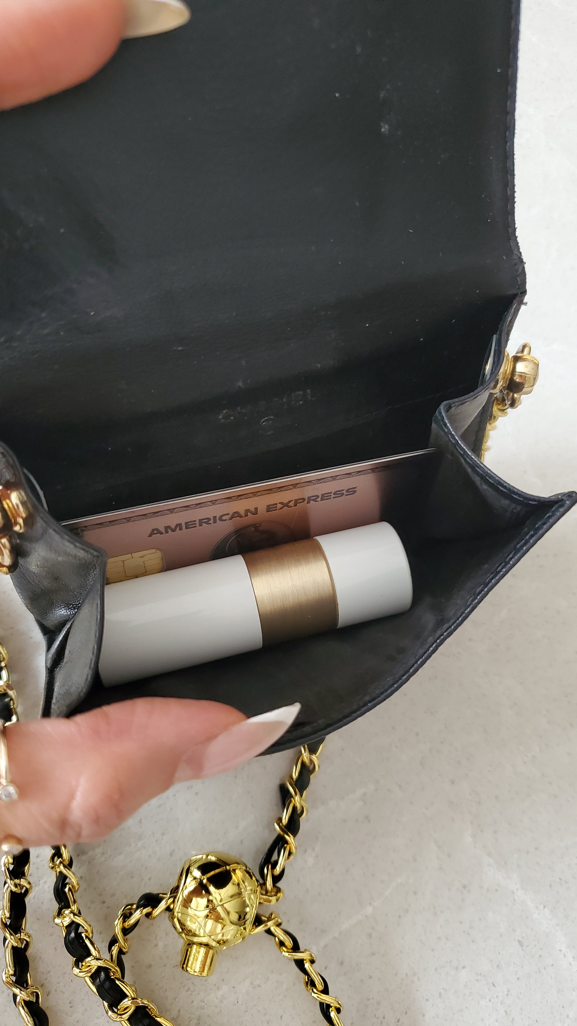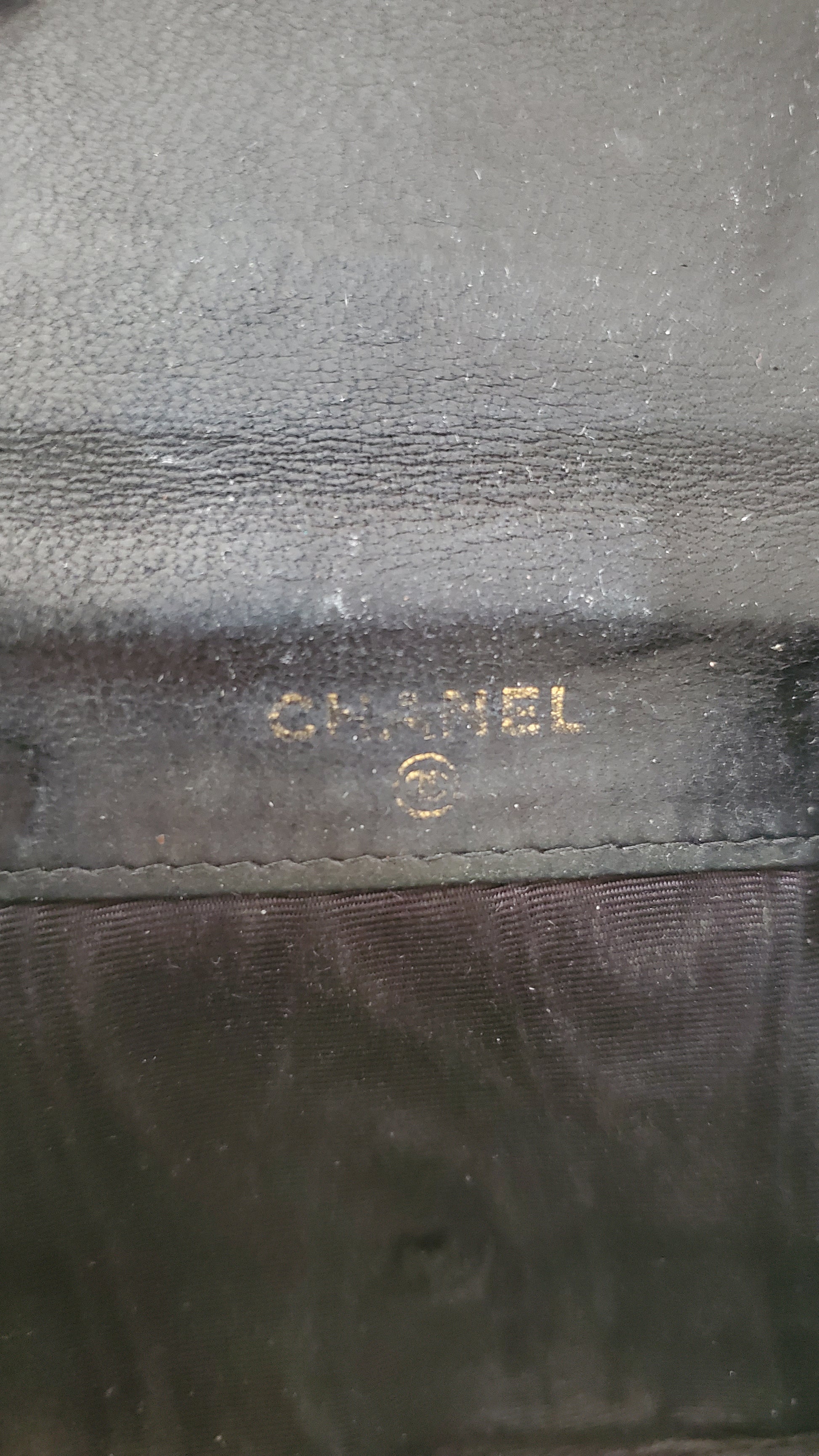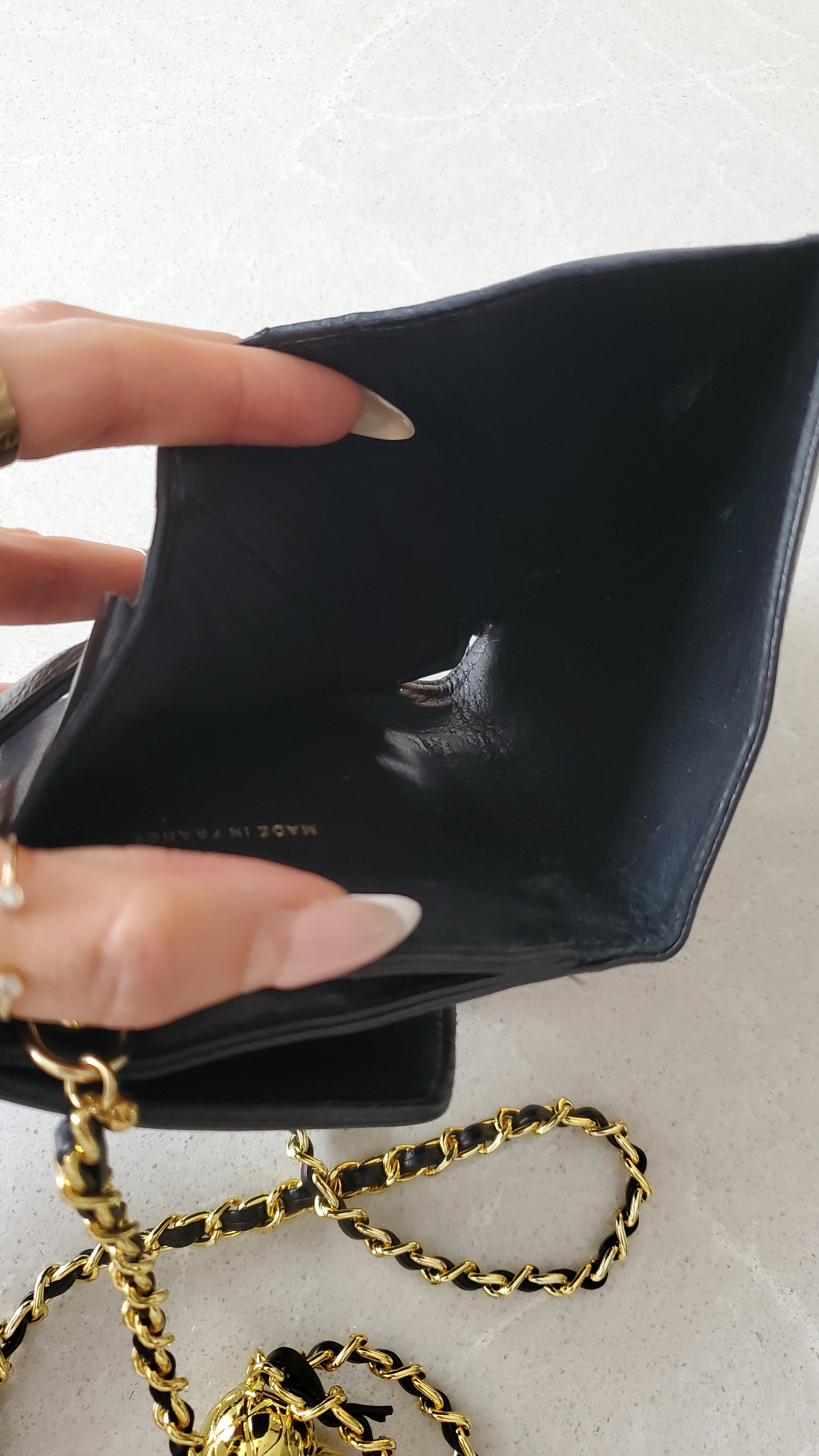 Authentic Vintage Chanel Upcycle Black Caviar Compact Wallet on Chain