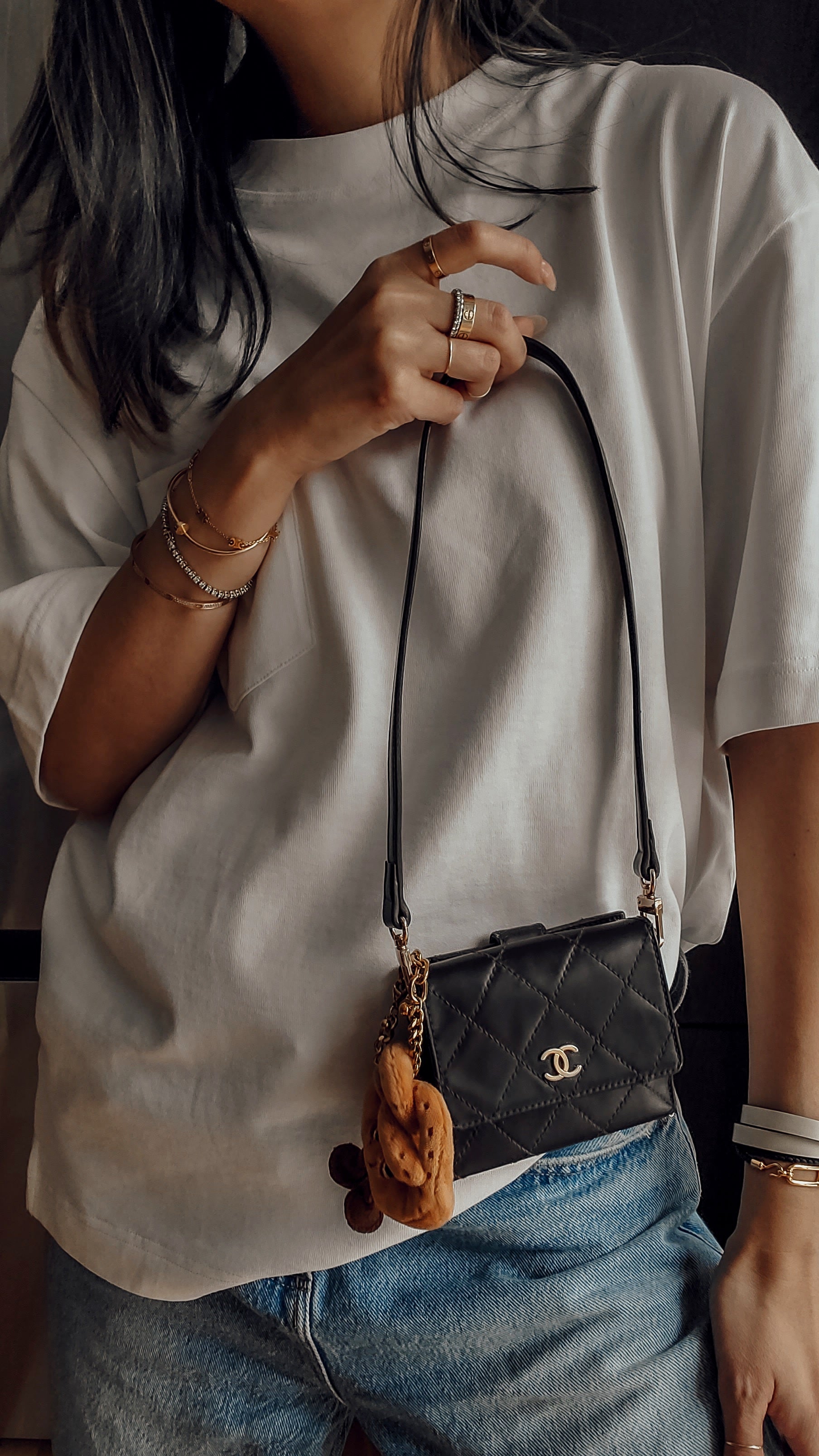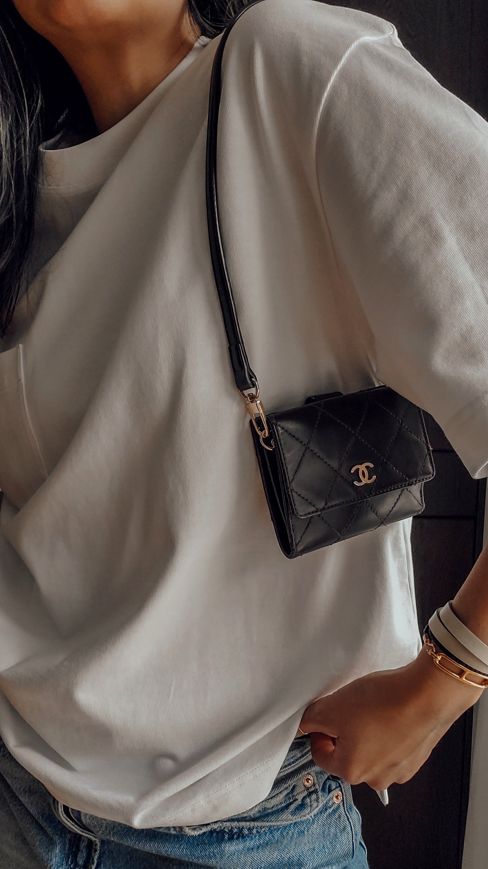 Authentic vintage Chanel brown leather wallet reworked with brand new shoulder strap ! See photos for styling ideas (Pretzel charm is for photos, and styling idea purpose only. Does not come with bag)