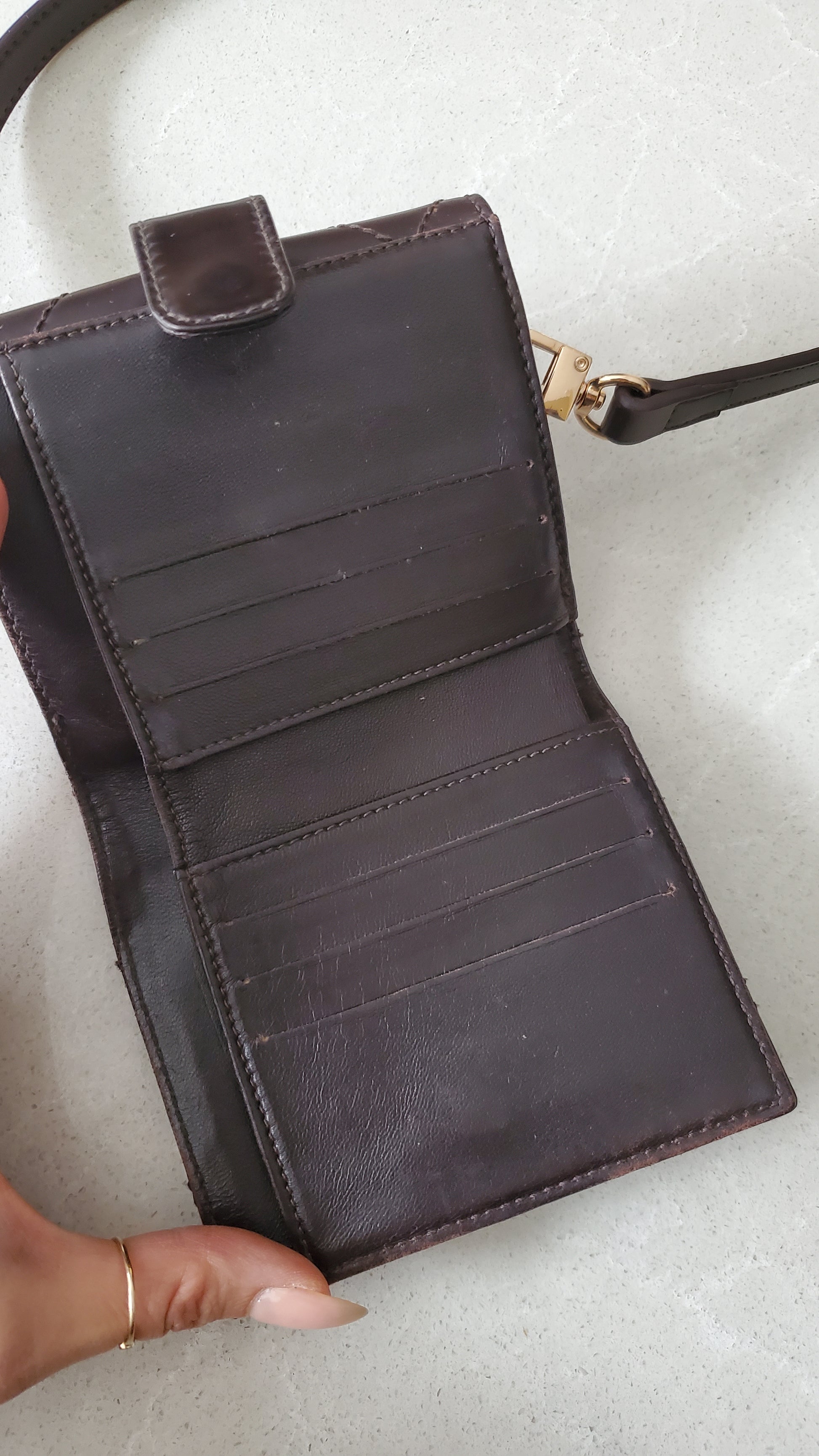 Authentic Vintage Chanel Upcycle (Brown) Small Shoulder Wallet with Strap