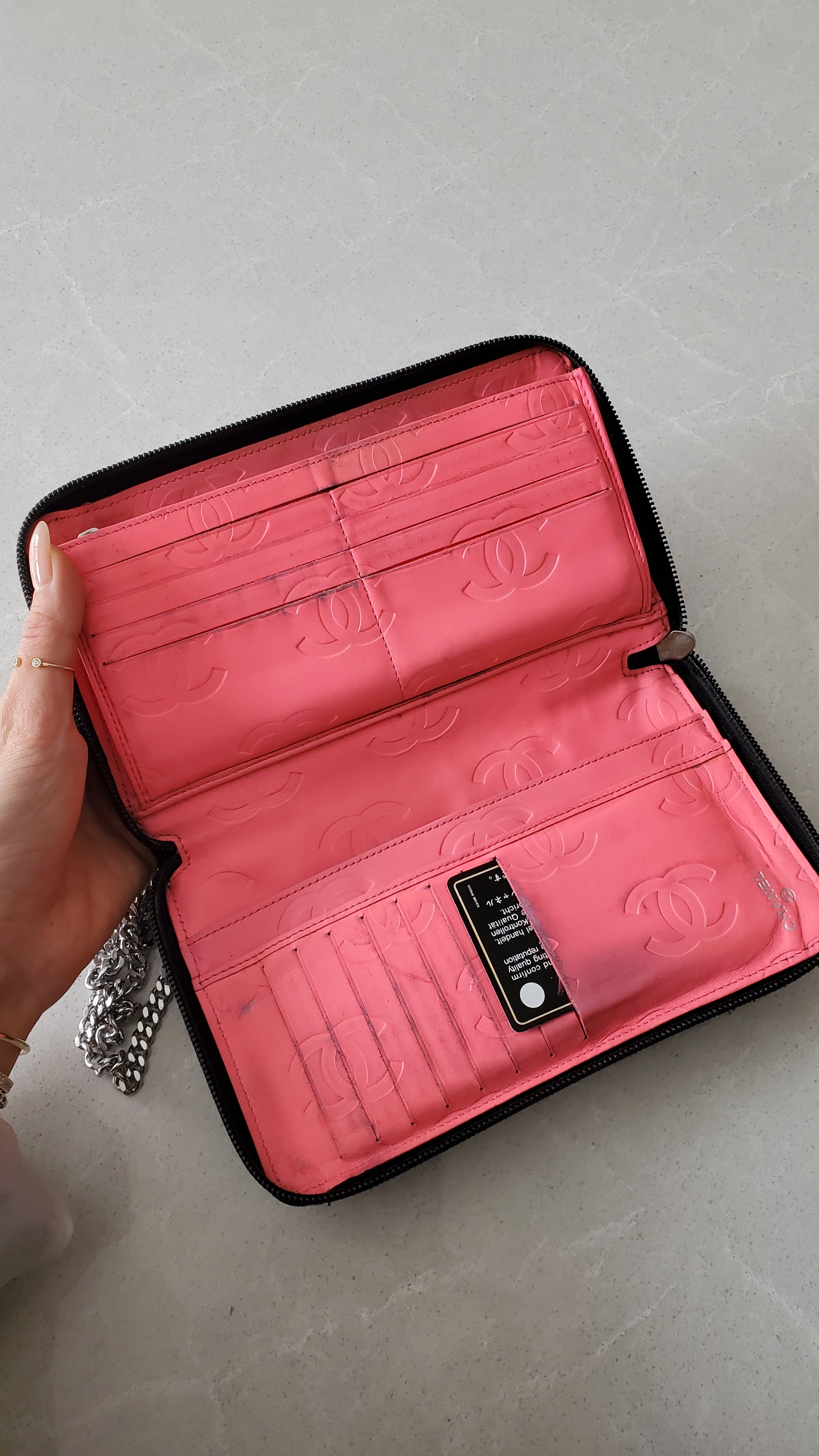 Authentic Vintage Chanel Upcycle Large Zip Wallet on Chain