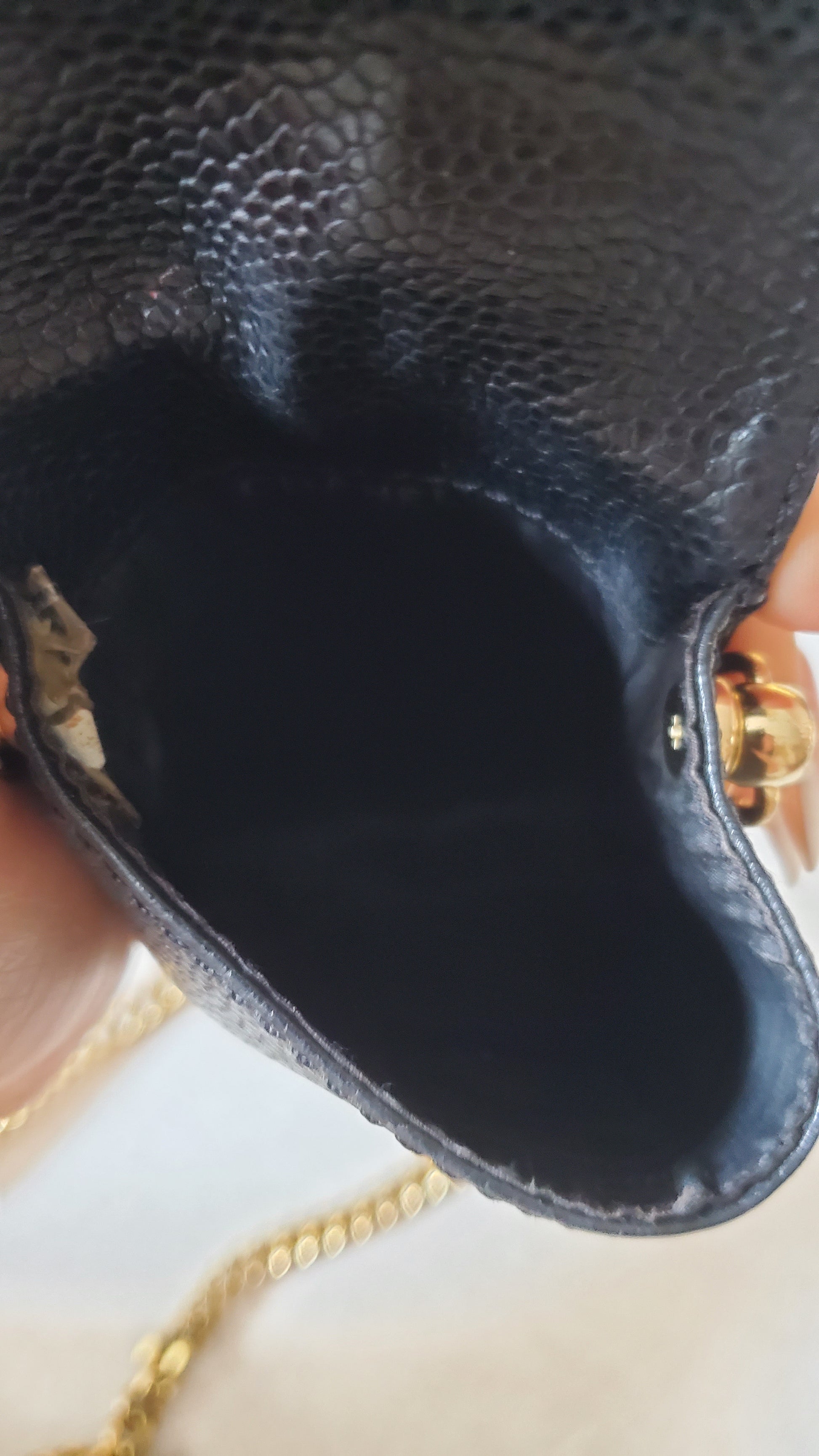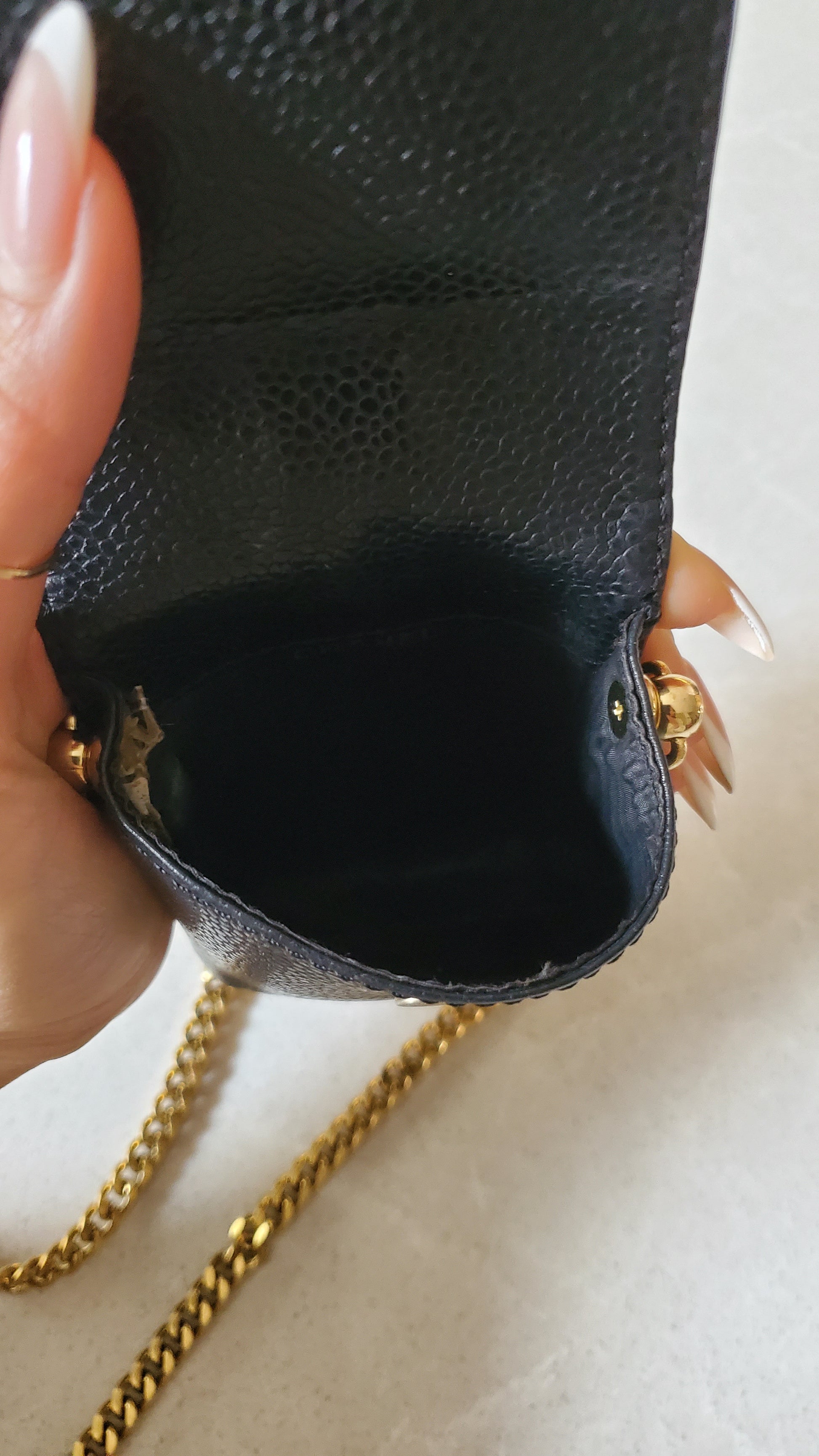 Authentic Vintage Chanel Upcycle Versatile Black Caviar Small Pouch on Chain