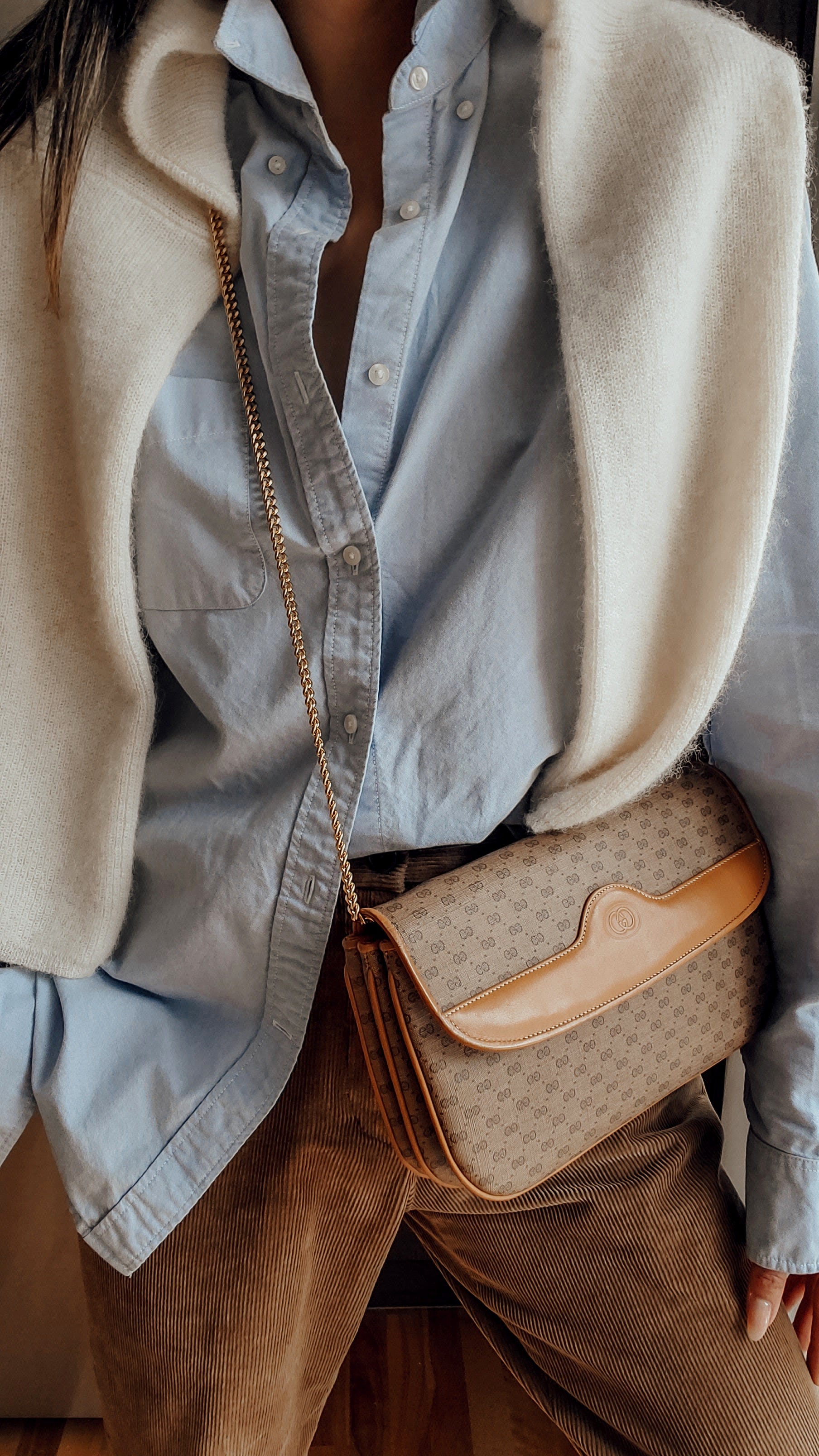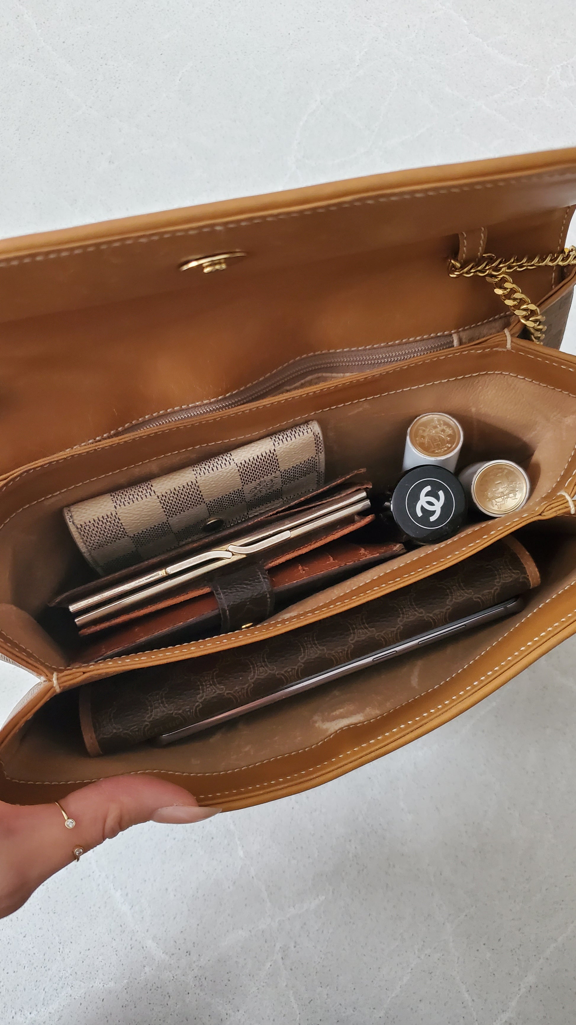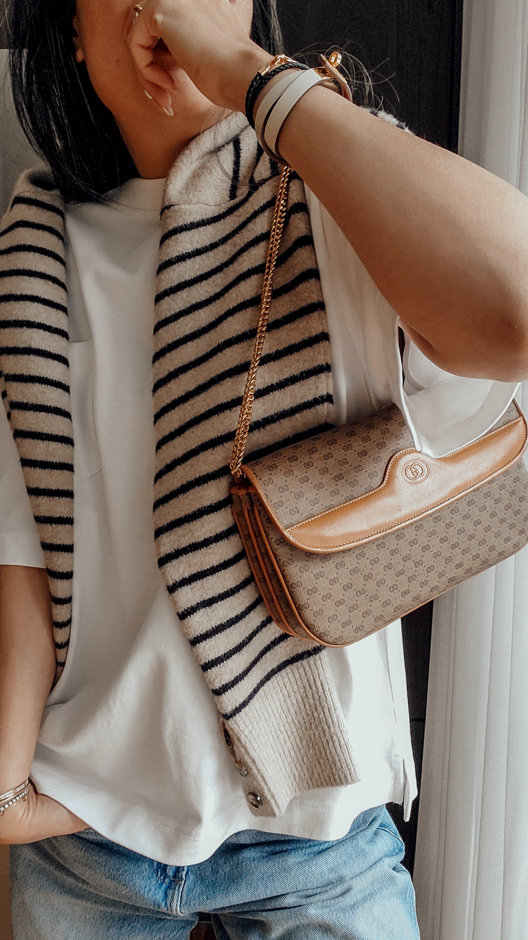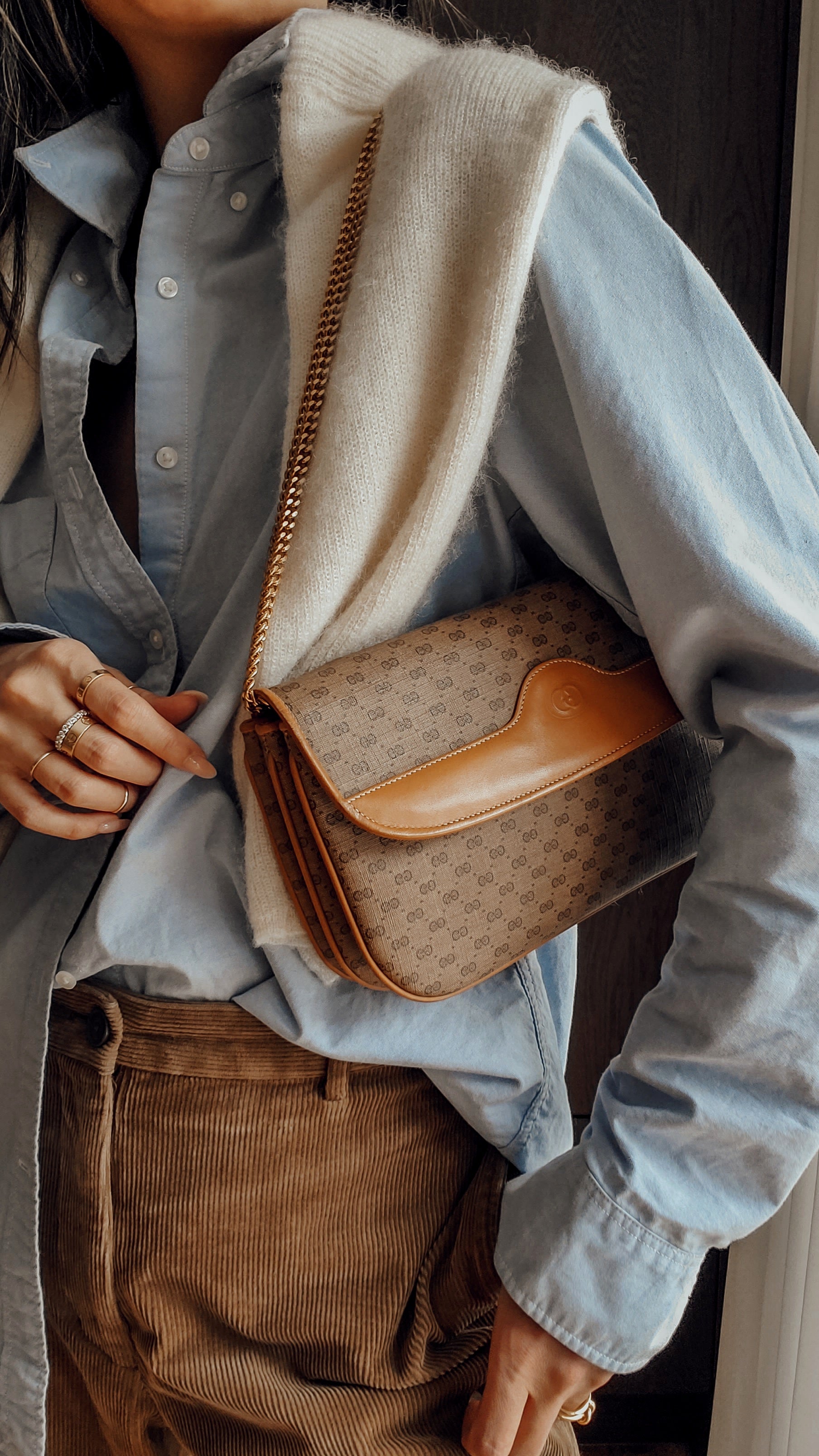 Authentic vintage Gucci three compartments purse reworked into a fun and versatile purse on chains that can be worn crossbody, on the shoulder, or handle! See photos for styling ideas