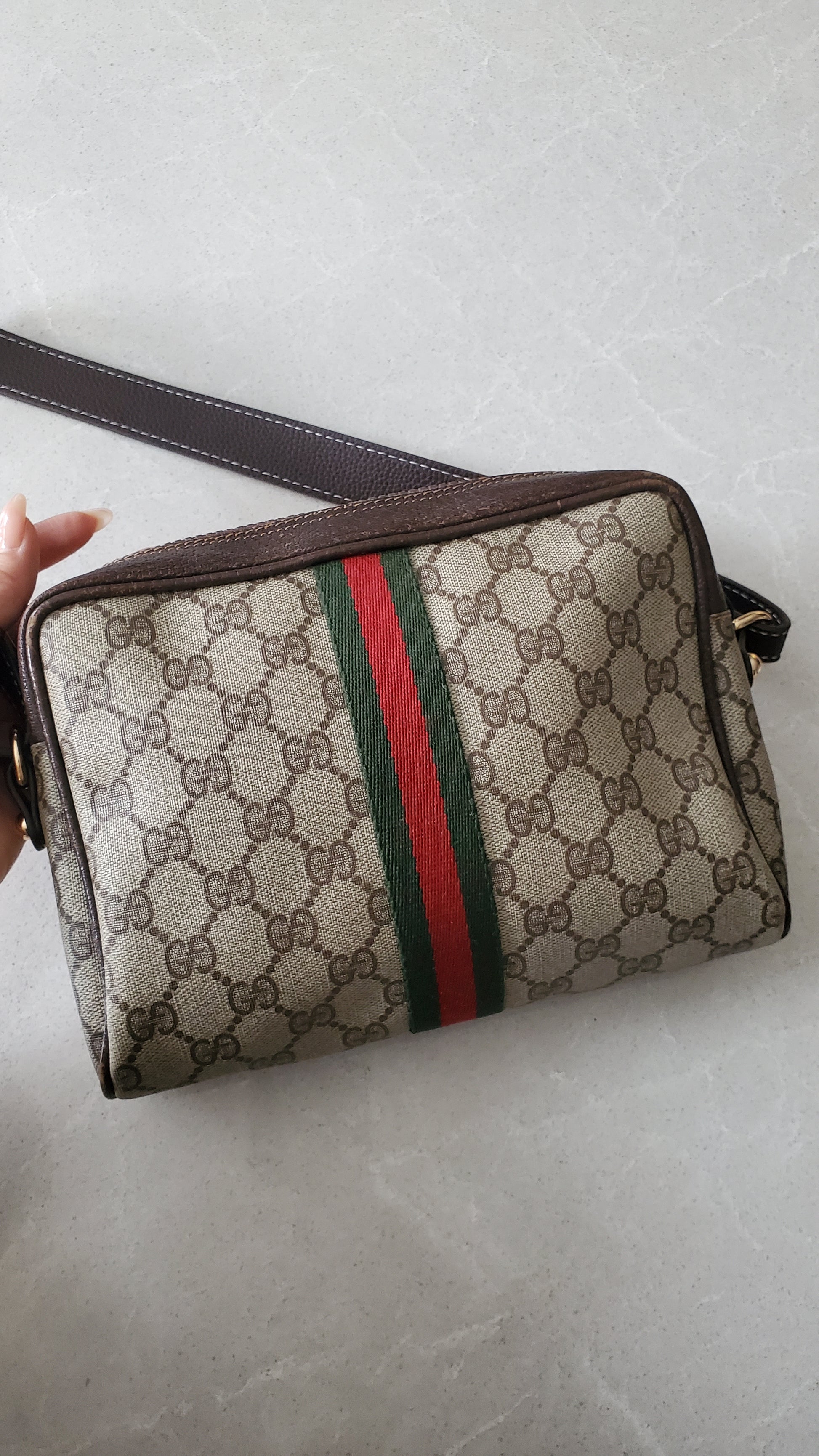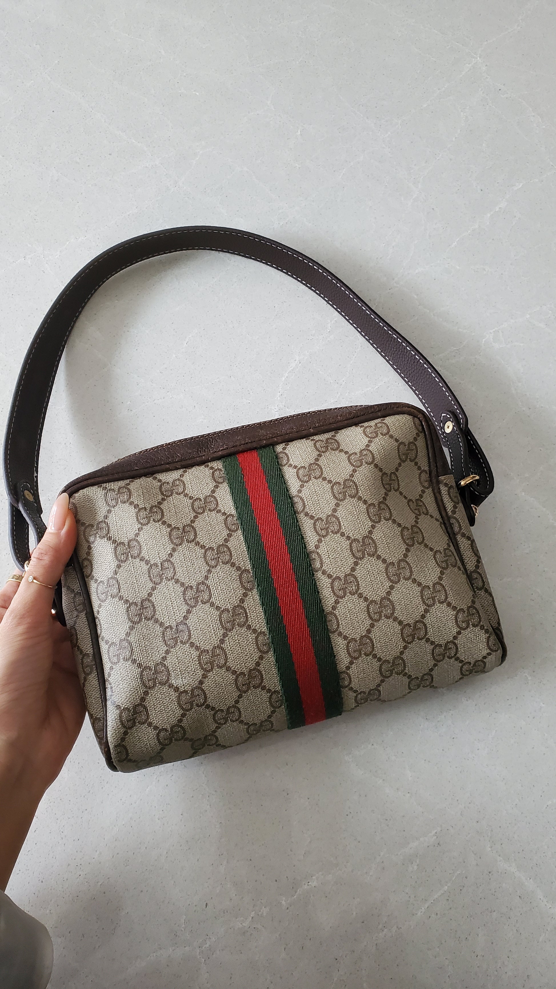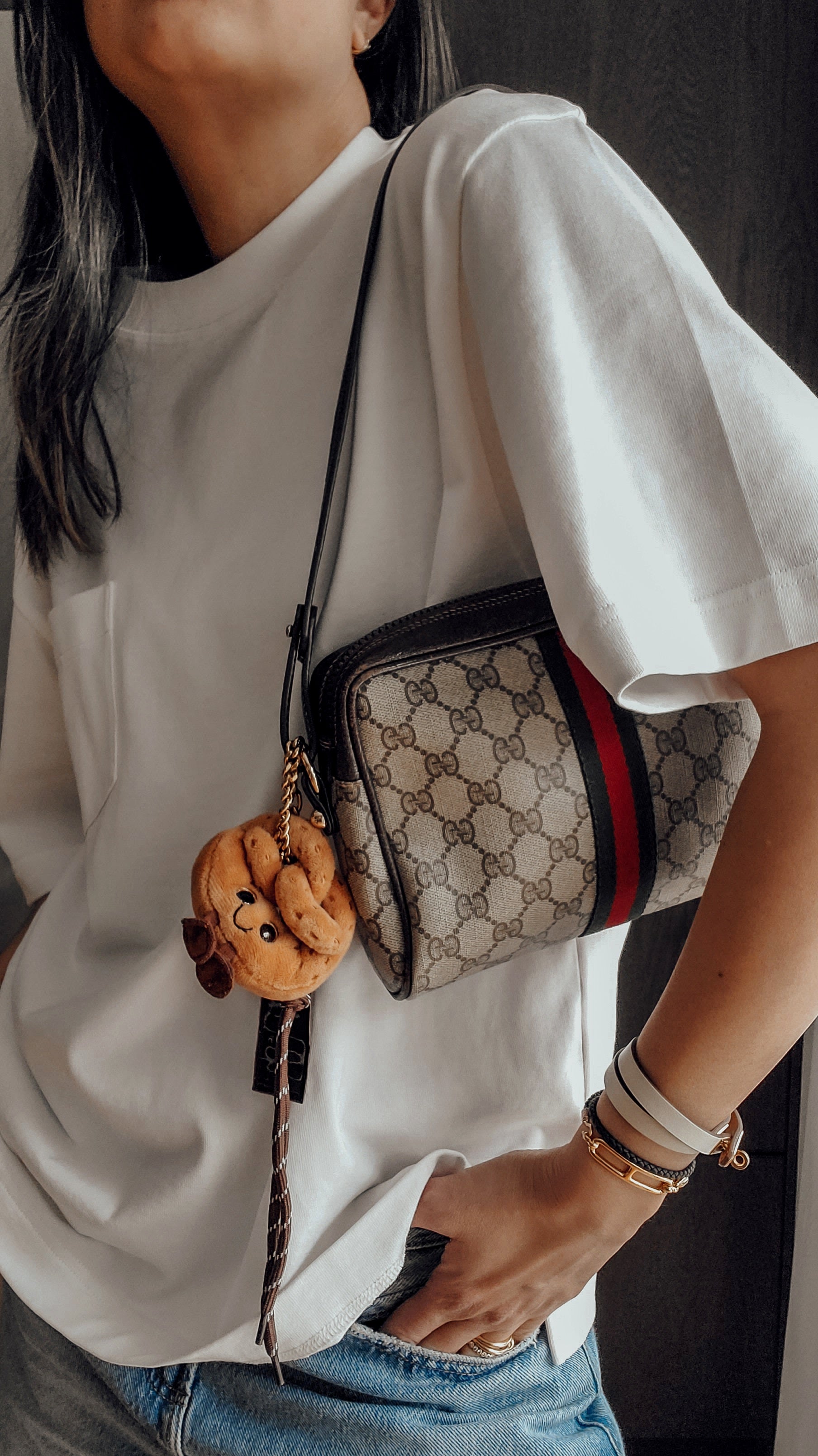 Authentic vintage Gucci purse reworked with brand new shoulder strap! See photos for styling ideas (Pretzel charm is for photos, and styling idea purpose only. Does not come with bag)
