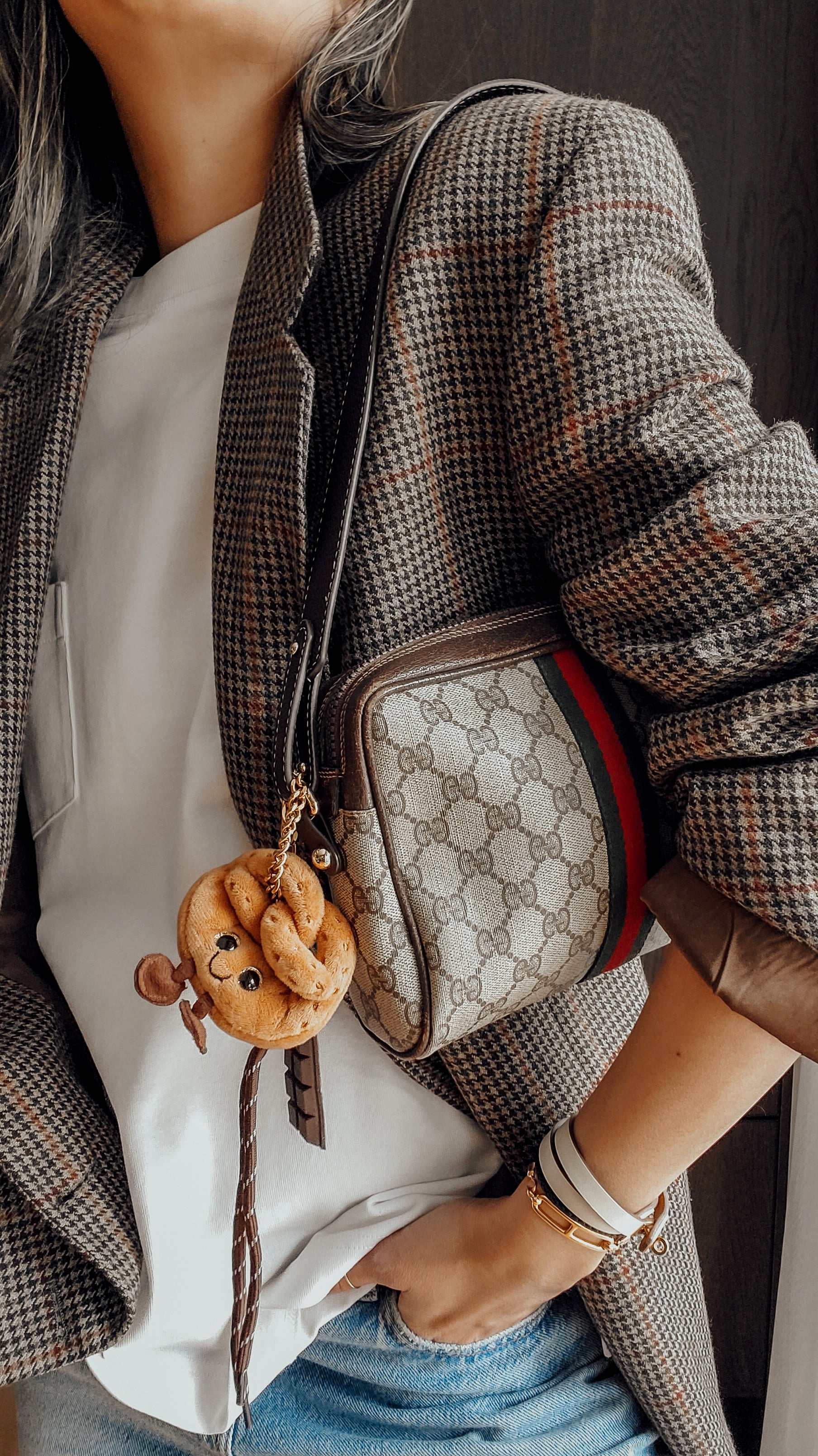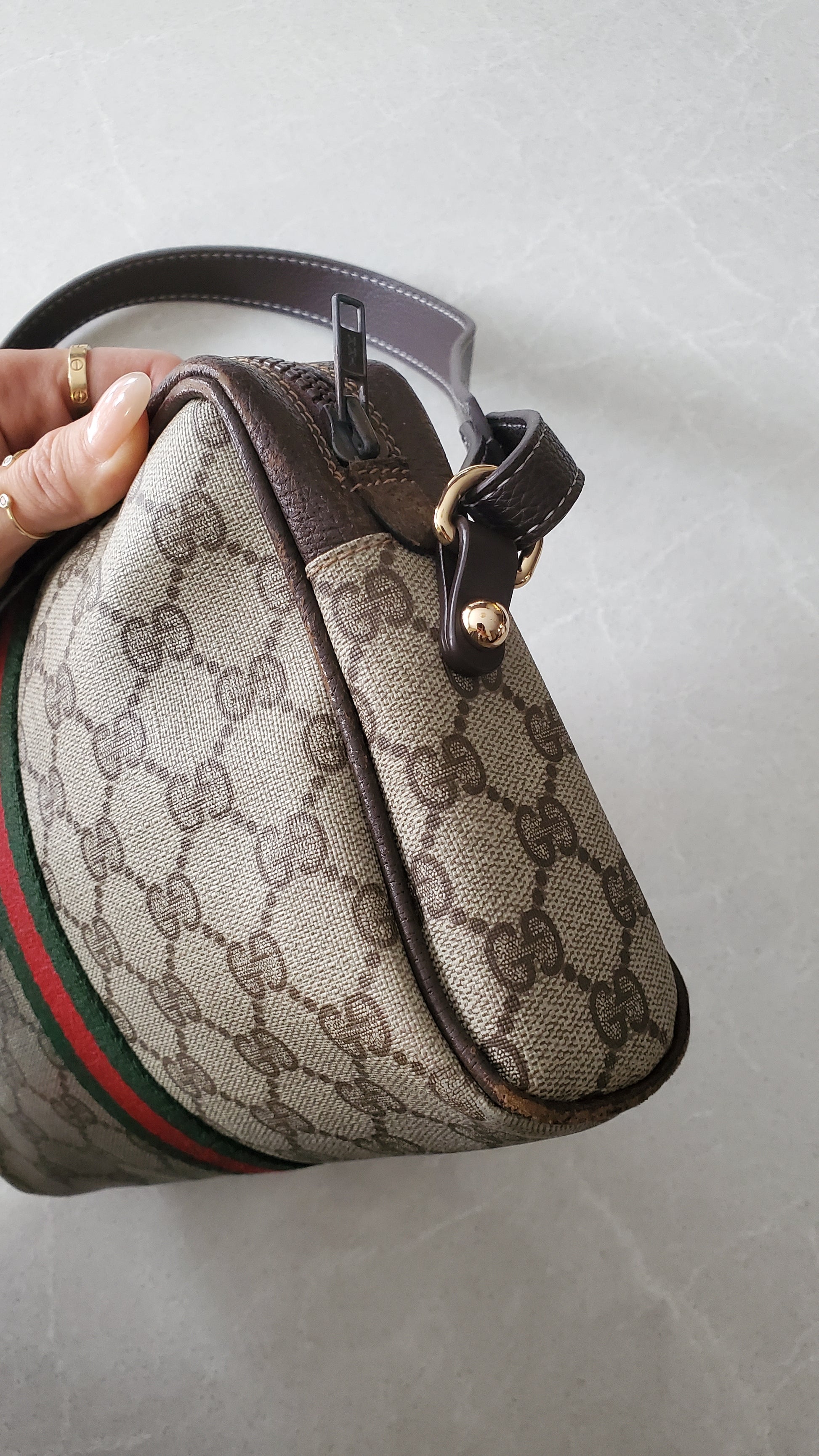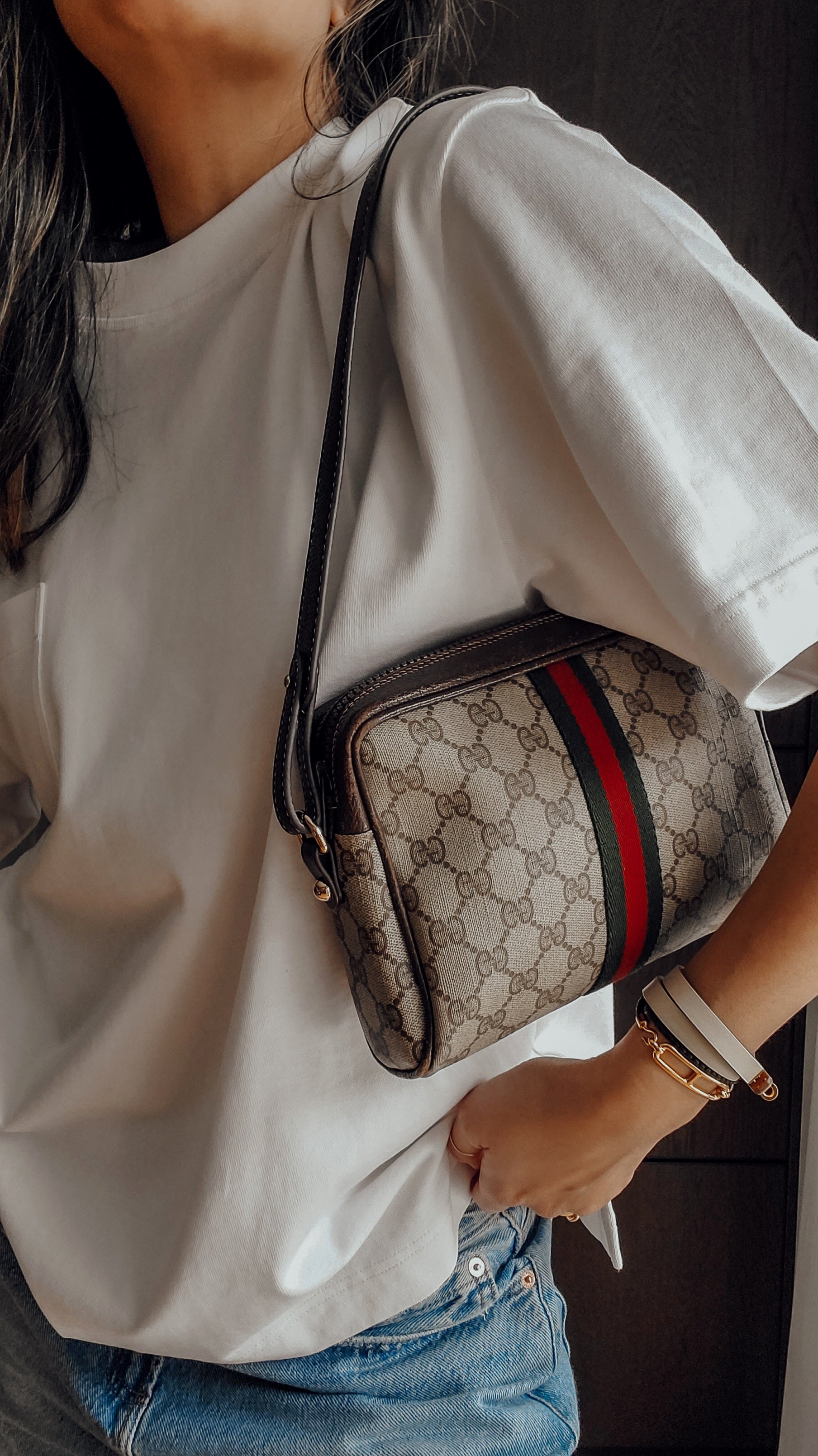 Authentic vintage Gucci purse reworked with brand new shoulder strap! See photos for styling ideas (Pretzel charm is for photos, and styling idea purpose only. Does not come with bag)