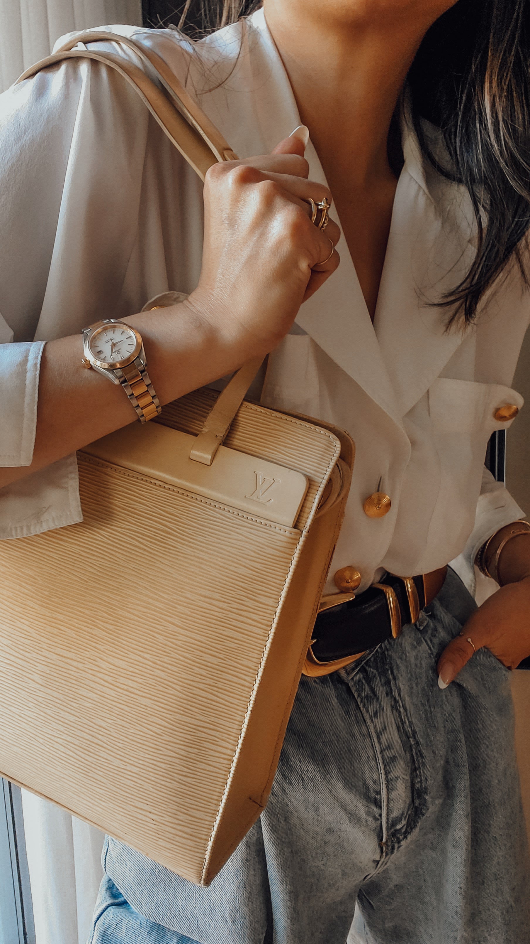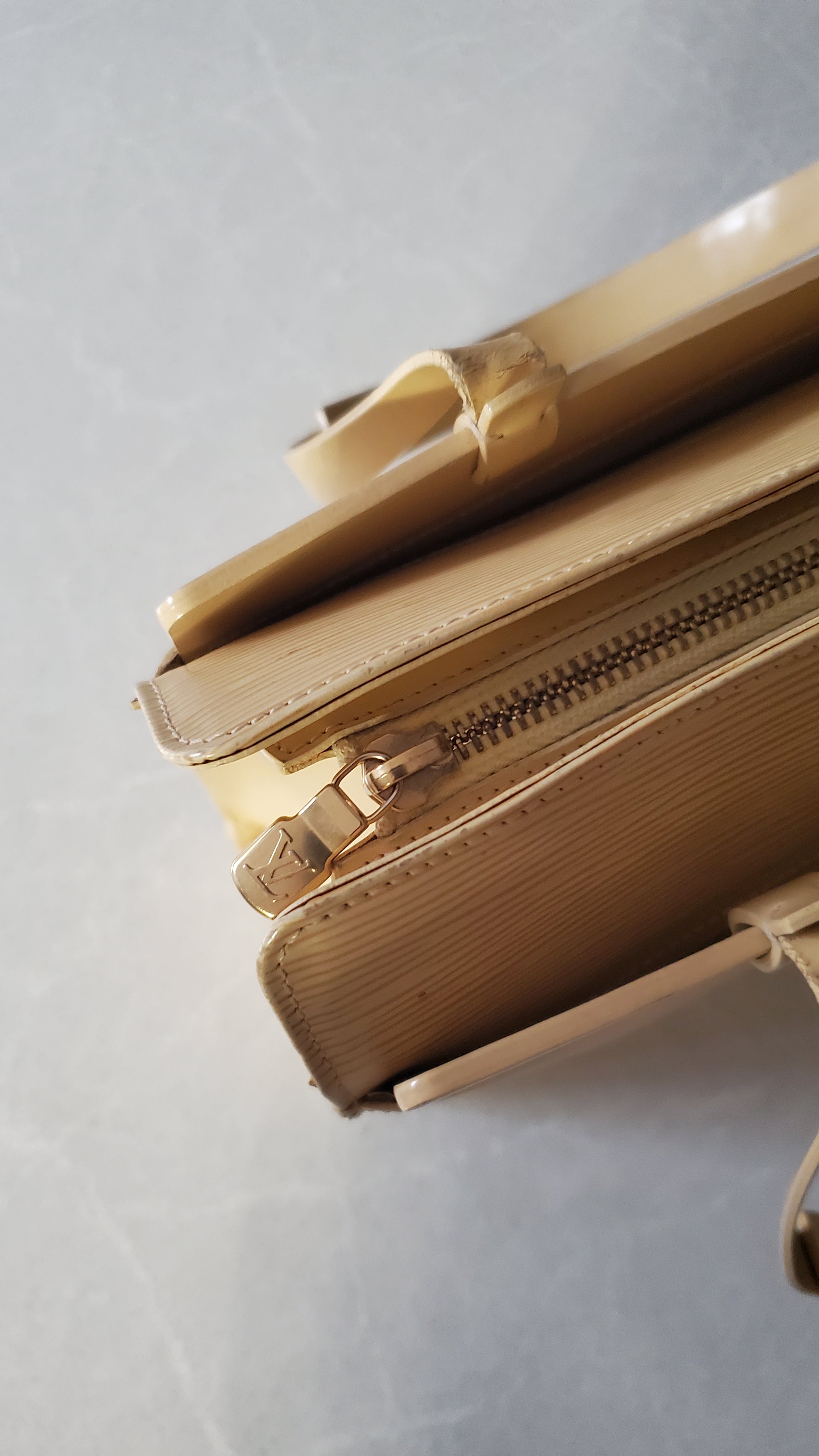 Authentic vintage Louis Vuitton cream epi purse from year 2000 (#LB1000), in excellent vintage condition overall (outer canvas is in great shape, inner pockets are all clean. Main compartment shows some wear, but it's clean); can fit clothes, large wallet, agenda, phone, cosmetic pouch etc *see all photos for condition
