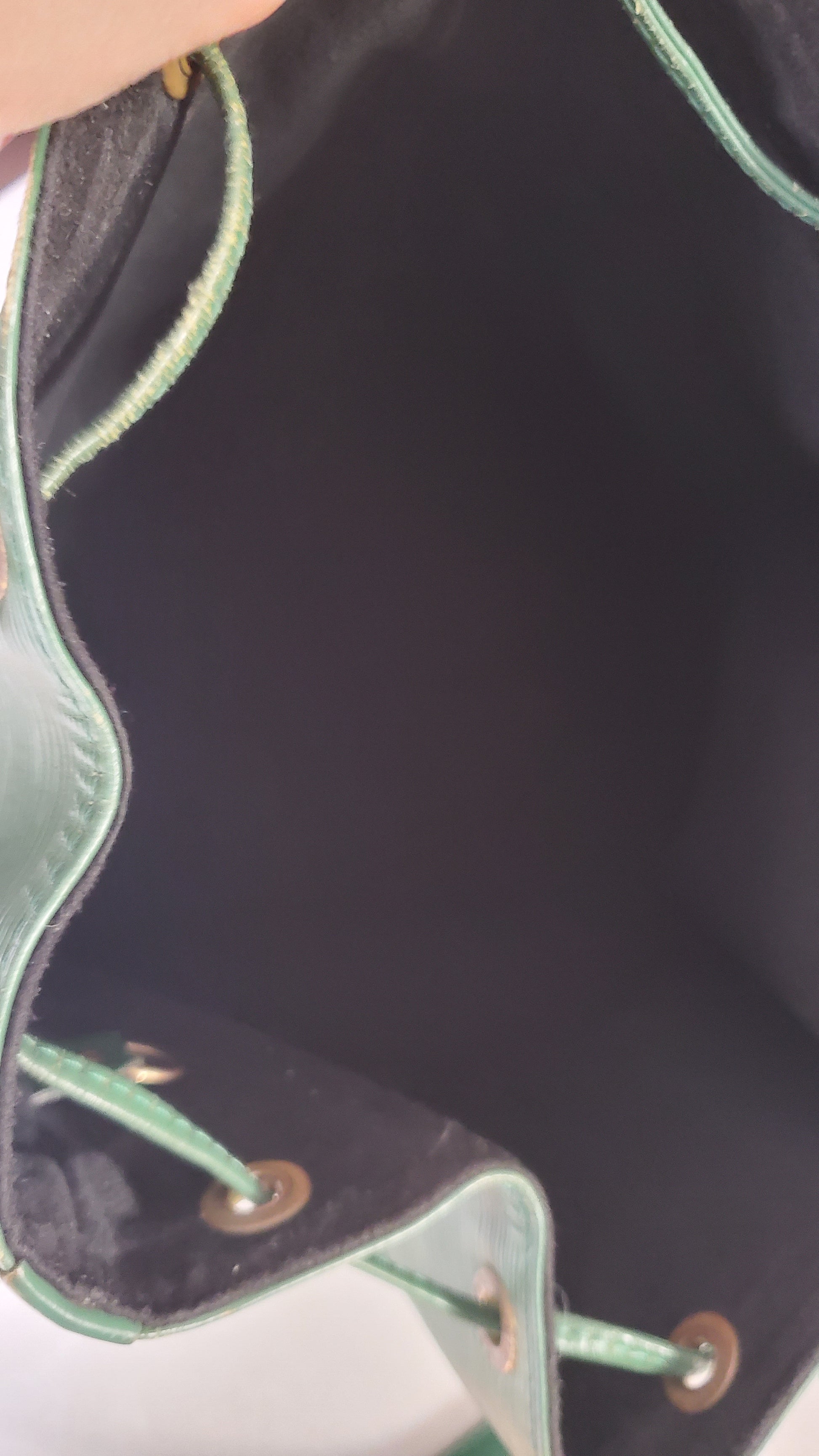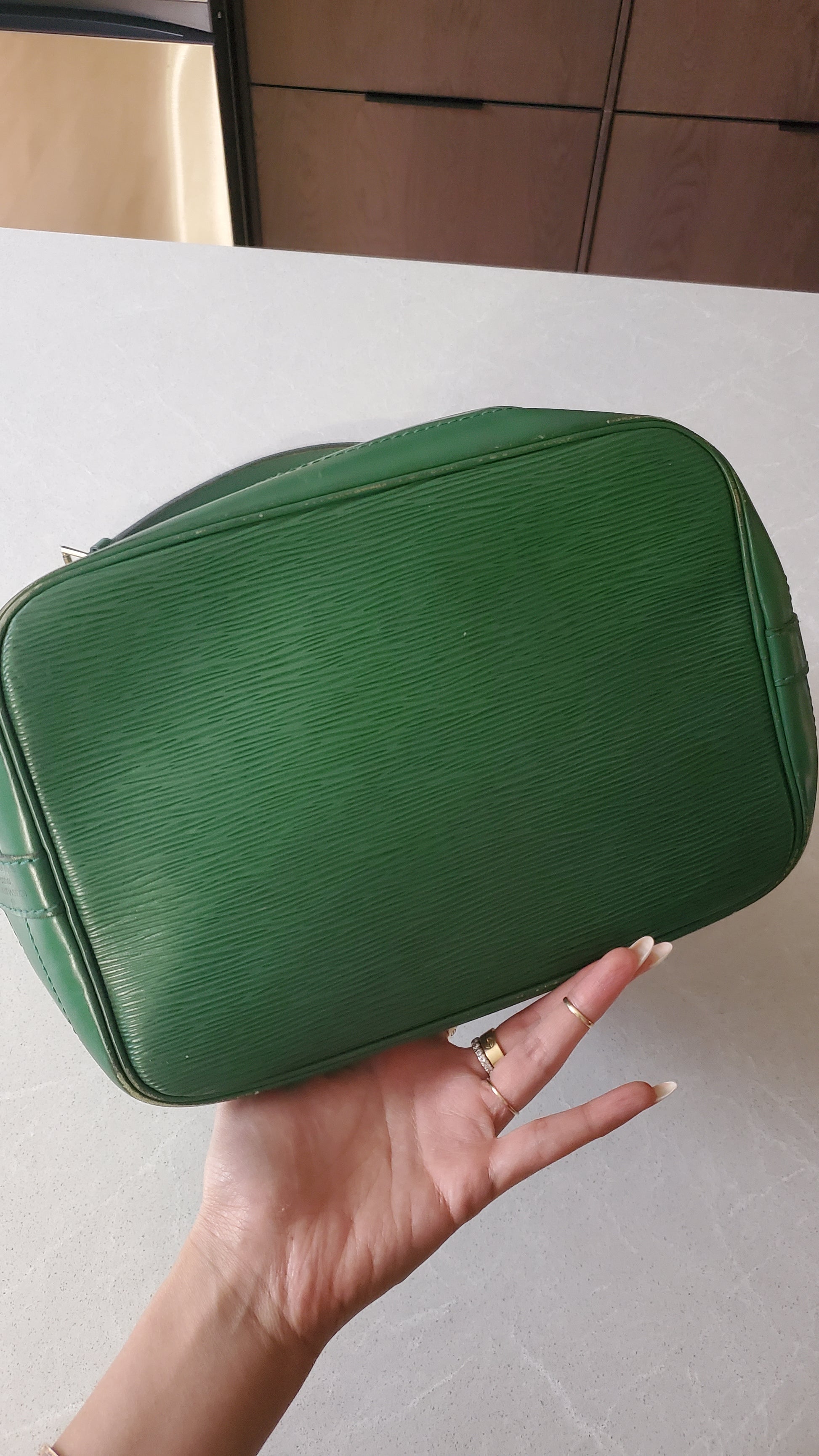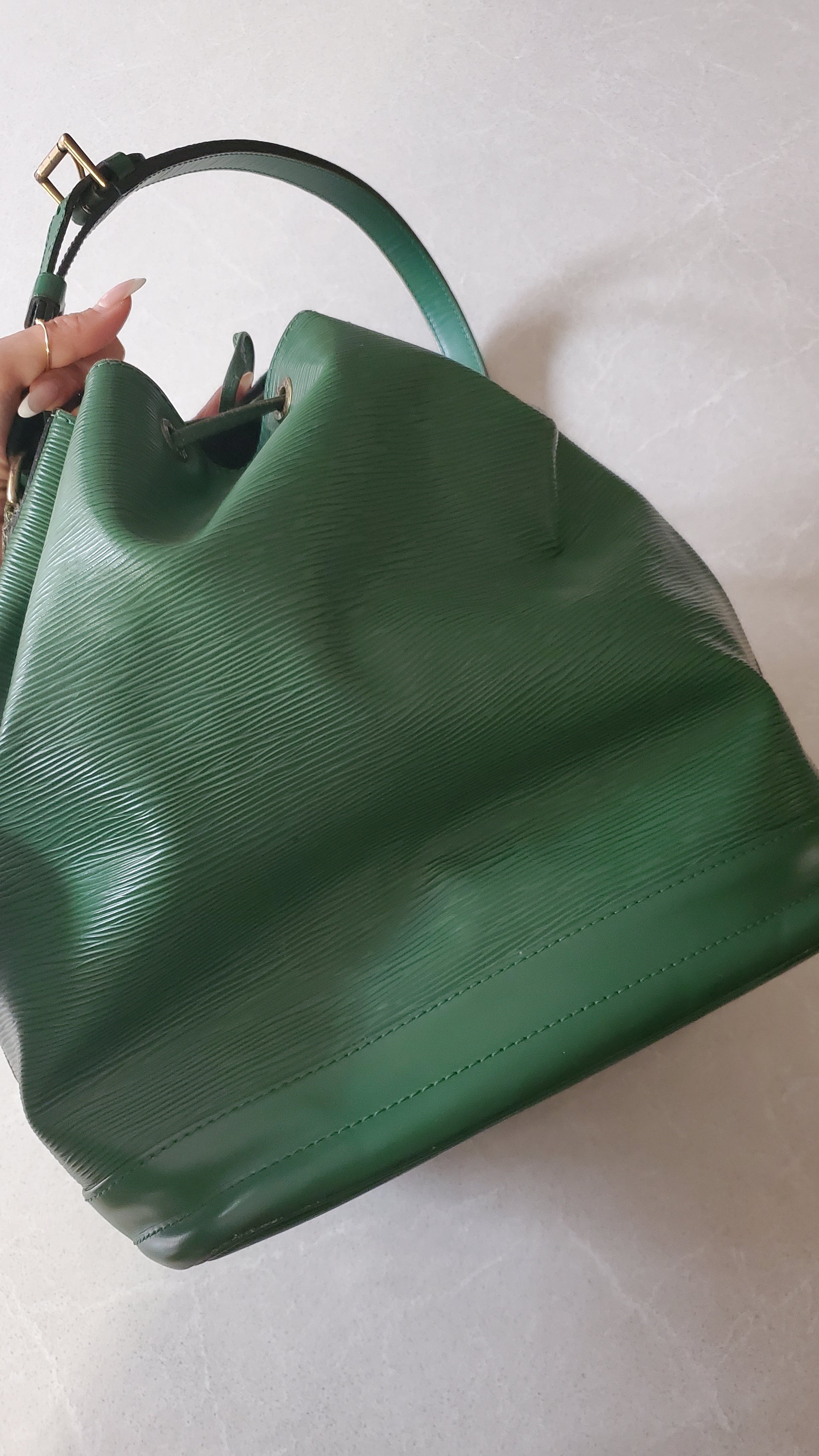 Authentic vintage Louis Vuitton green epi bag; in good vintage condition overall with normal wear/ scuffs on canvas, corners etc (inside is clean); strap is adjustable; can fit clothes, large wallet, agenda, phone, cosmetic pouch etc *see all photos for condition