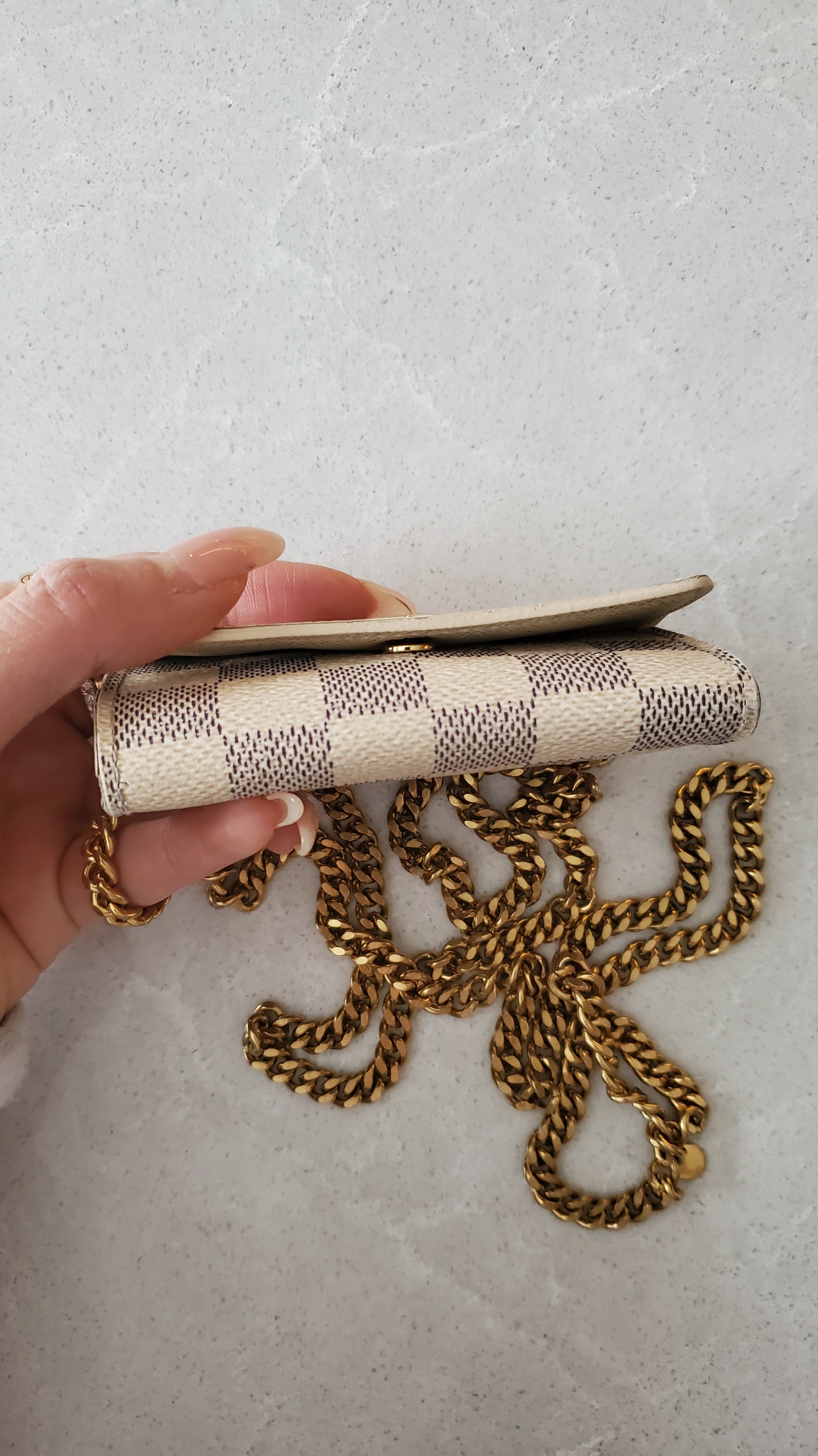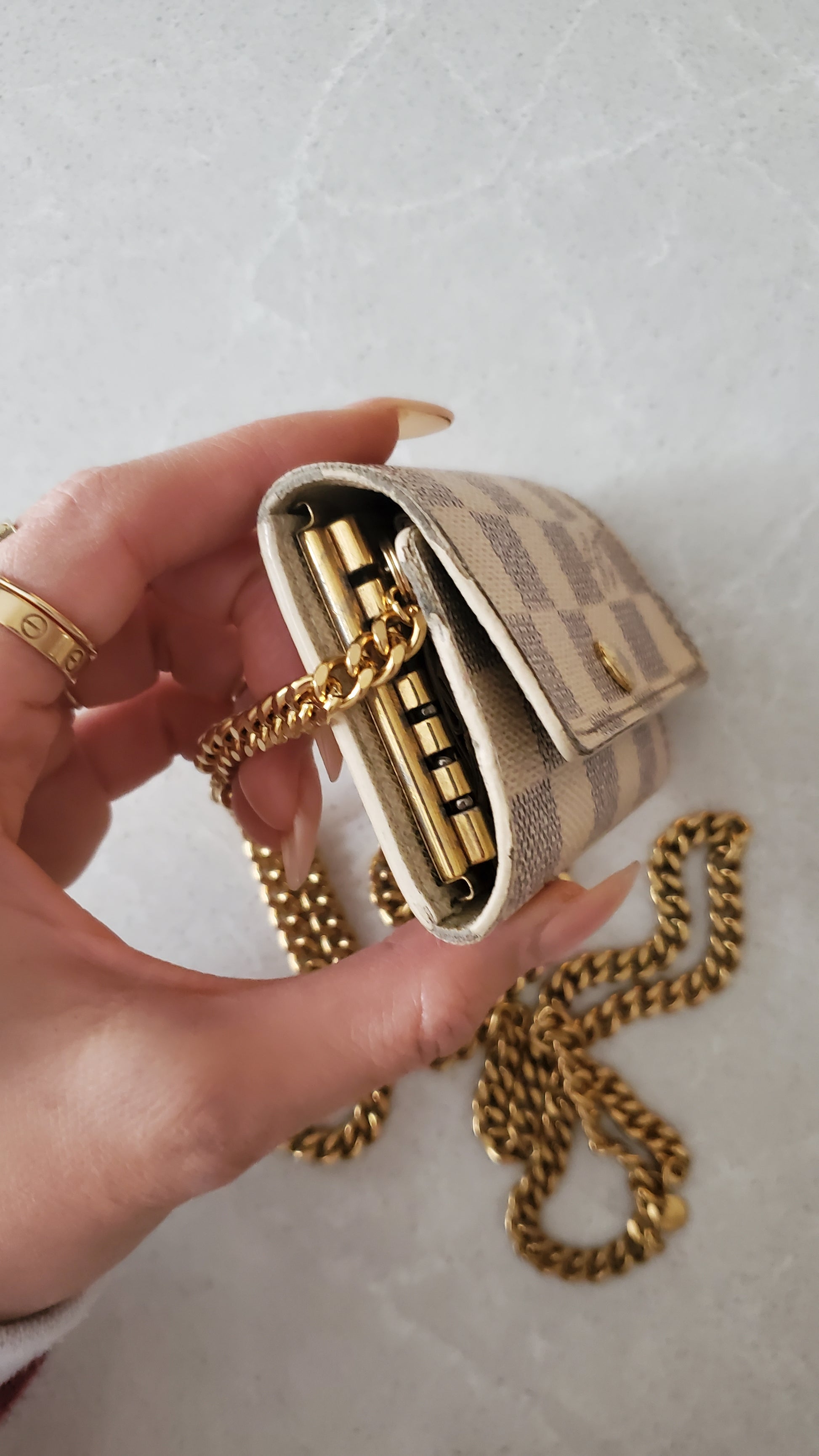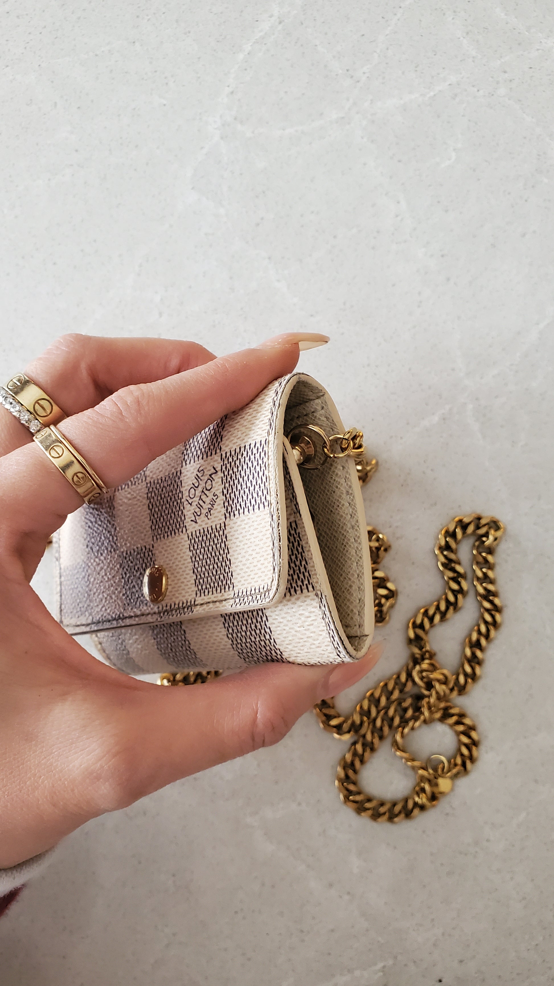 Authentic Louis Vuitton Damier keyholder converted with chain so that it can be worn crossbody, on the shoulder, or around the waist! See photos for styling ideas