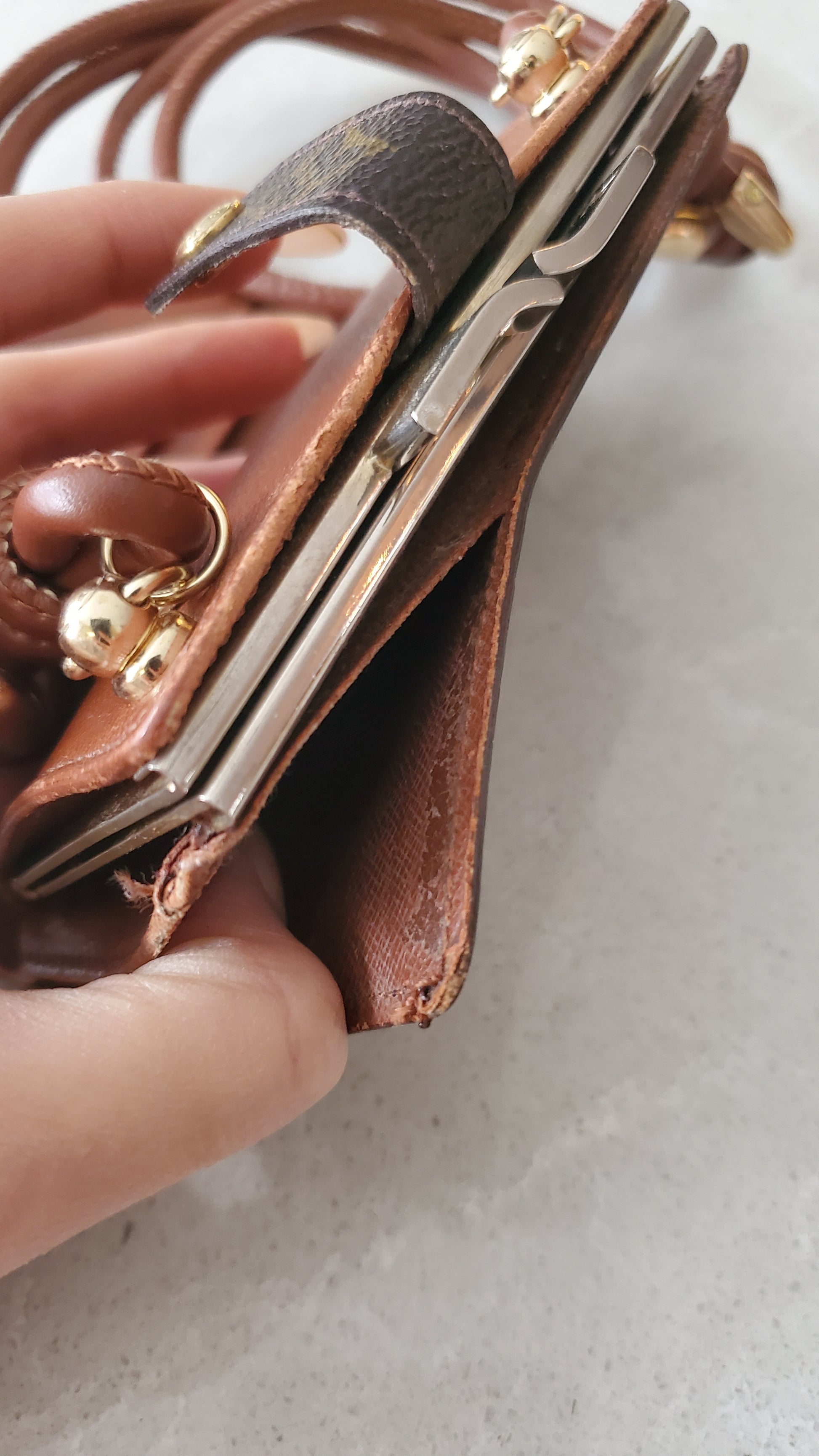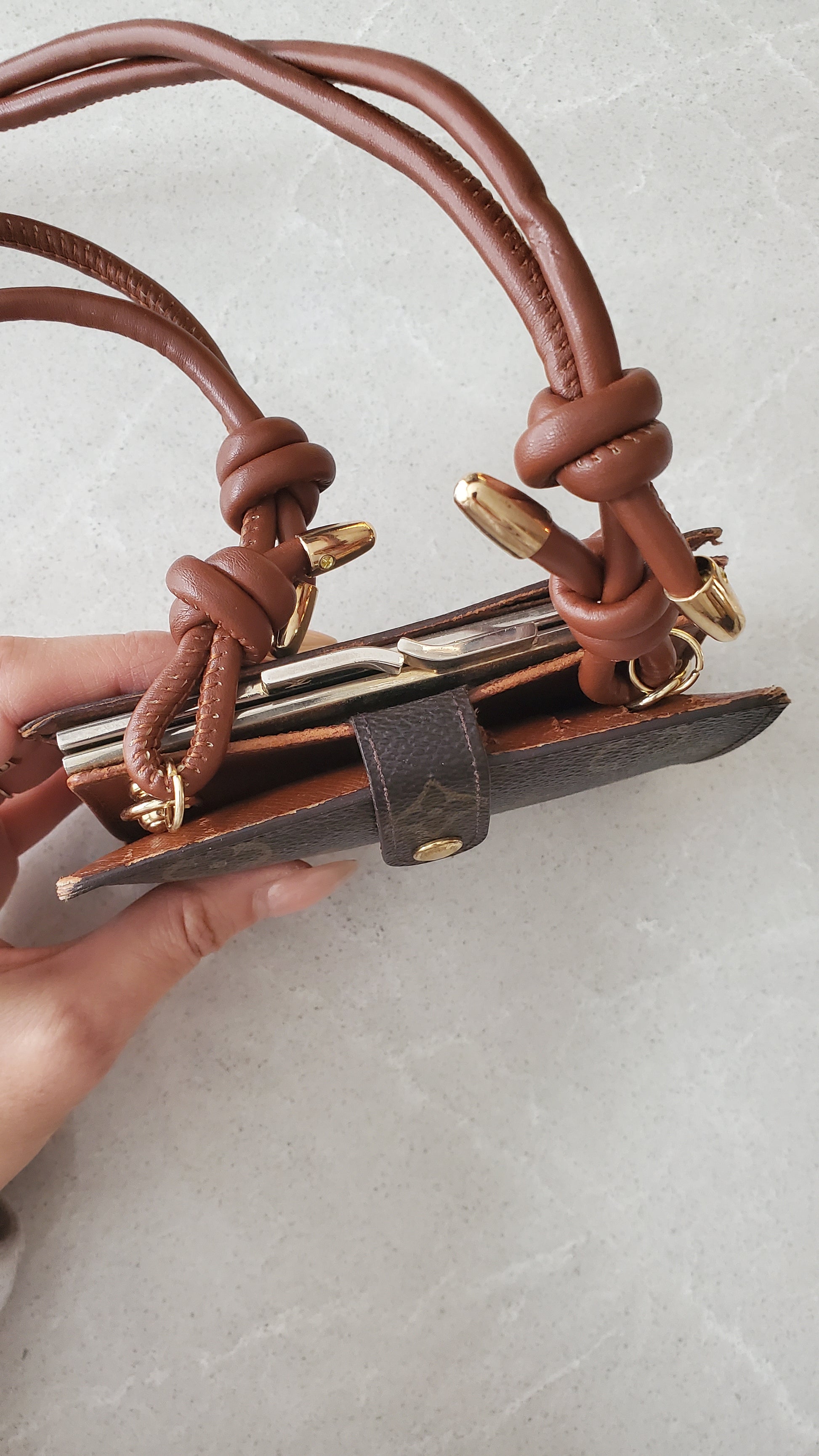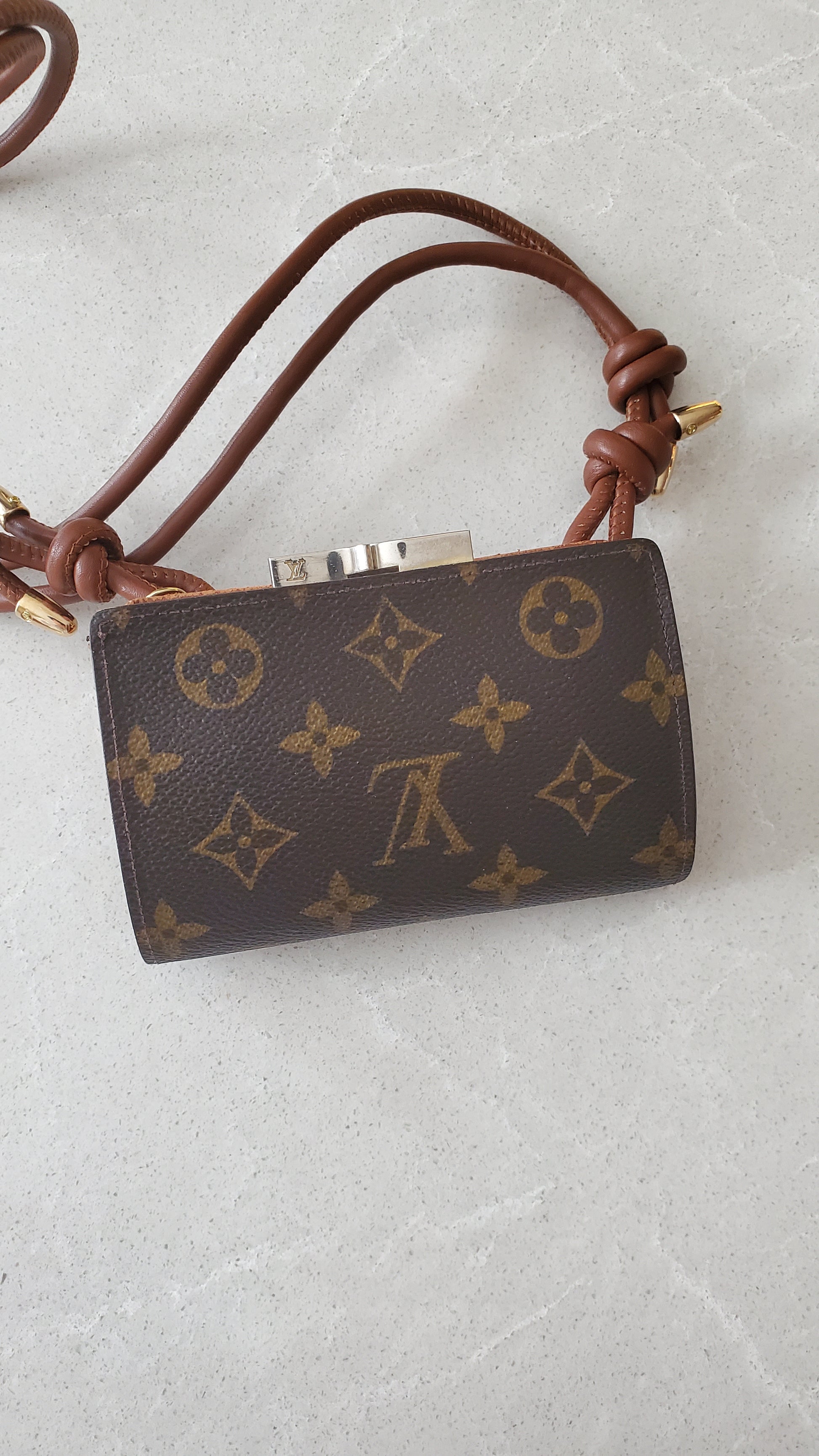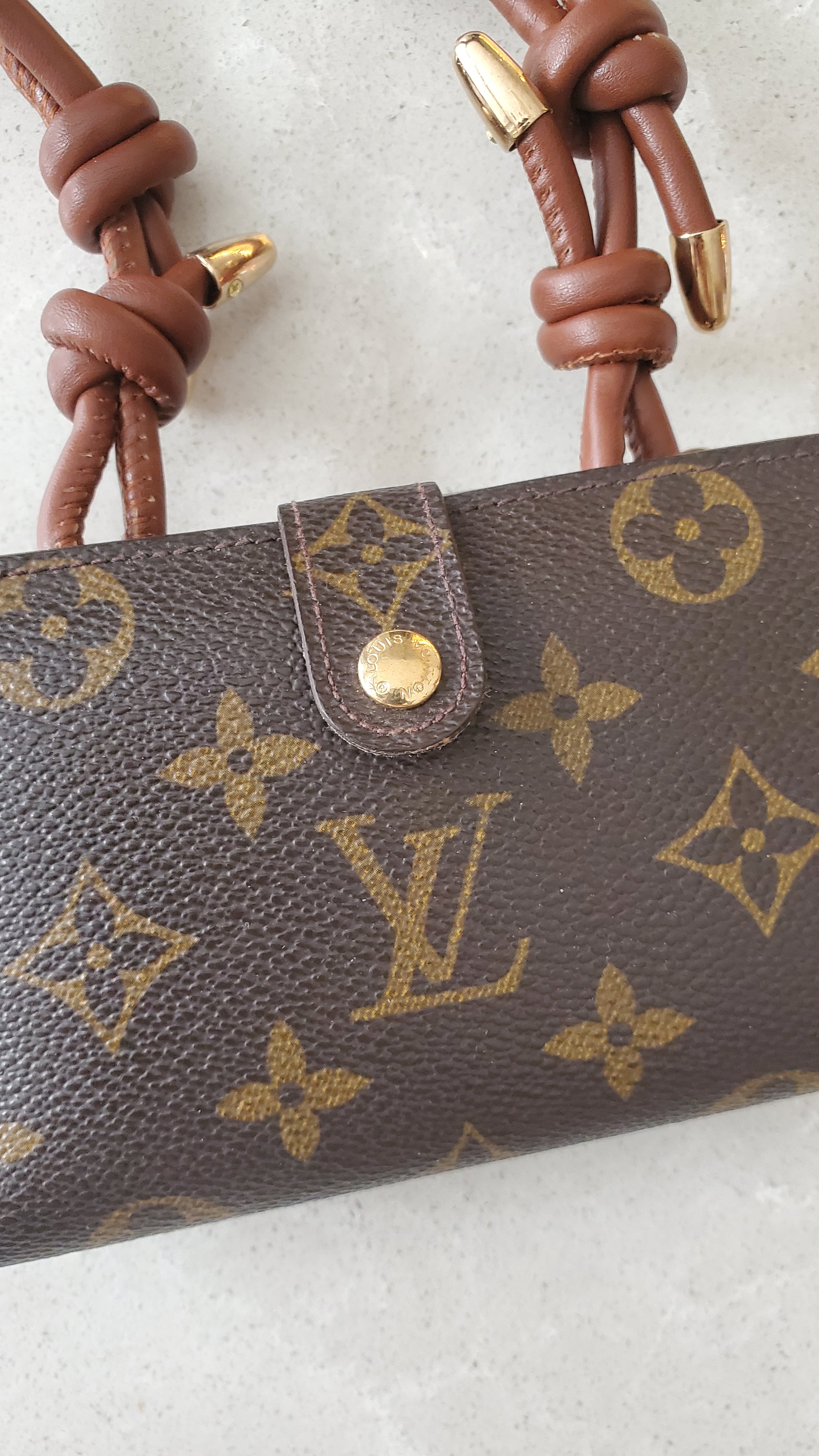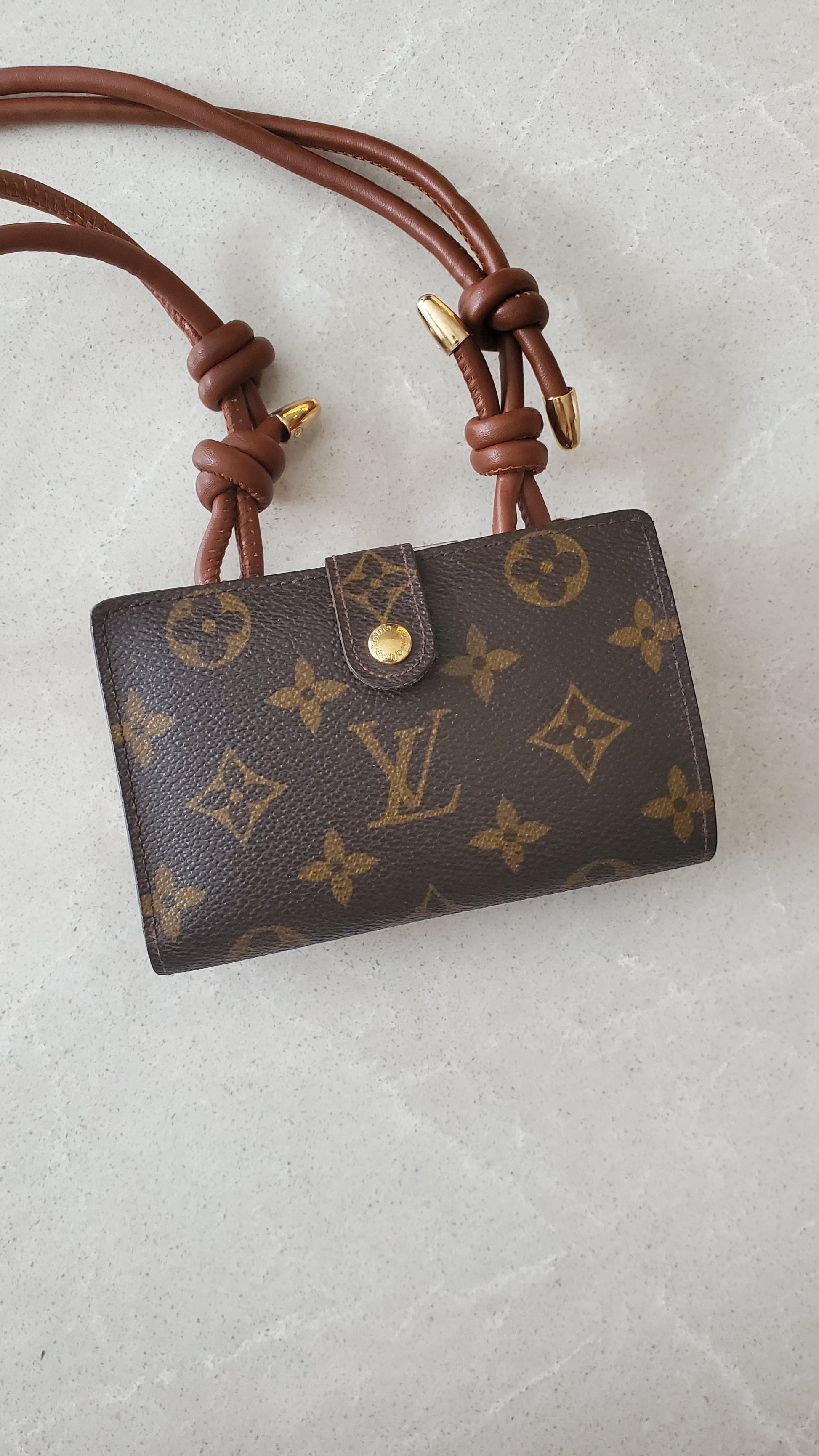 Authentic vintage Louis Vuitton small compact wallet reworked into a practical and versatile wallet on strap that can be worn crossbody, or on the shoulder! See photos for styling ideas