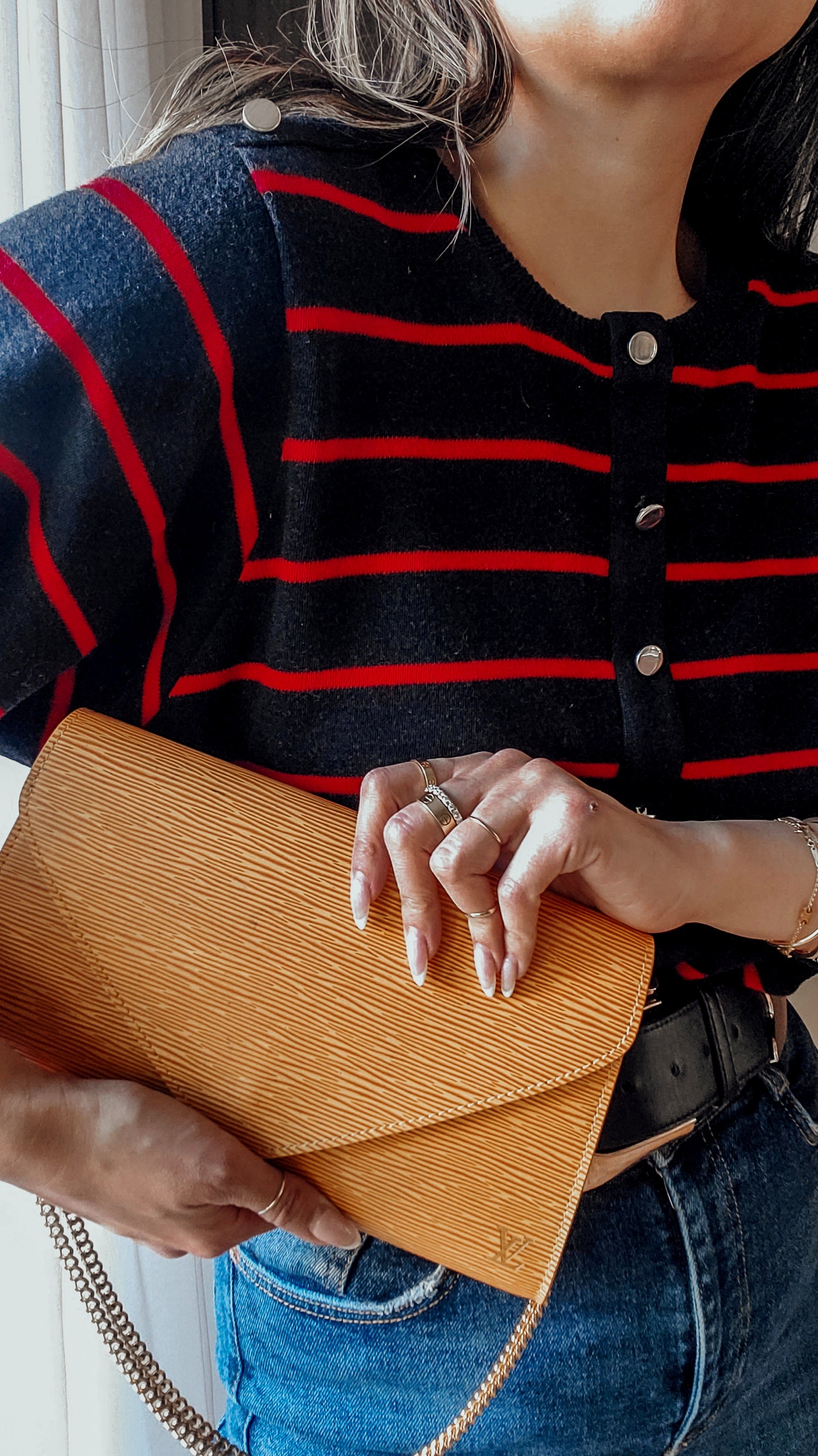 Authentic vintage Louis Vuitton yellow epi purse reworked into a practical and versatile purse on chain that can be worn crossbody, or on the shoulder! See photos for styling ideas