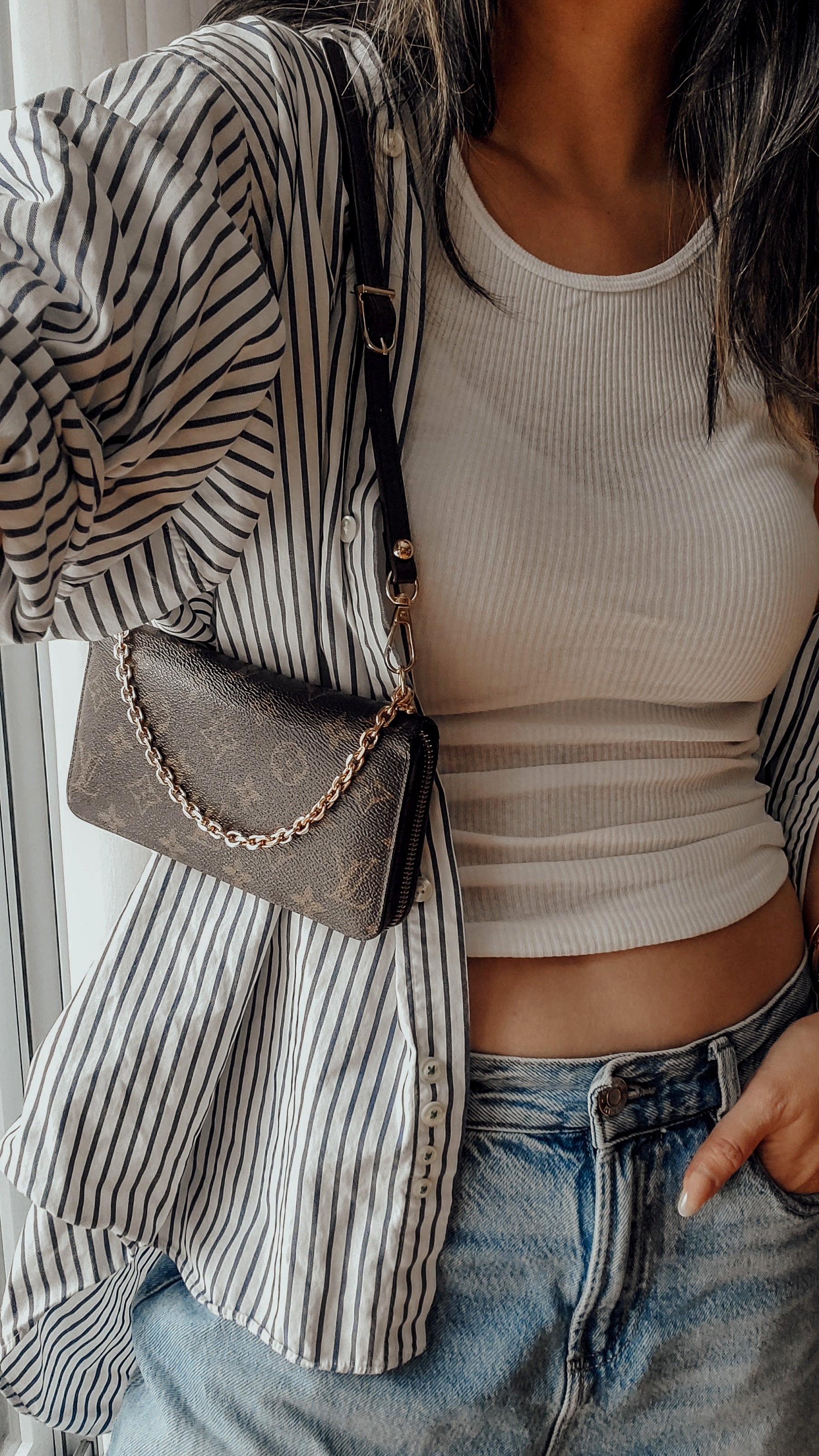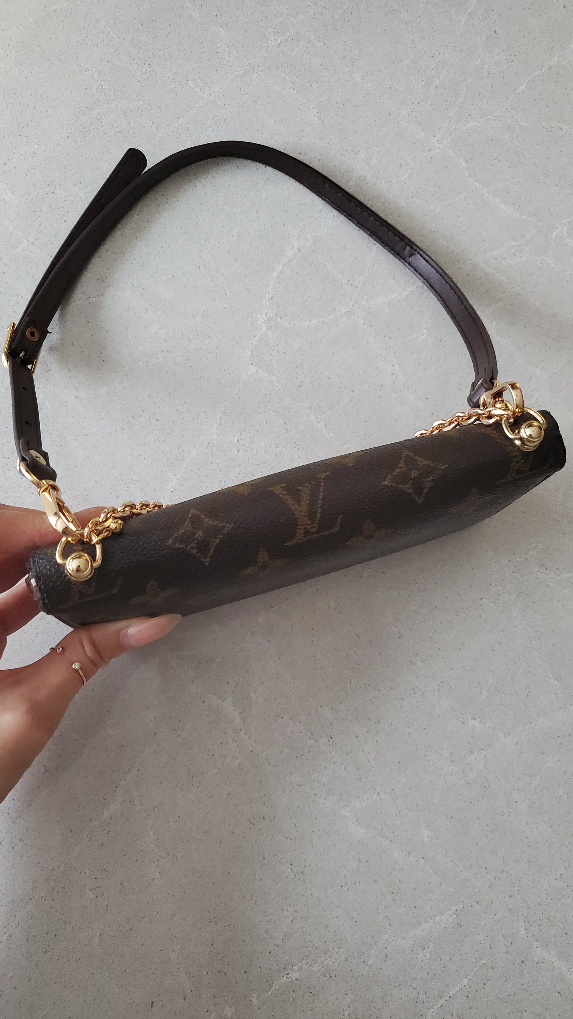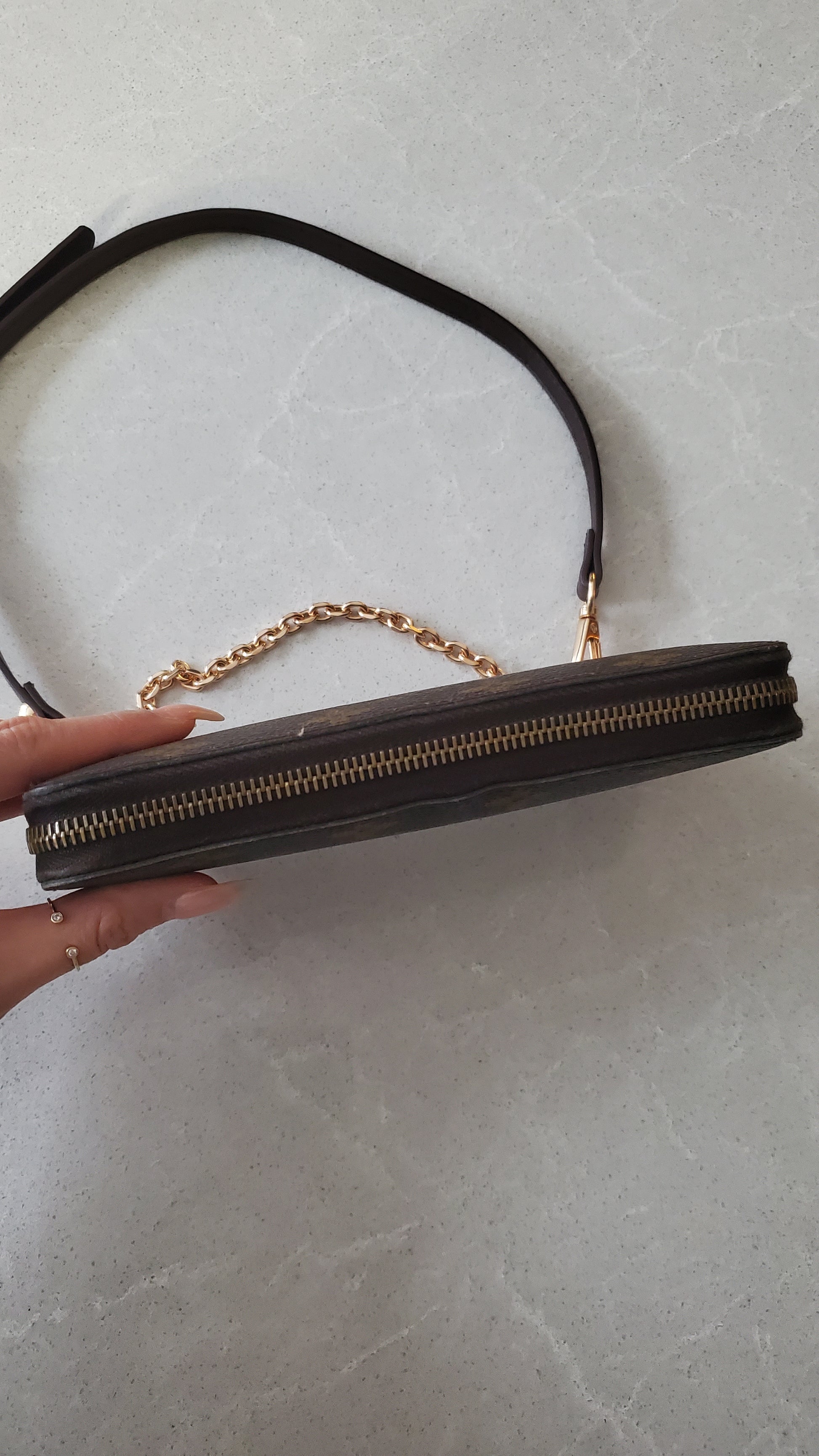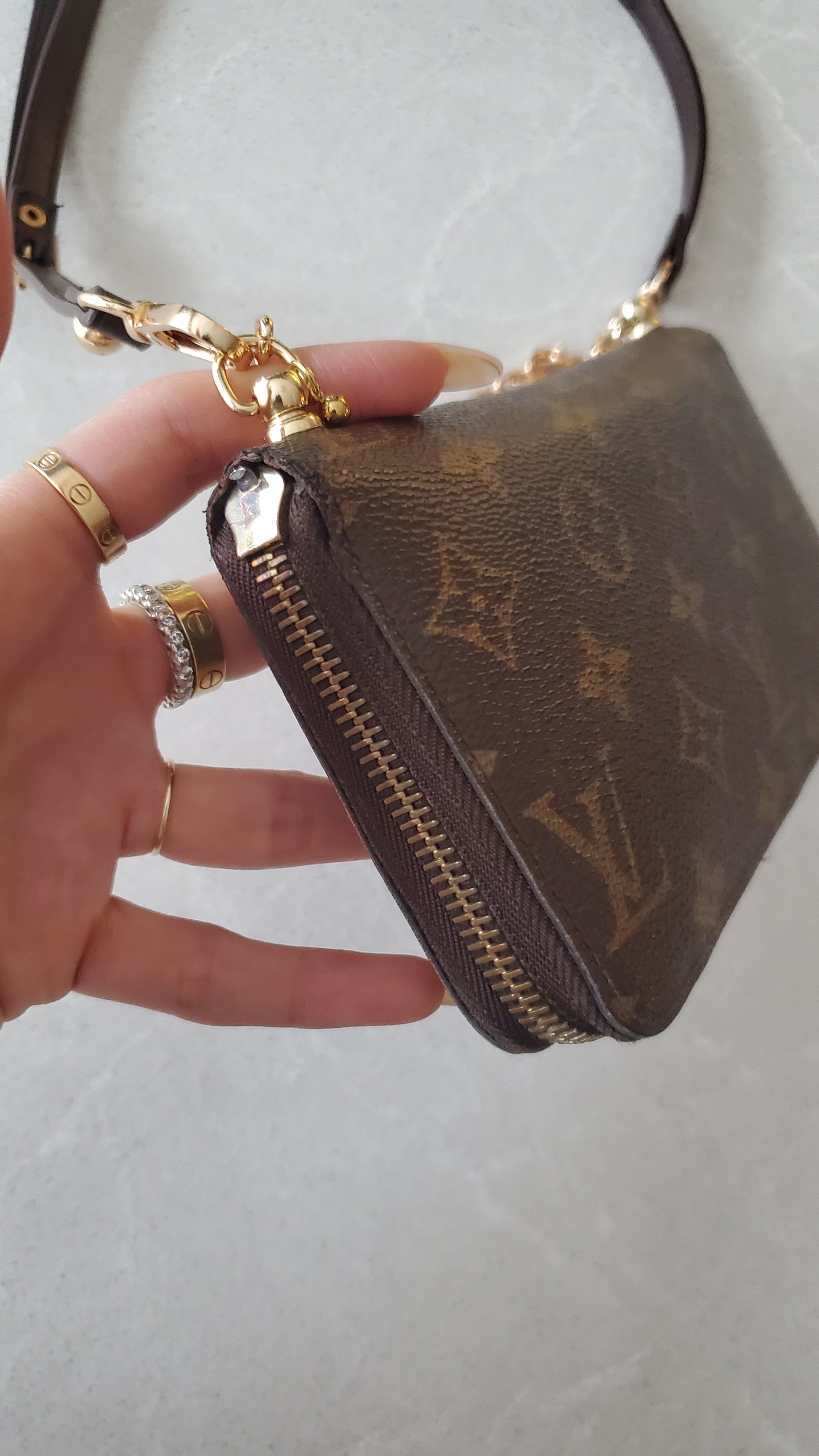 Authentic Louis Vuitton Upcycle Zip Up Wallet with Shoulder Strap and Chain