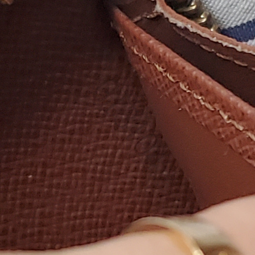 Wallet is is in good pre-owned condition overall: outer canvas is in good shape, inside is clean, wear/ scuffs on top corners, zipper works fine but zipper puller is missing! You can have the zipper replaced by your local shoe repair professional if this bothers you *see all photos for condition*