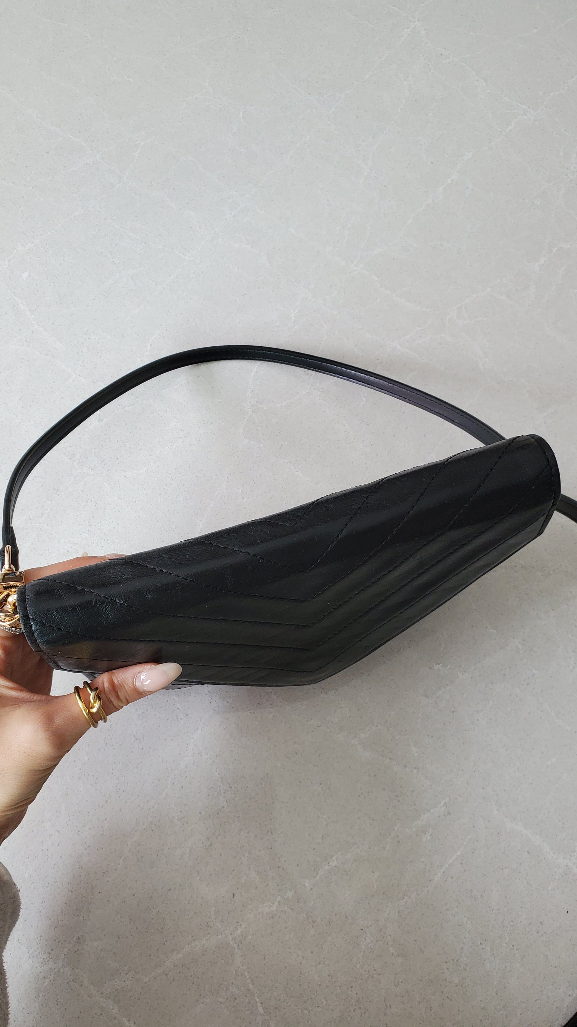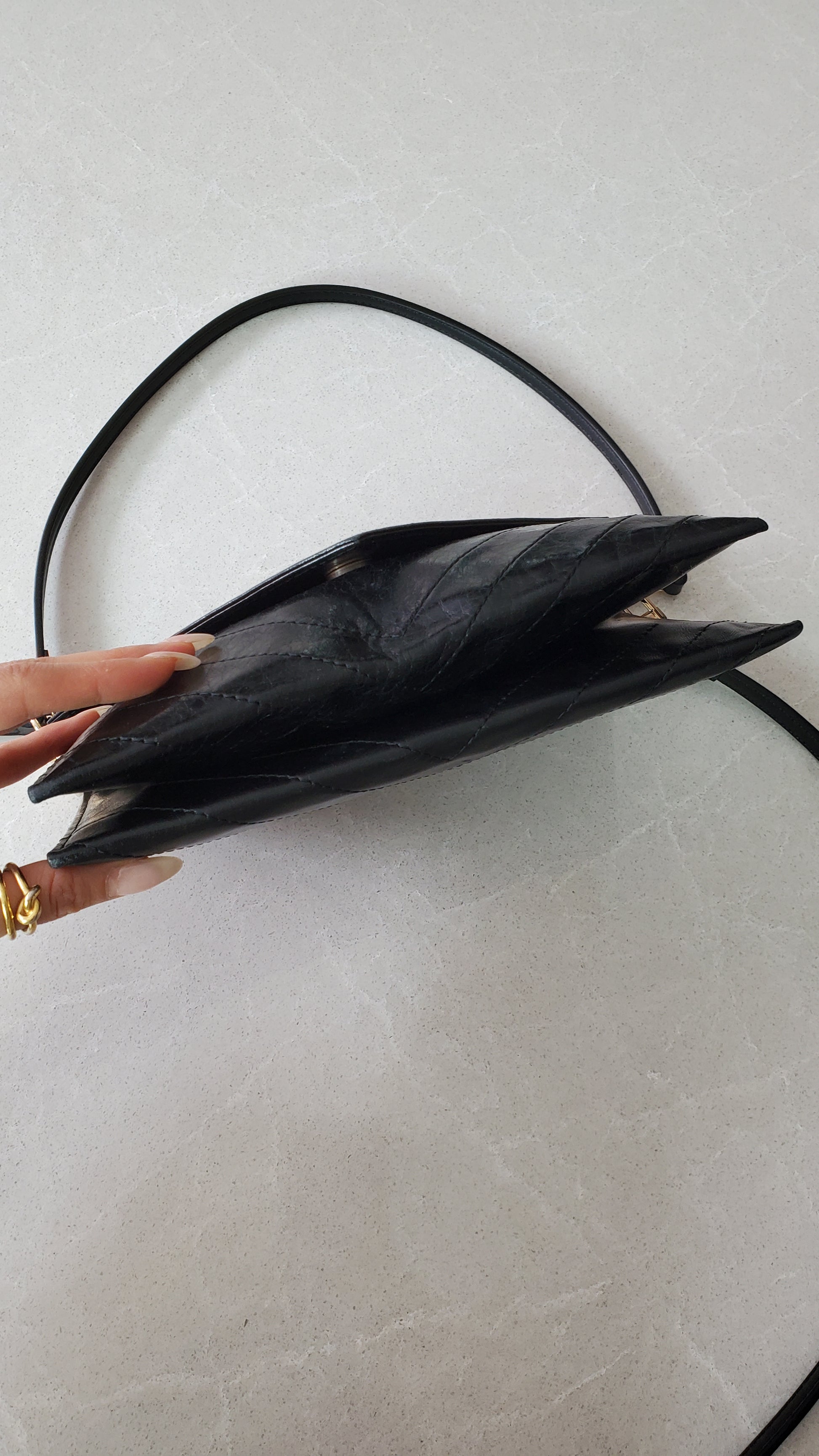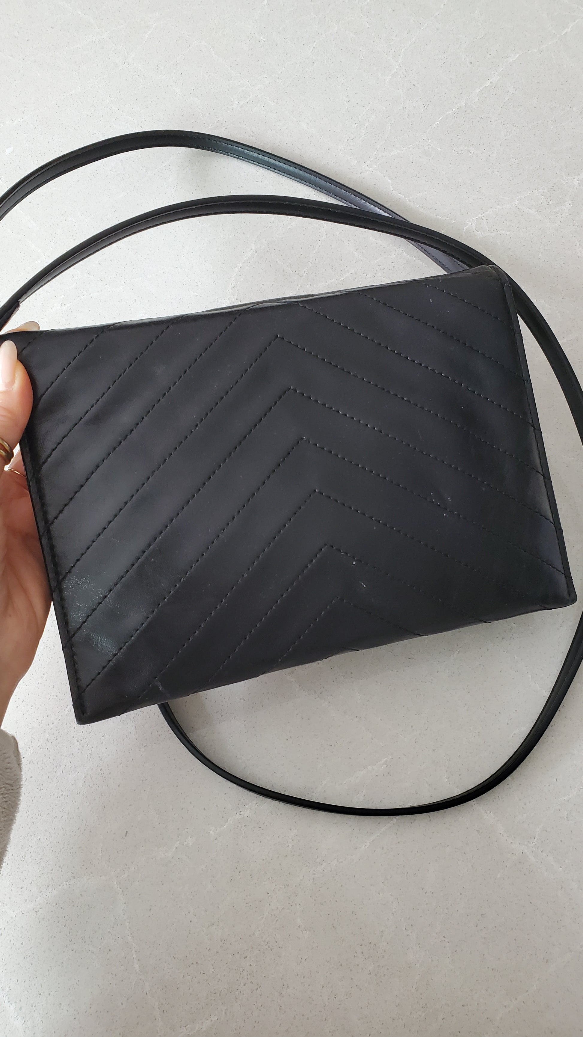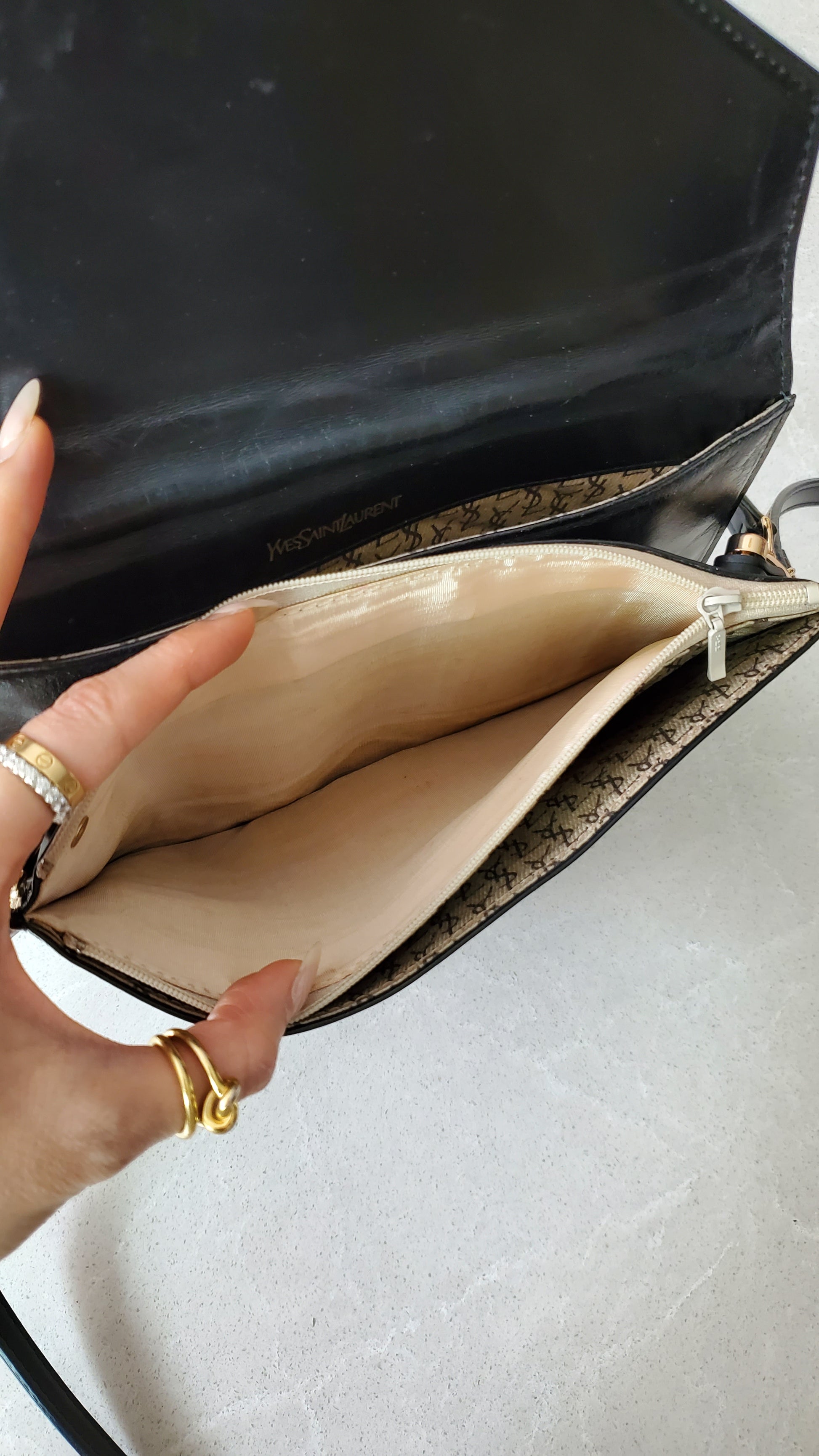 Authentic vintage YSL black leather multi compartments purse reworked with brand new handmade straps, so it can be worn crossbody, on the shoulder, or handle! See photos for styling ideas