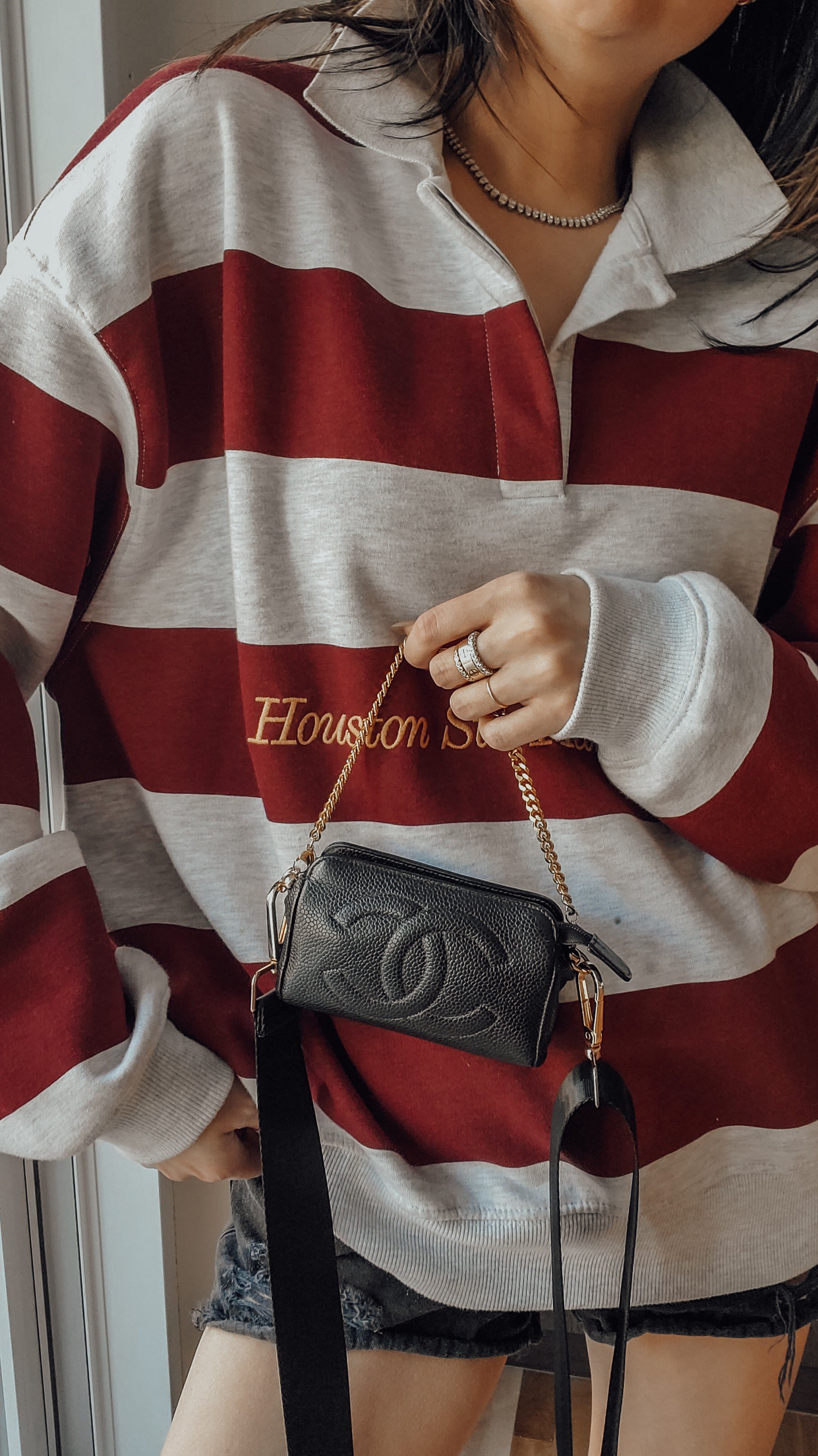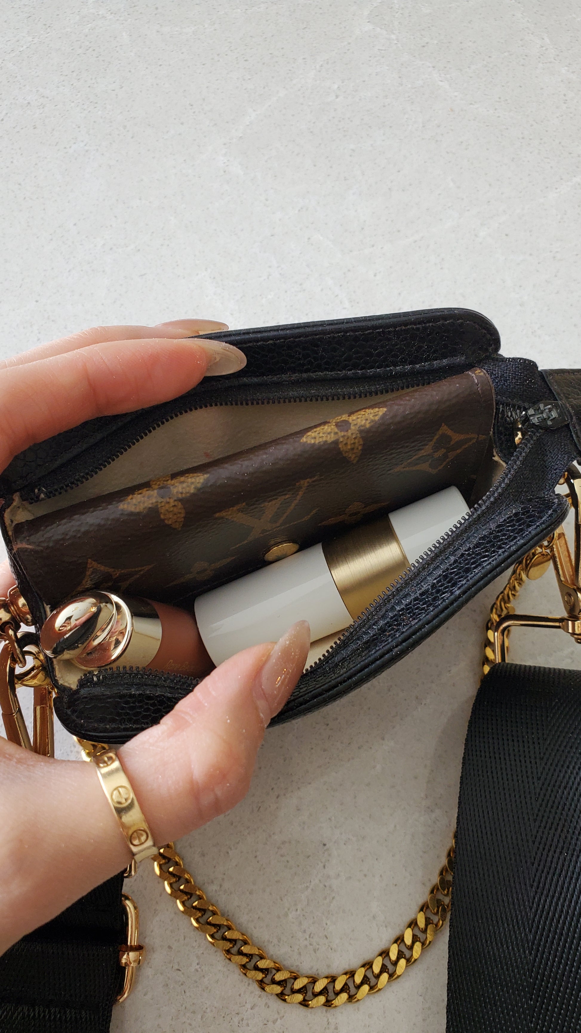 Authentic Chanel black caviar small pouch reworked into a modern and versatile piece on chain and strap that can be worn crossbody, on the shoulder, or handle! See photos for styling ideas
