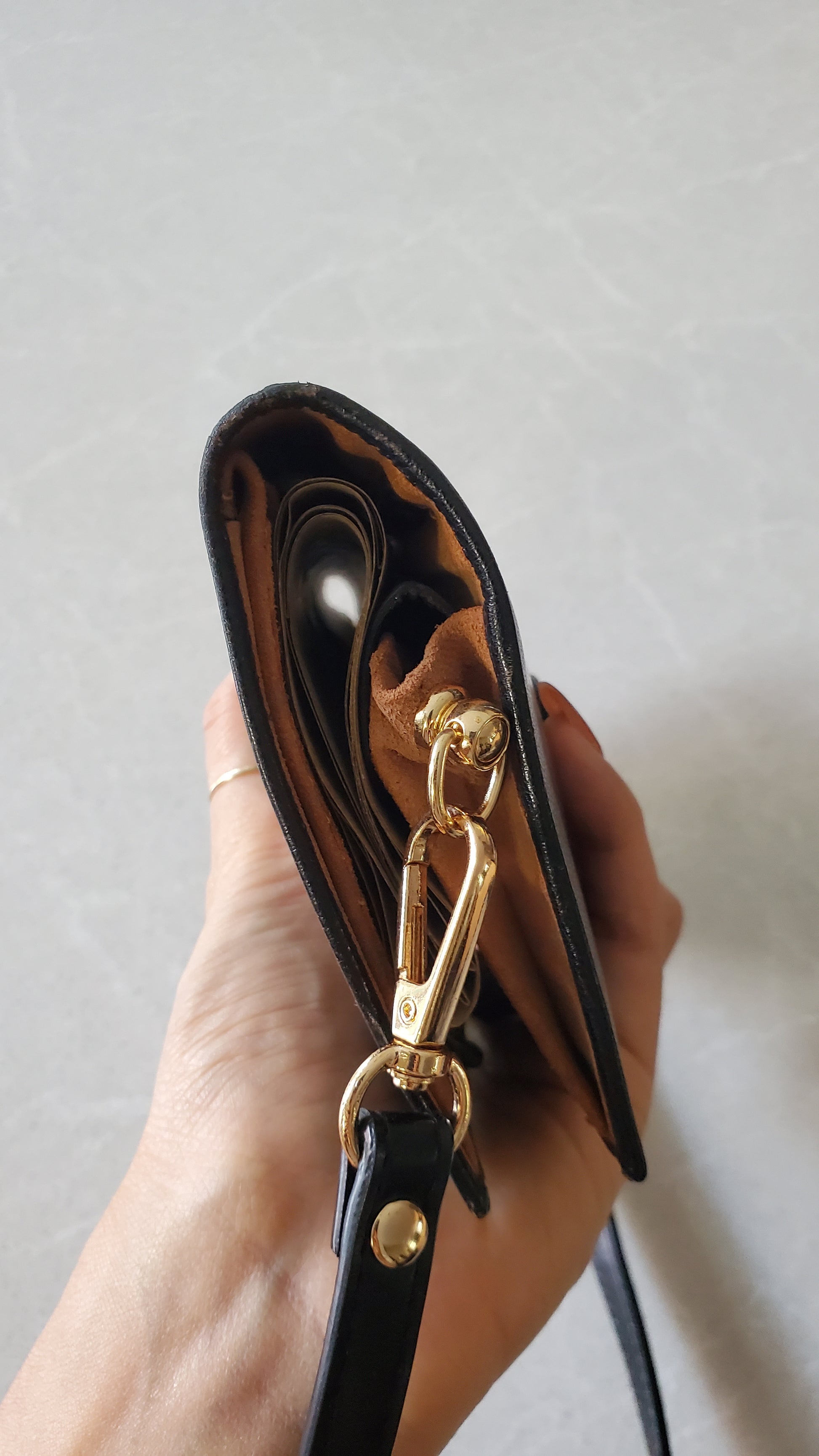 Authentic vintage Céline long black wallet reworked into a modern and versatile wallet on strap that can be worn crossbody, or on the shoulder! See photos for styling ideas