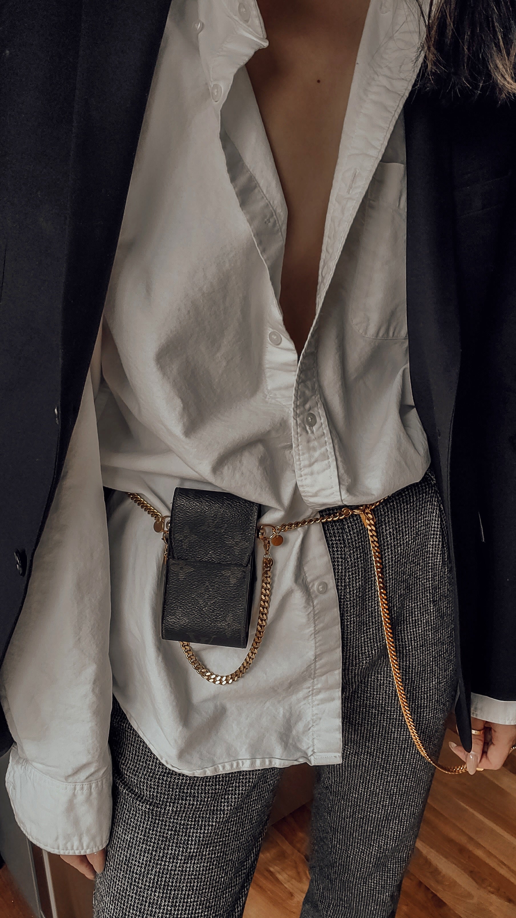 Authentic vintage Louis Vuitton mini pouch converted into a practical and versatile pouch on chain that can be worn crossbody, on the shoulder, or around the waist! See photos for styling ideas