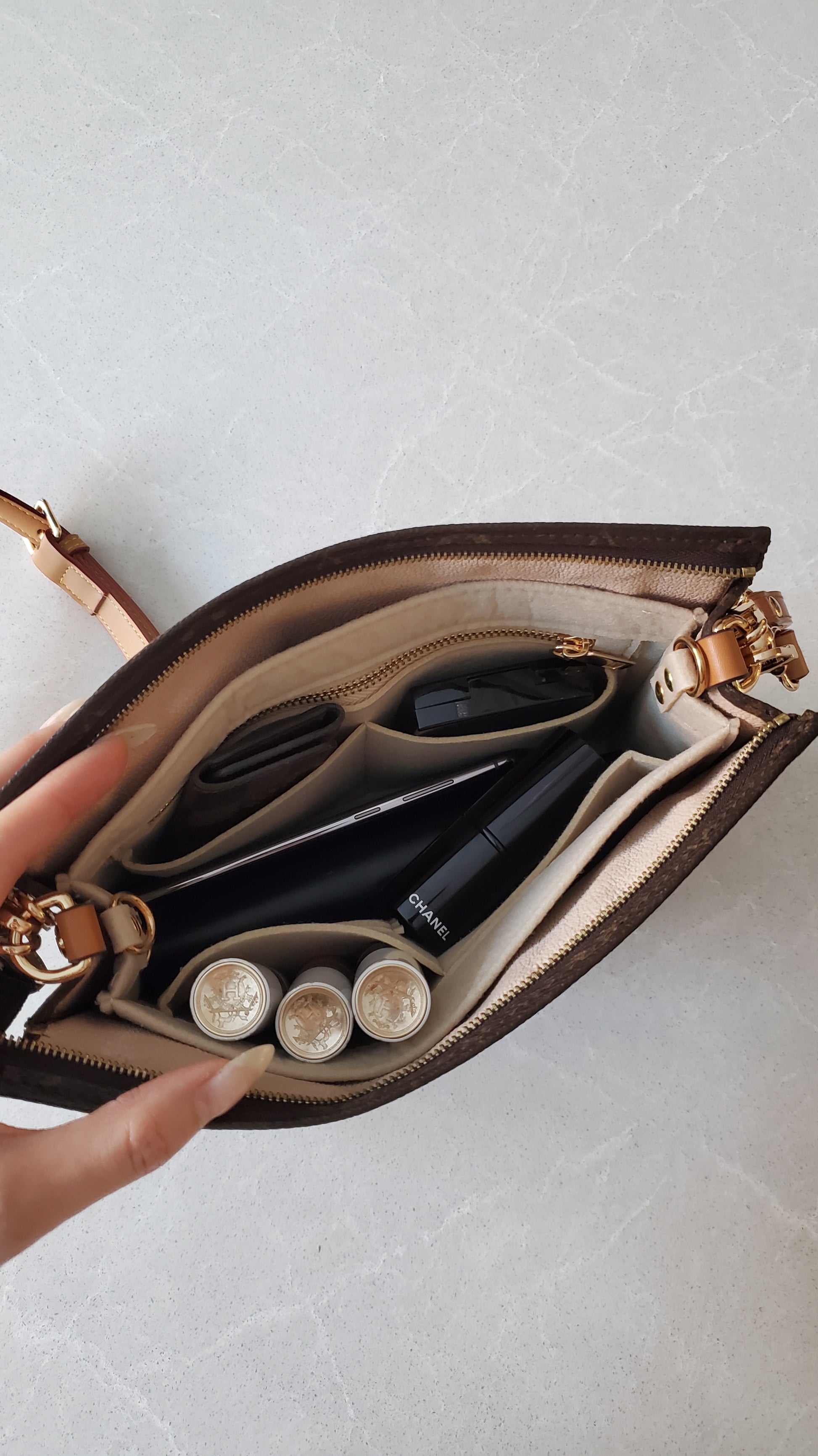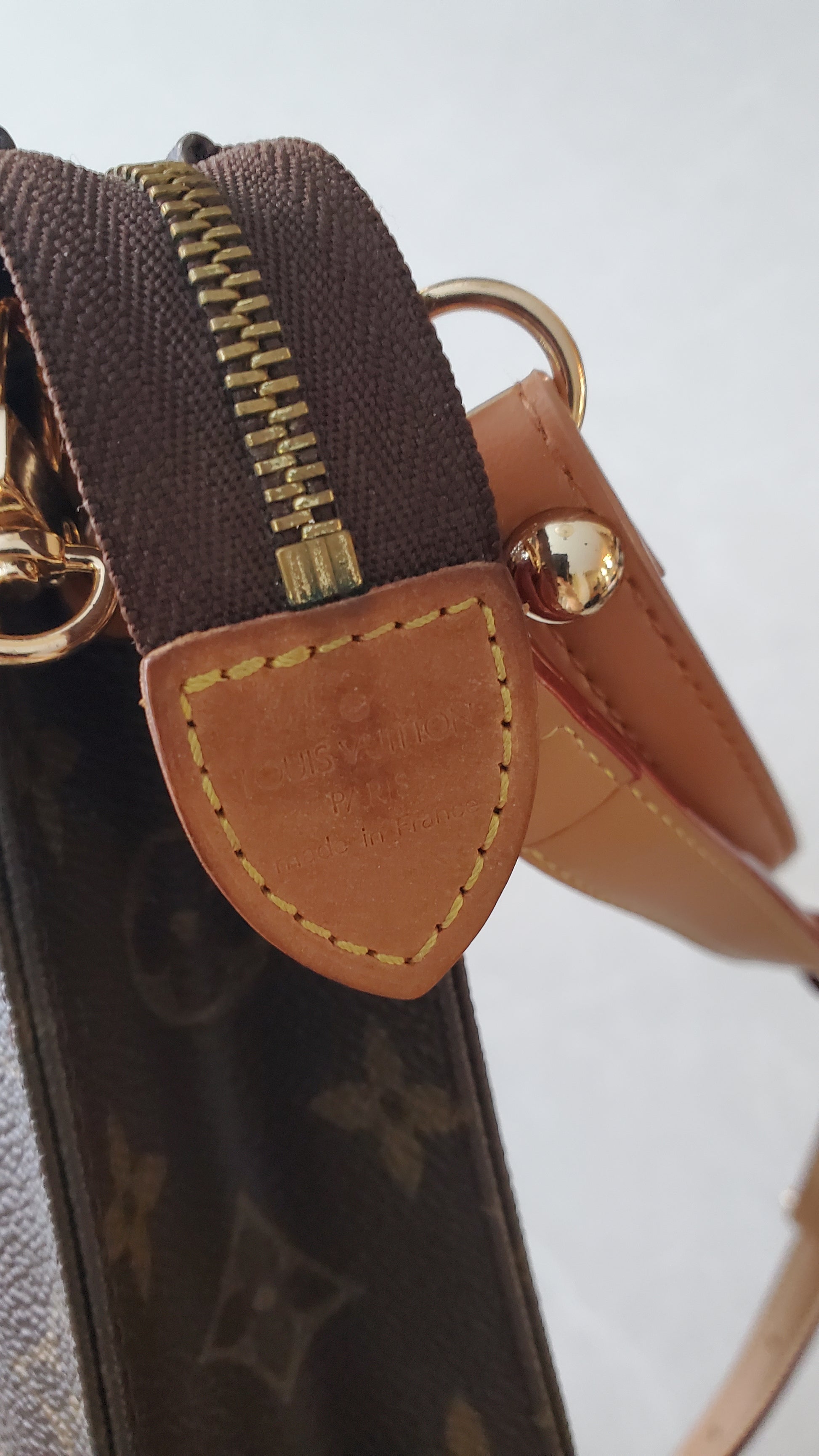 Authentic vintage Louis Vuitton pouch reworked into a practical and versatile pouch with chain and straps that can be worn crossbody, shoulder, or handle! See photos for styling ideas