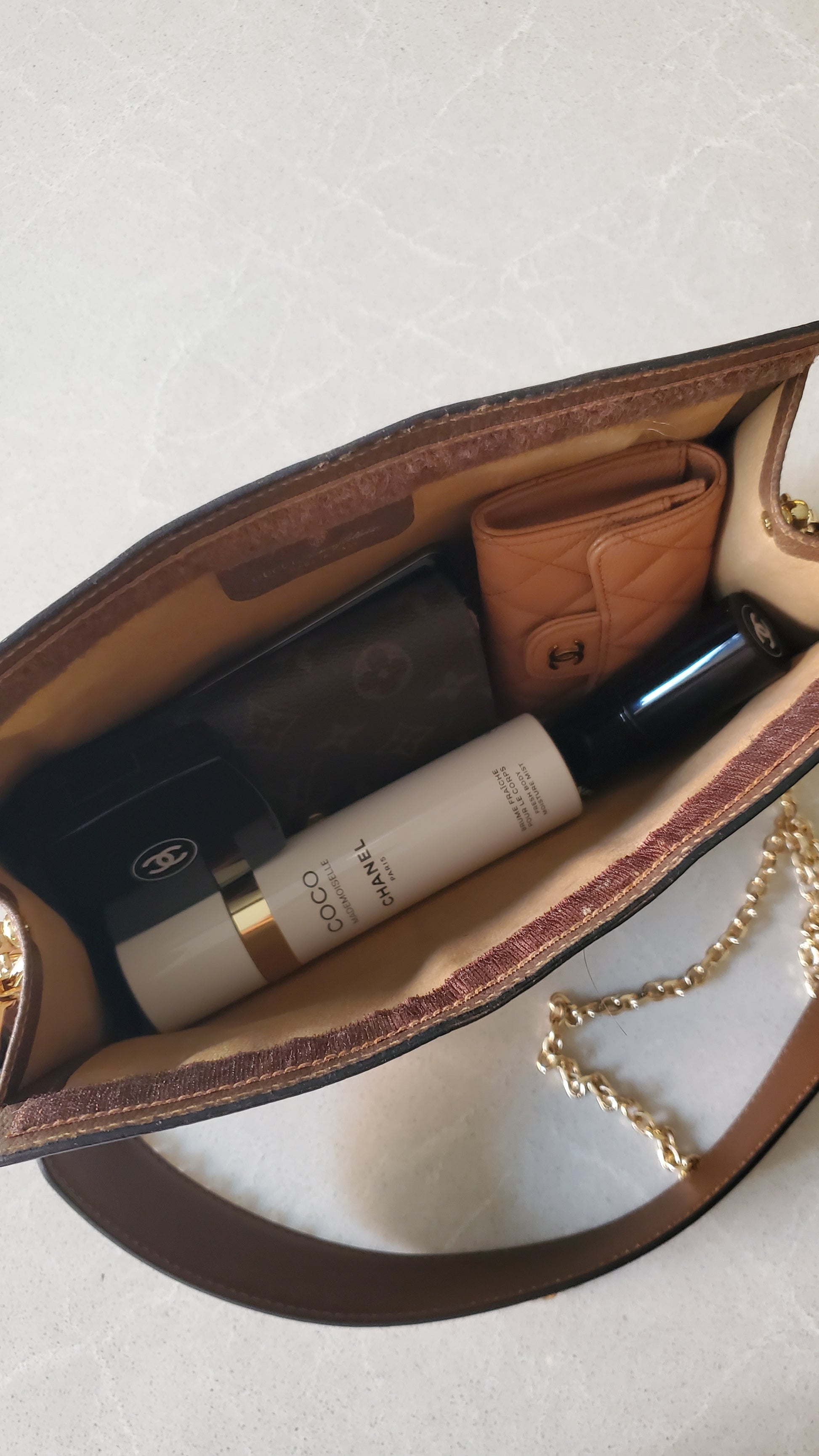 Authentic vintage Gucci bag (with velcro closing) upcycled with a brand new chain and strap, so it can be worn crossbody, on the shoulder, or handle. See all photos for styling ideas