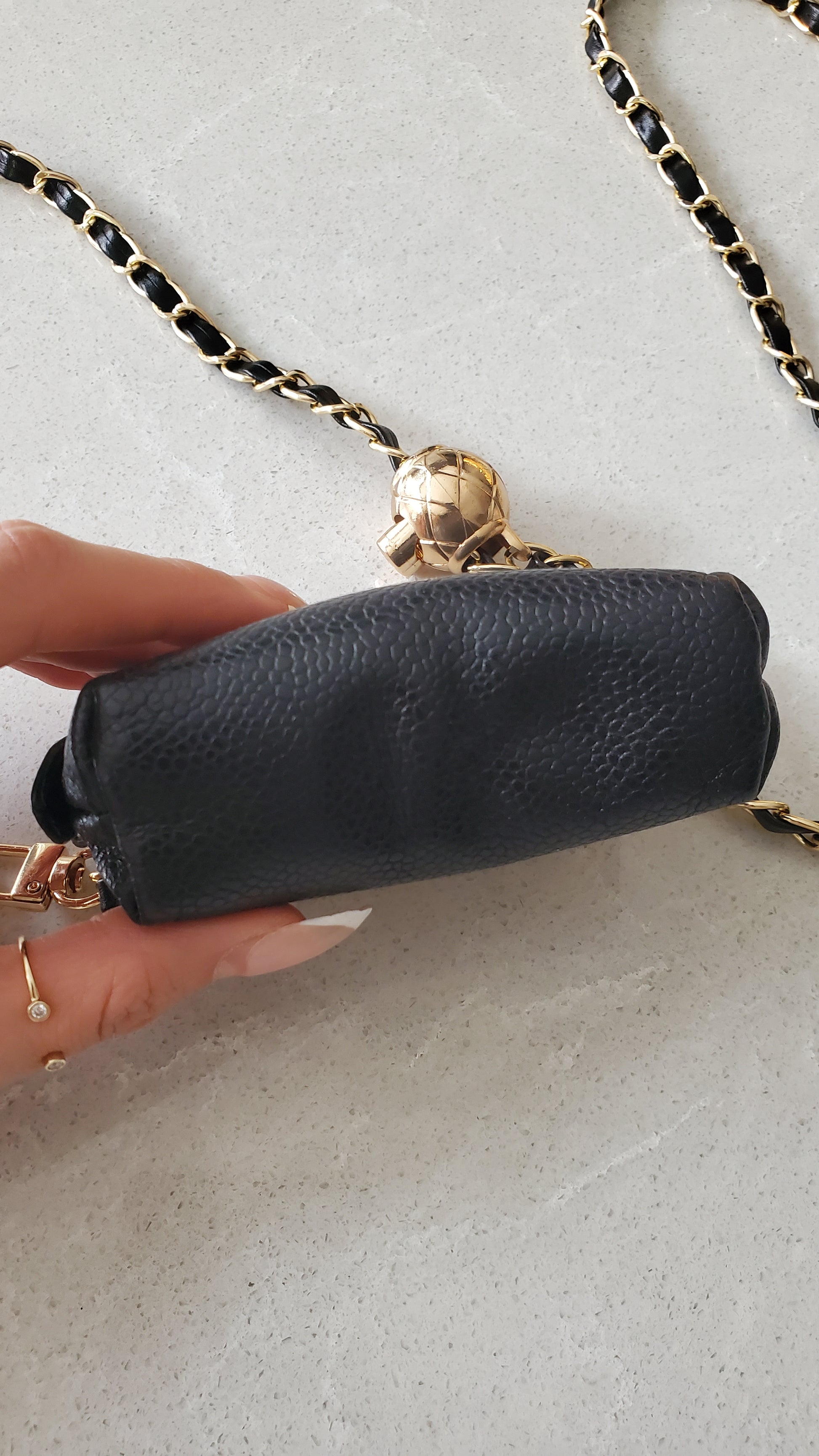 Authentic Vintage Chanel Upcycle Versatile Black Caviar Mini Pouch on Chain